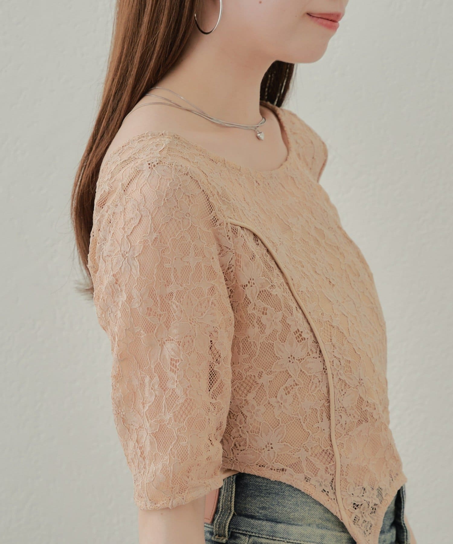 TOP > OUTLET > レディース > トップス > Tシャツ/カットソー > 【Chico】レースガーターT