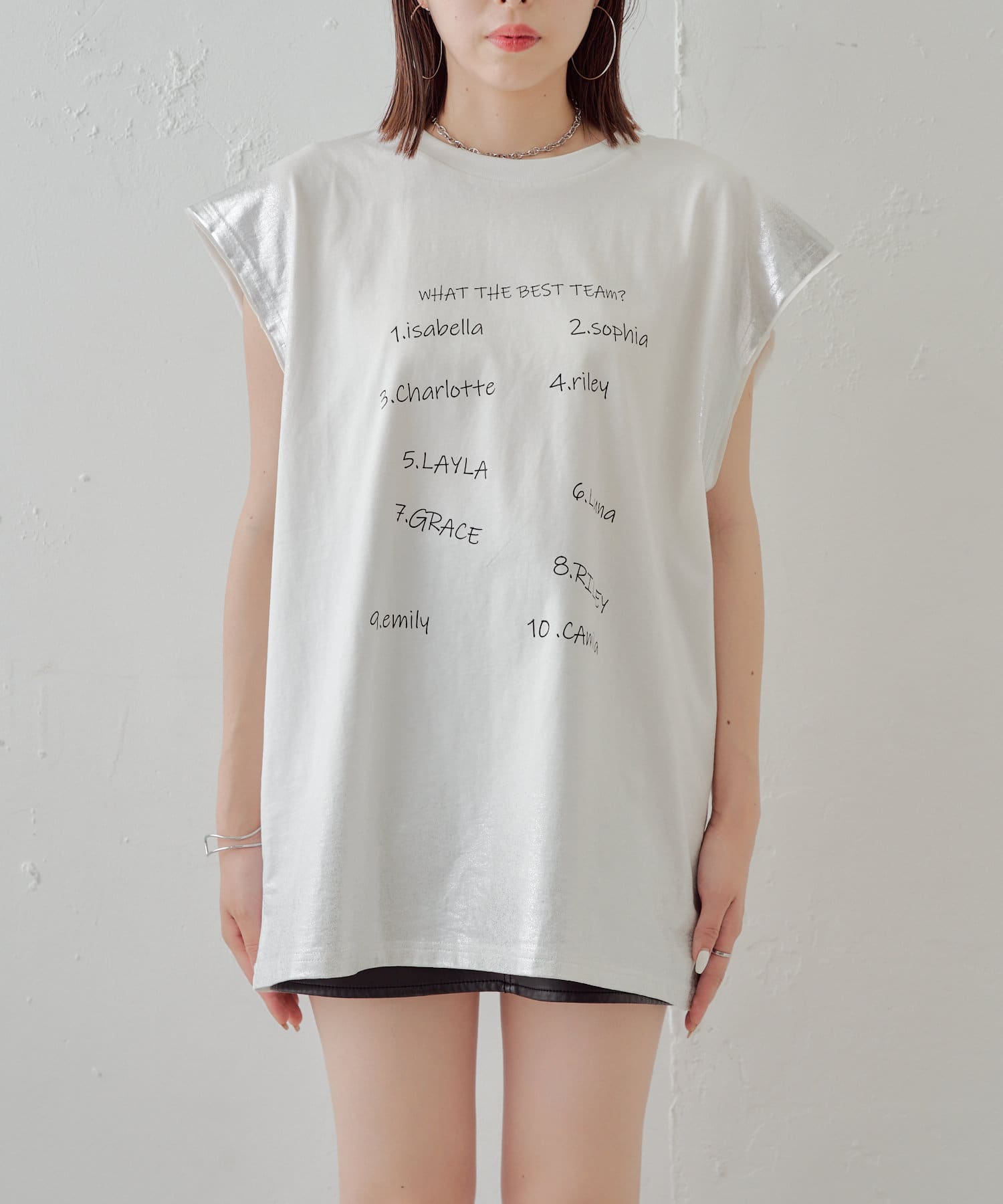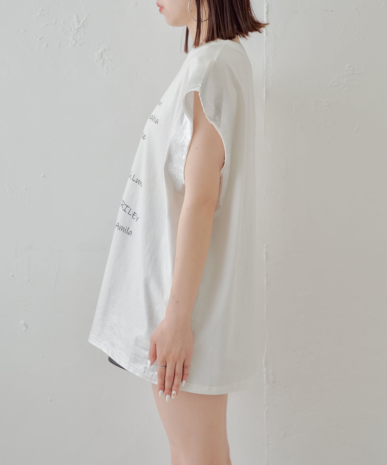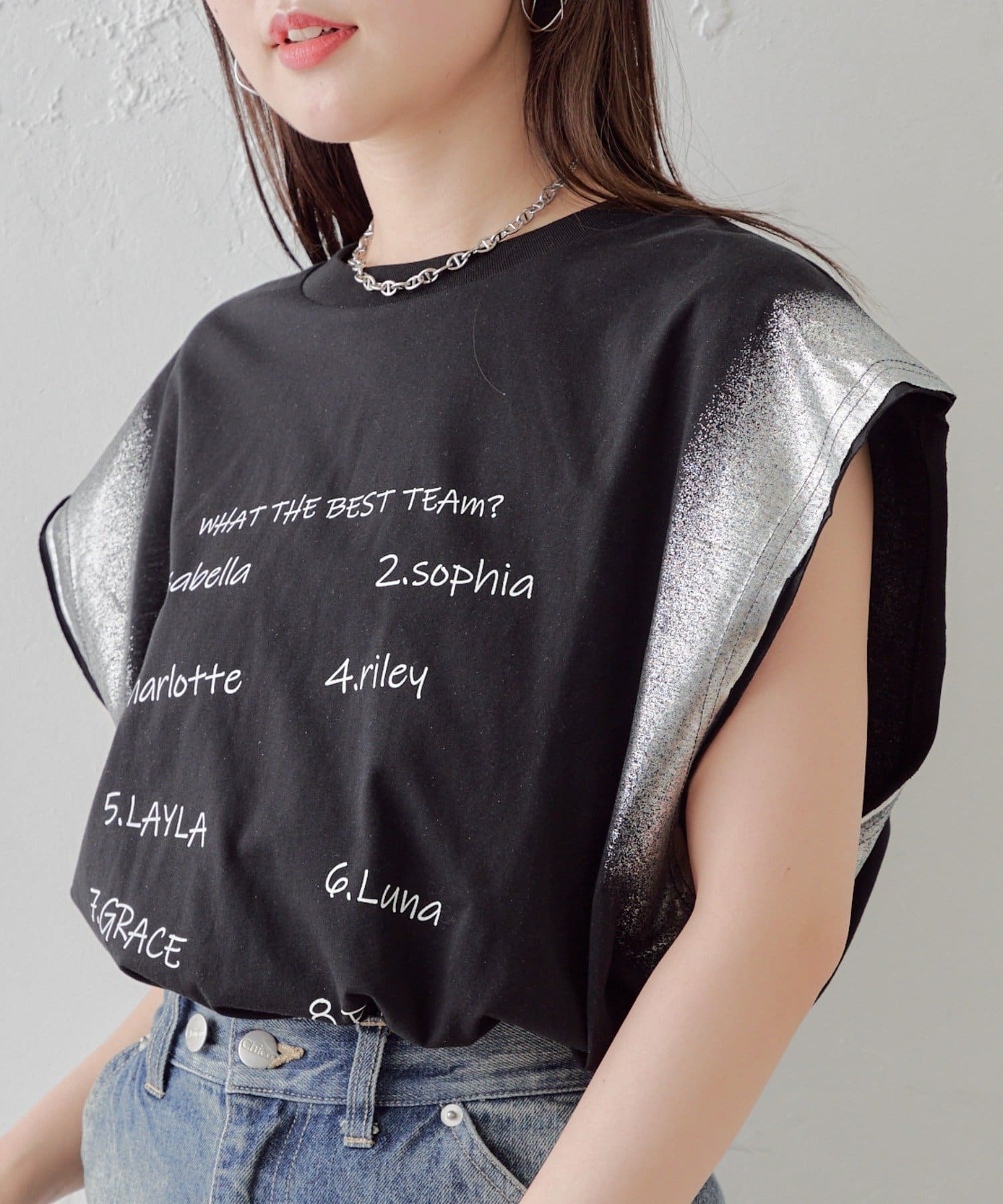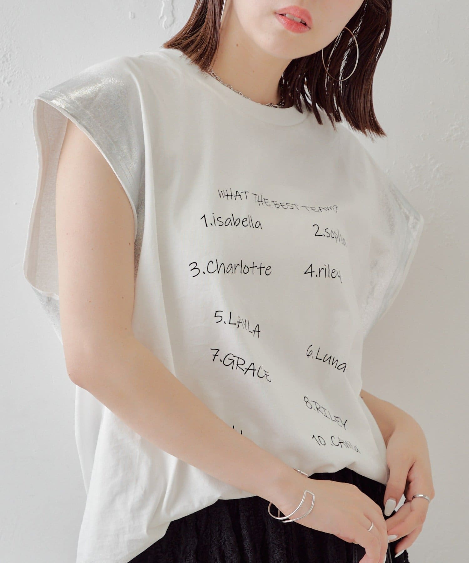 ・袖の箔プリントがトレンド感のあるTシャツ。