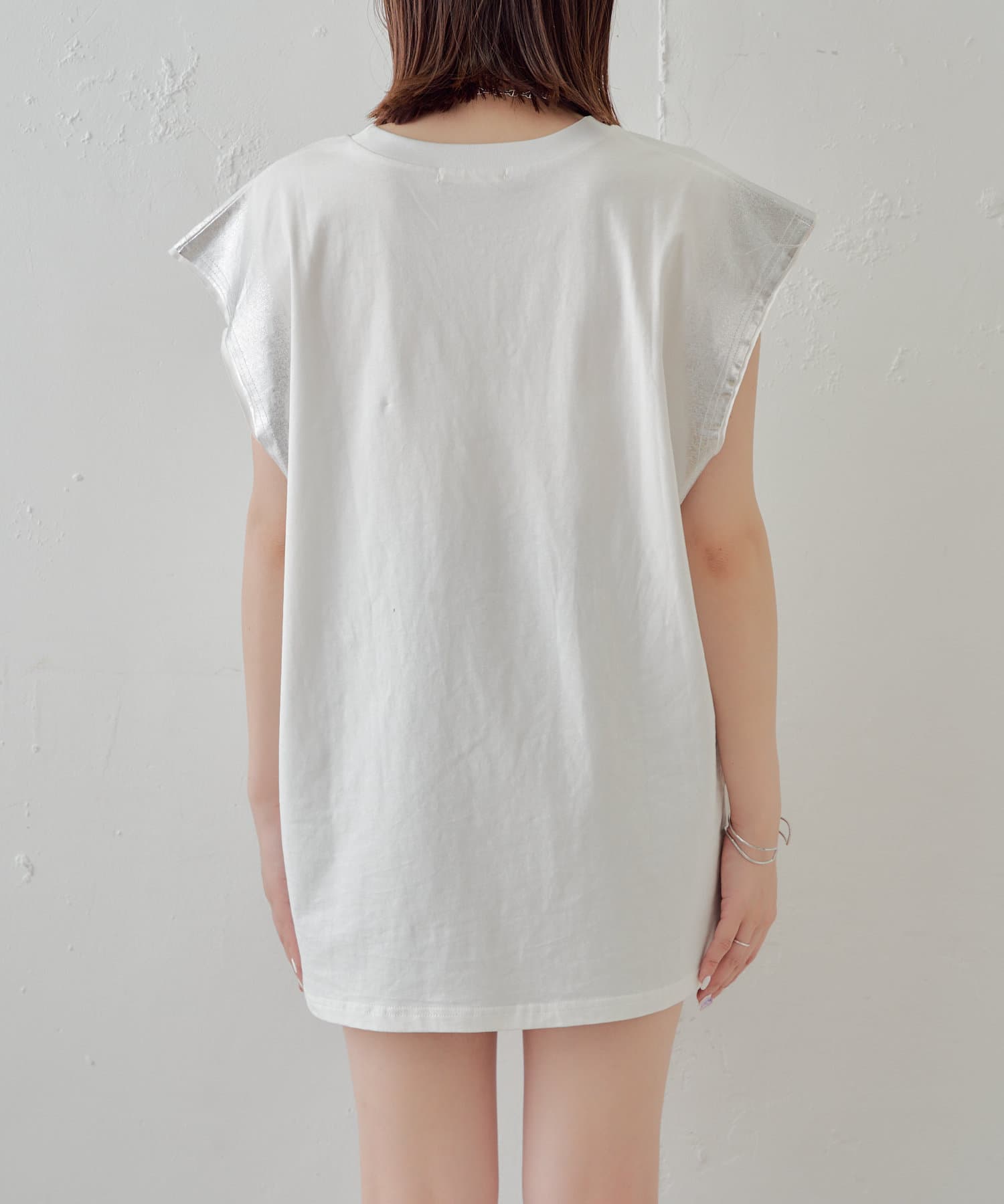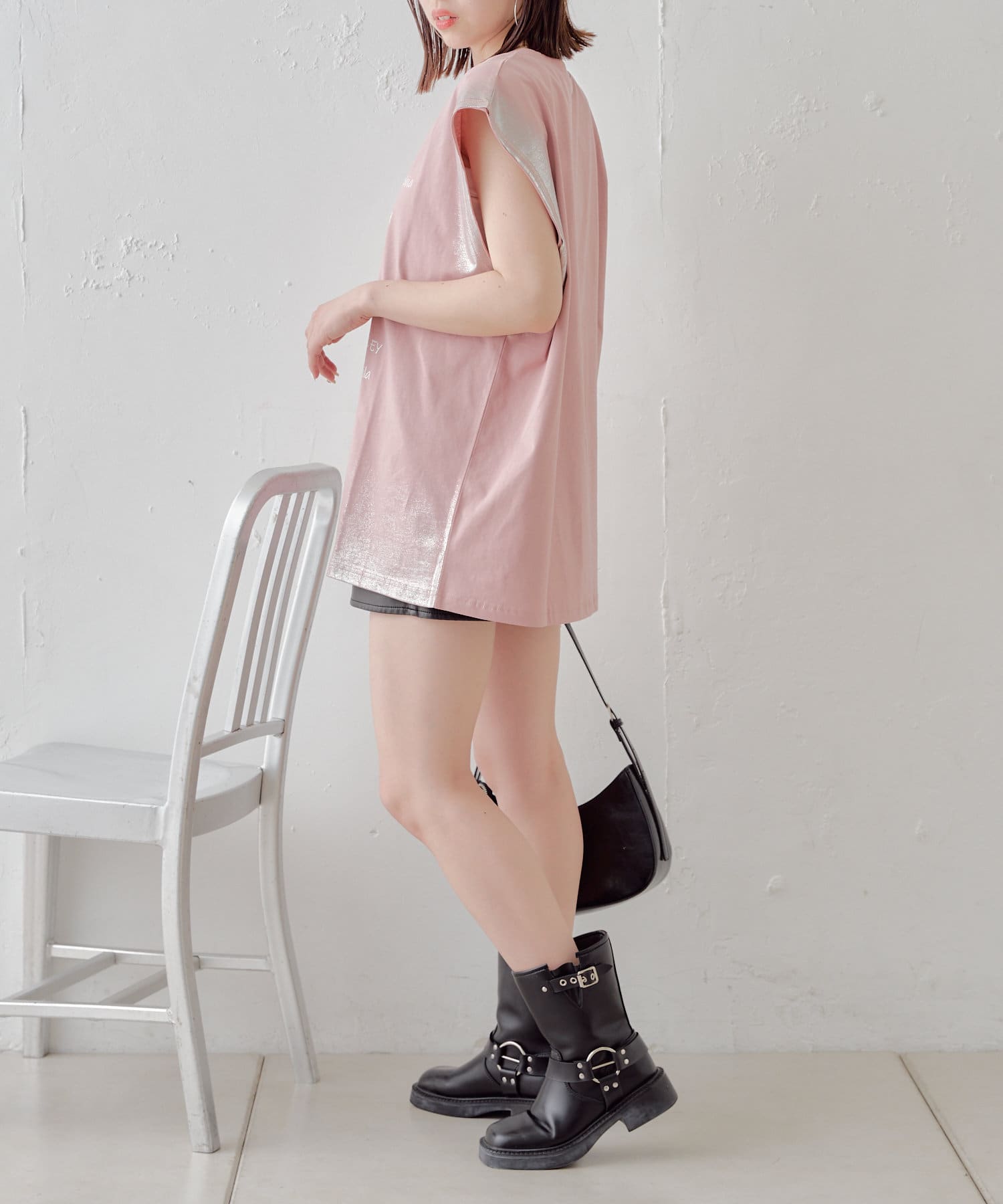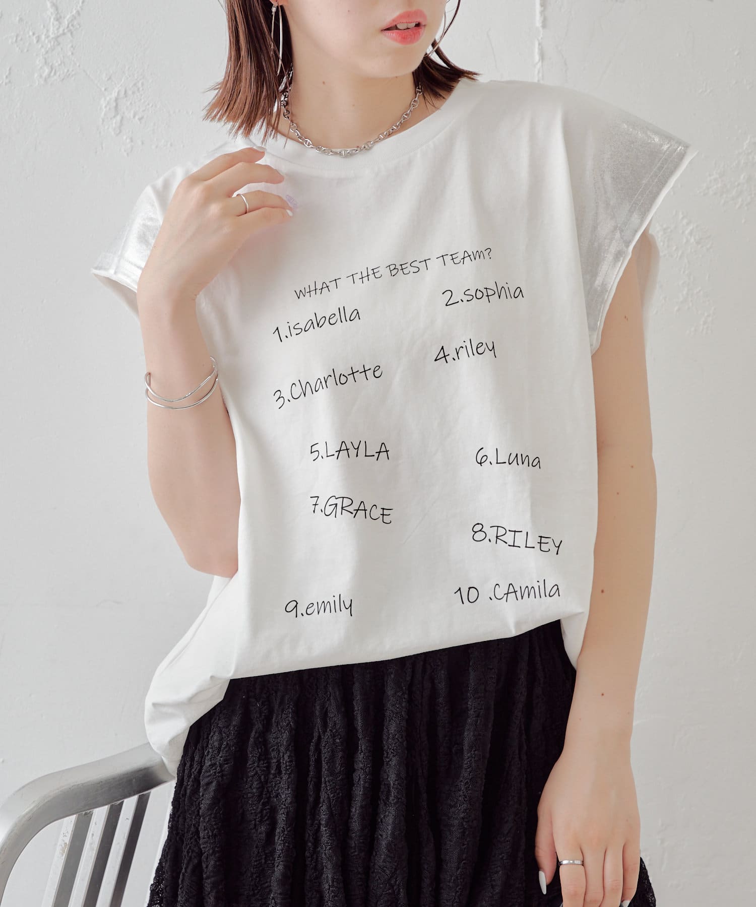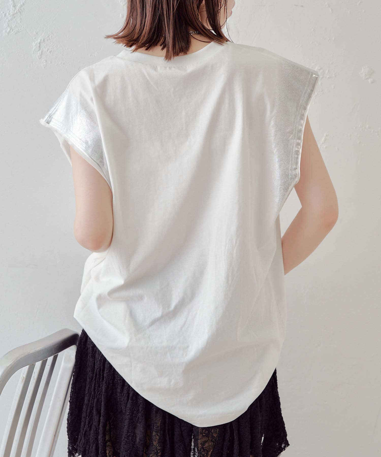 ・袖の箔プリントがトレンド感のあるTシャツ。
