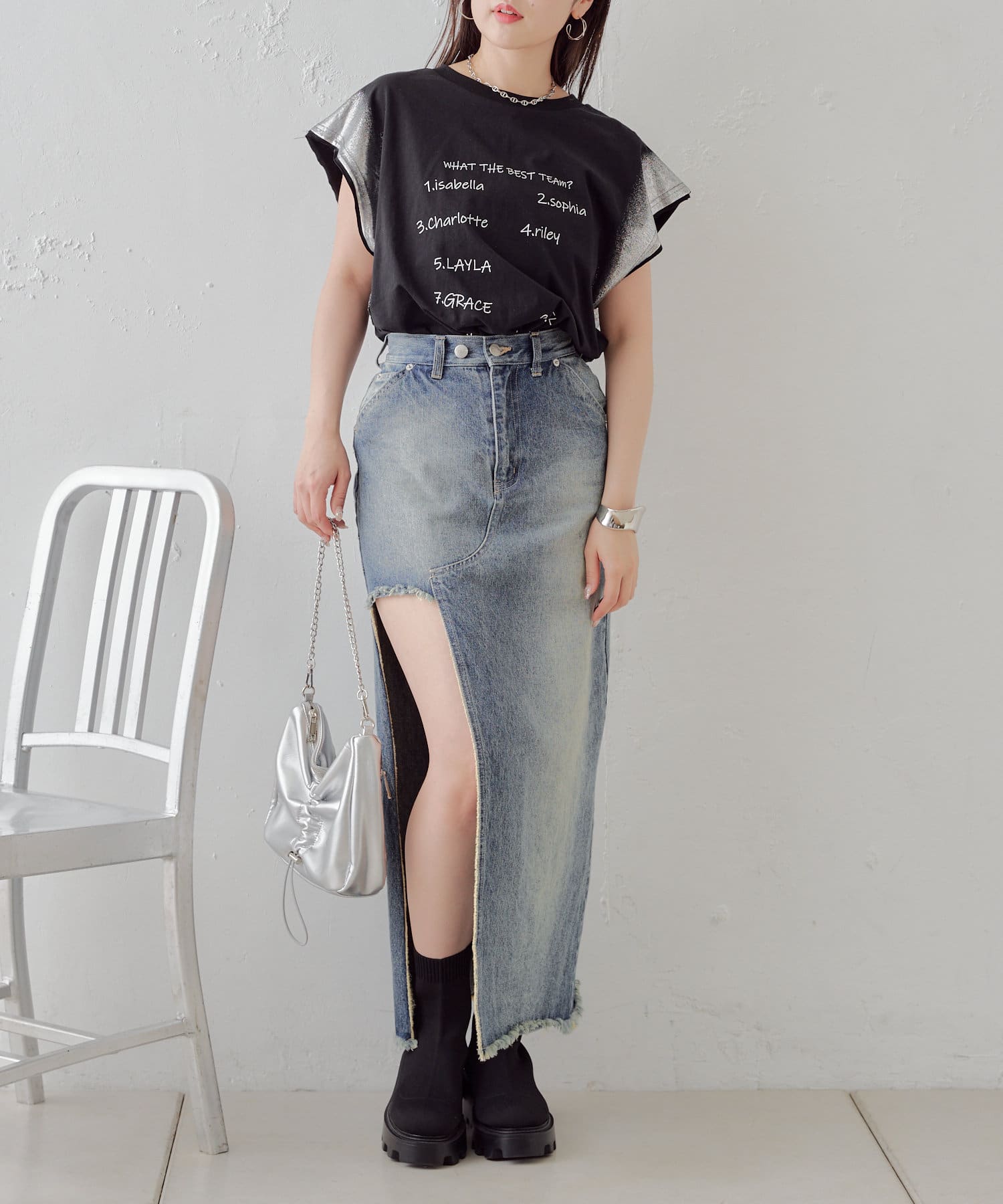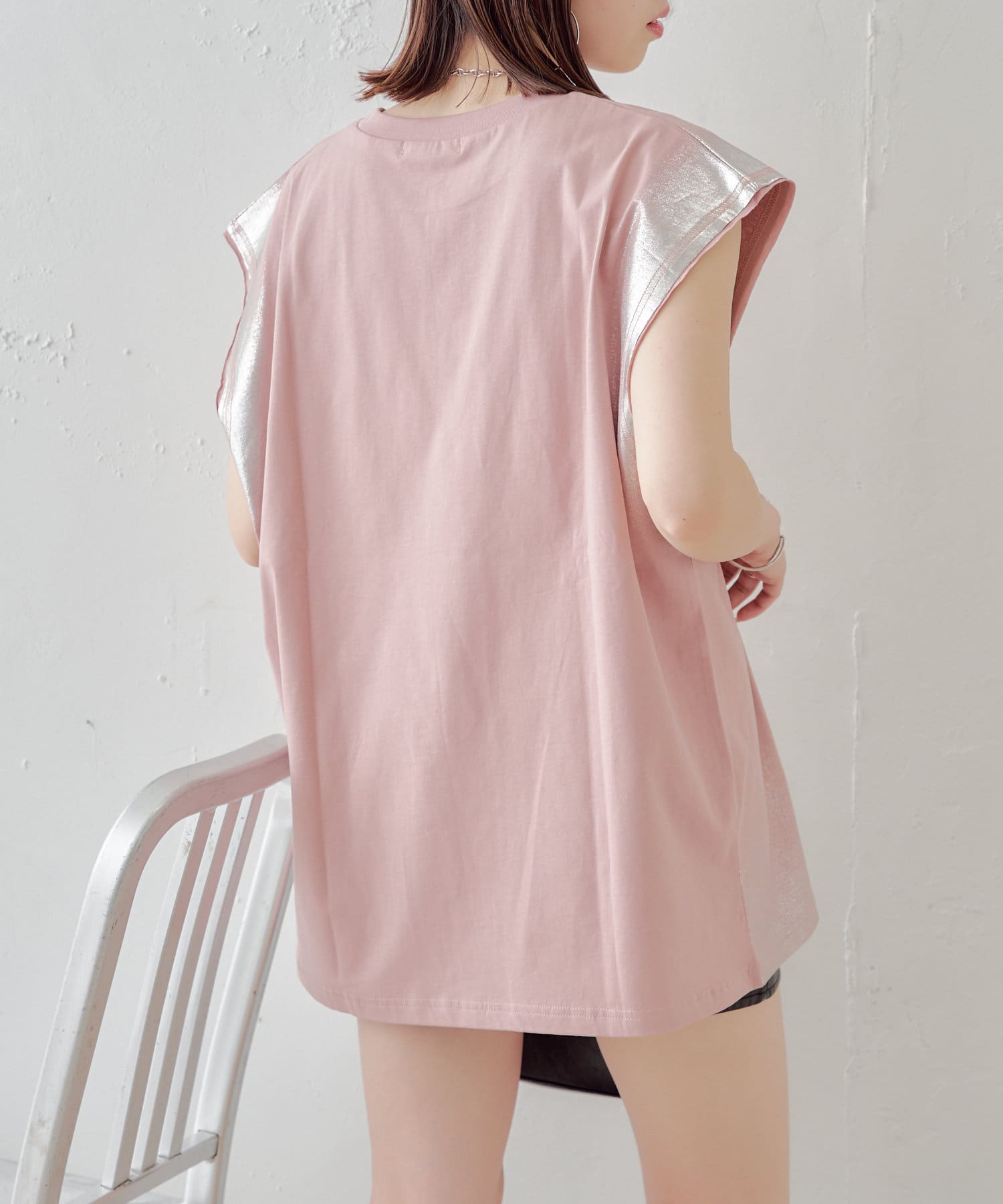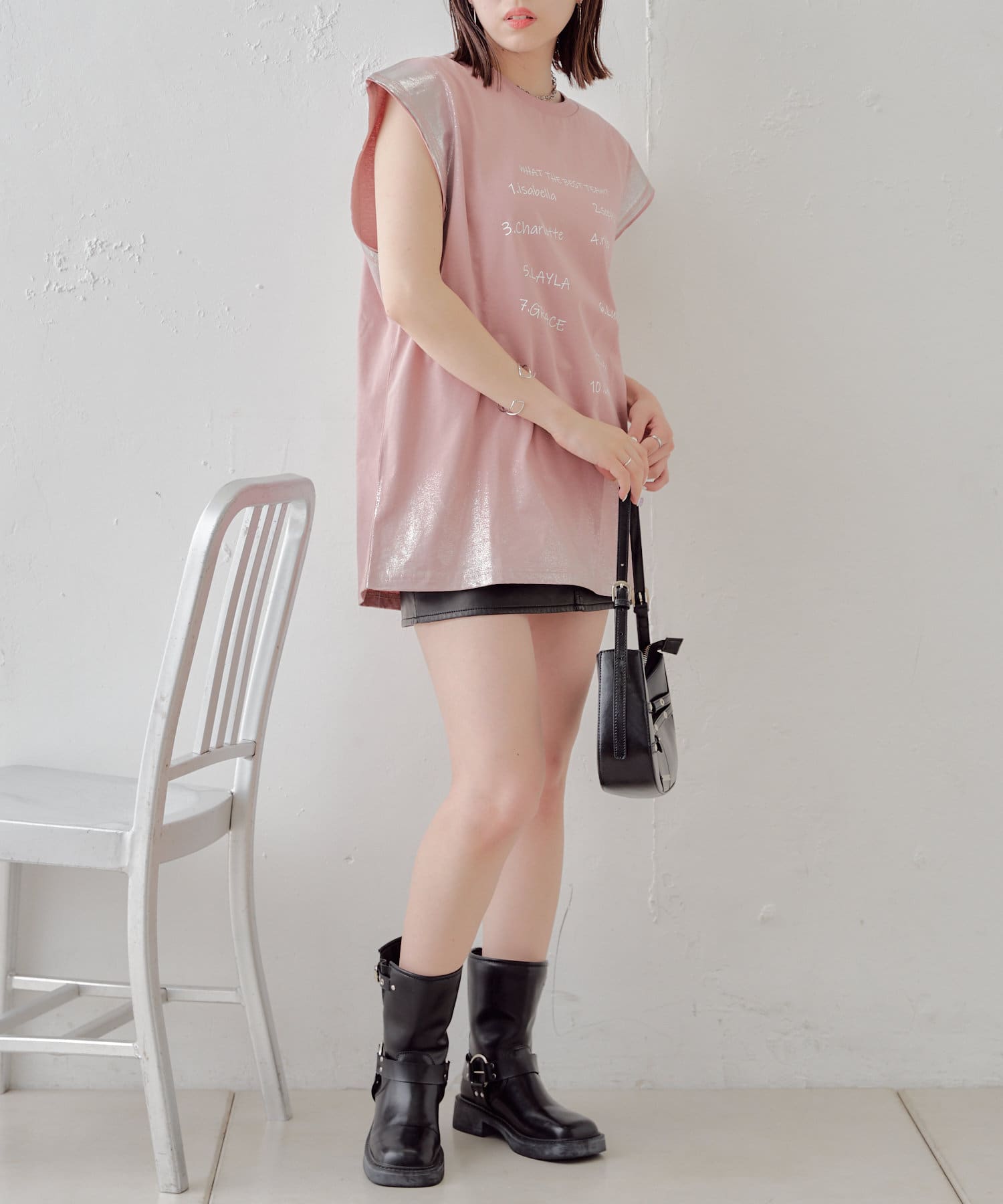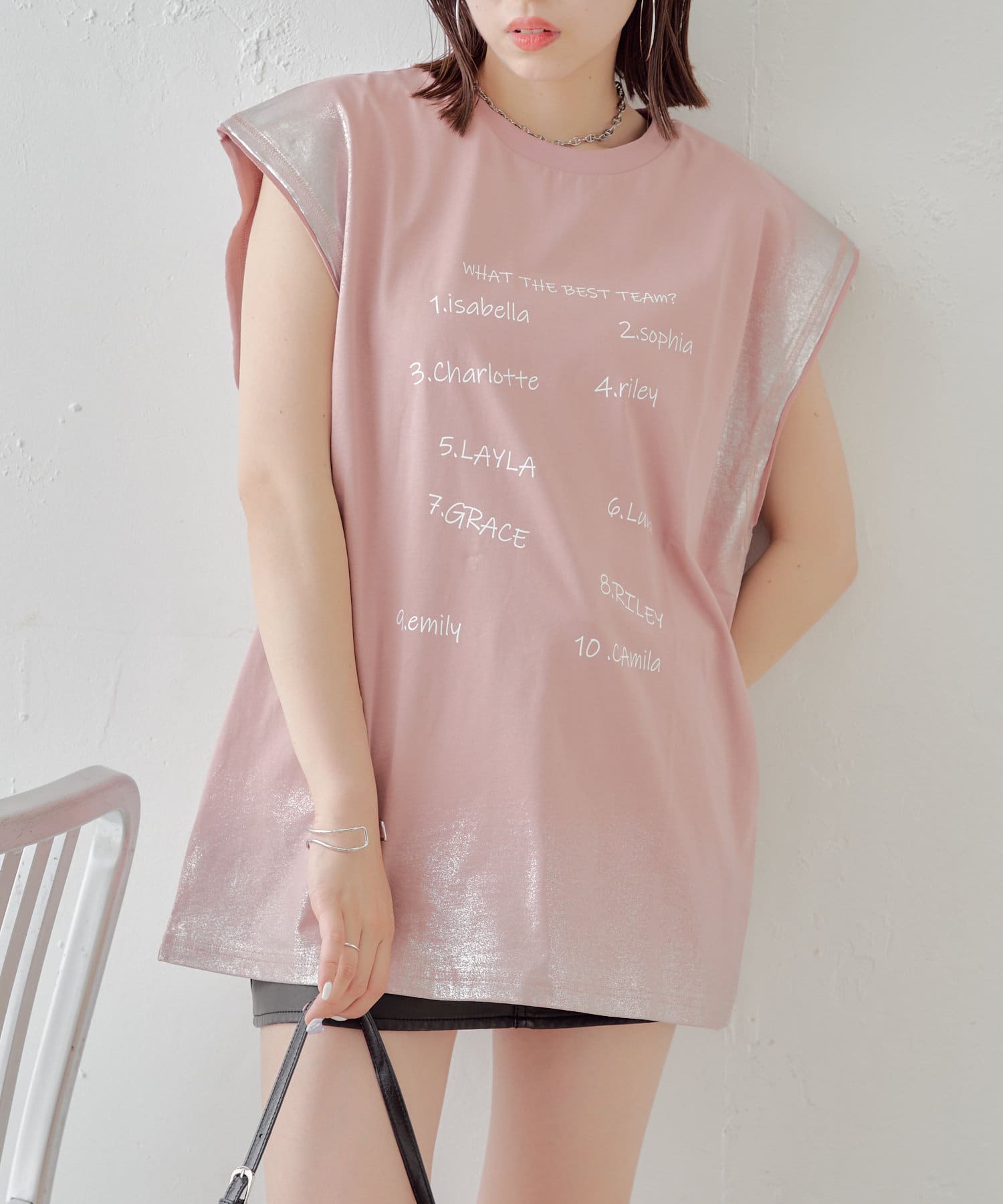・袖の箔プリントがトレンド感のあるTシャツ。