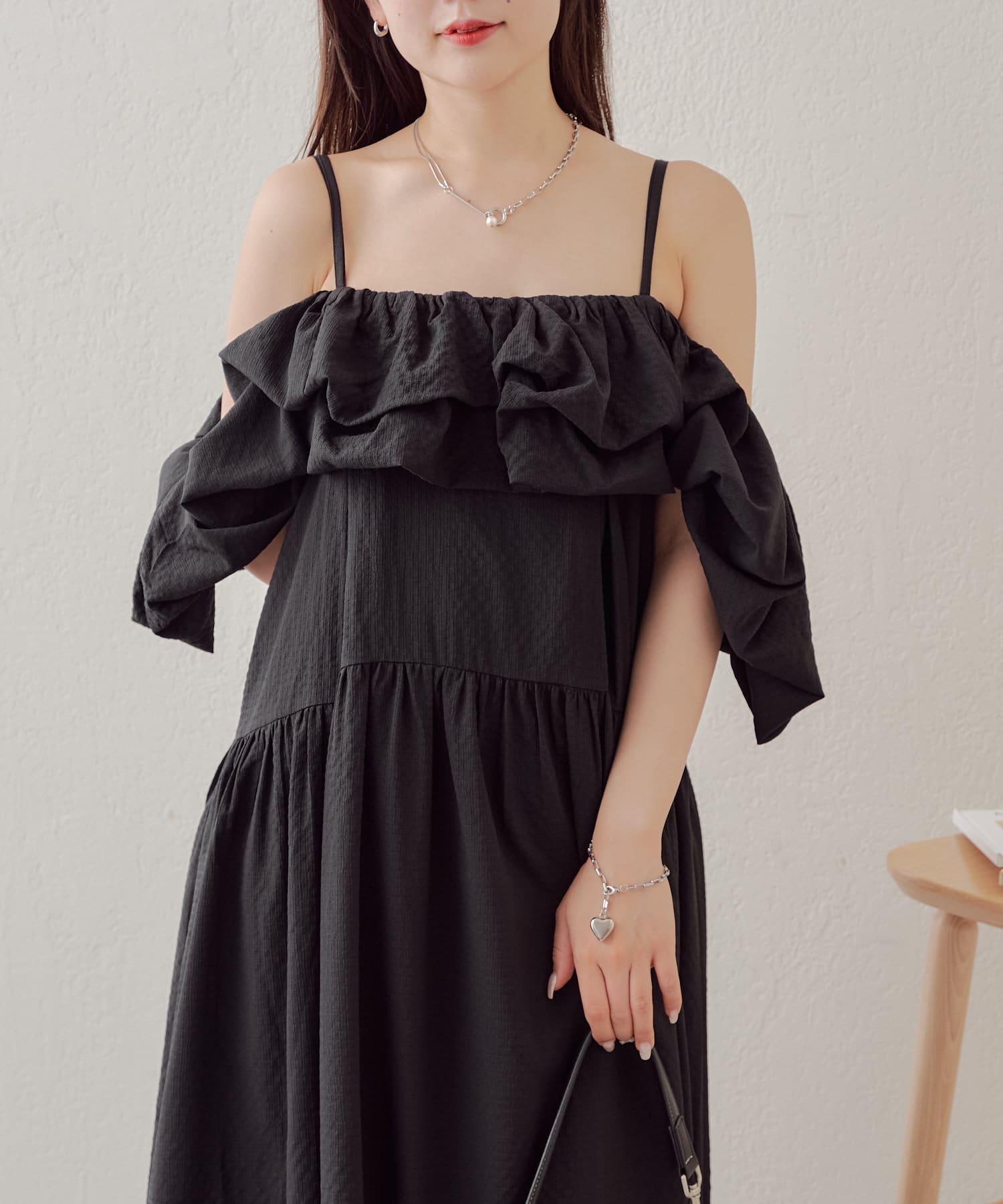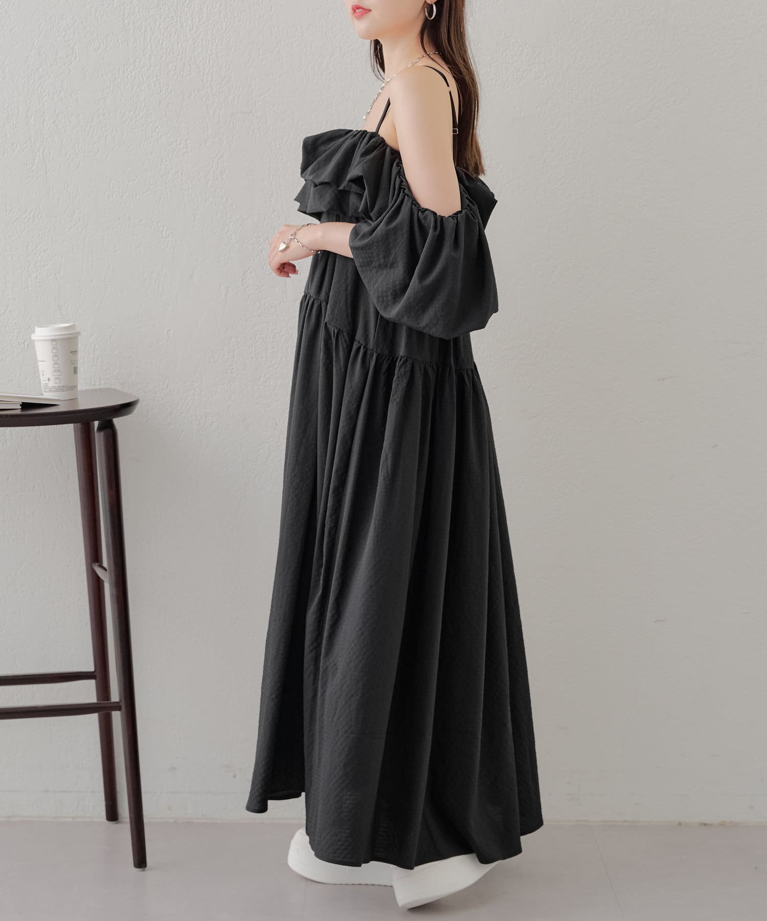 ・袖のフリルは肩に上げて着ても着られる2way仕様です。