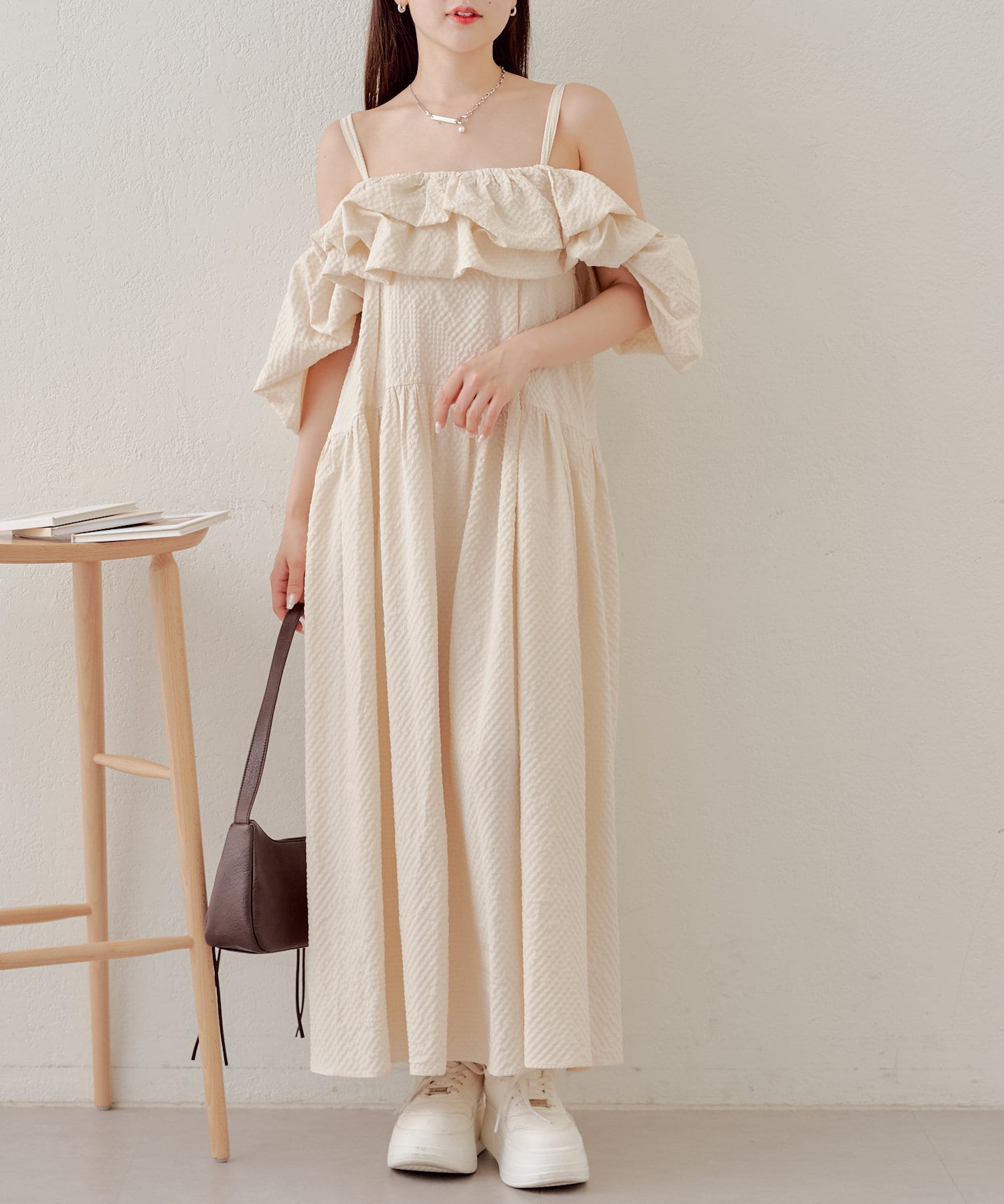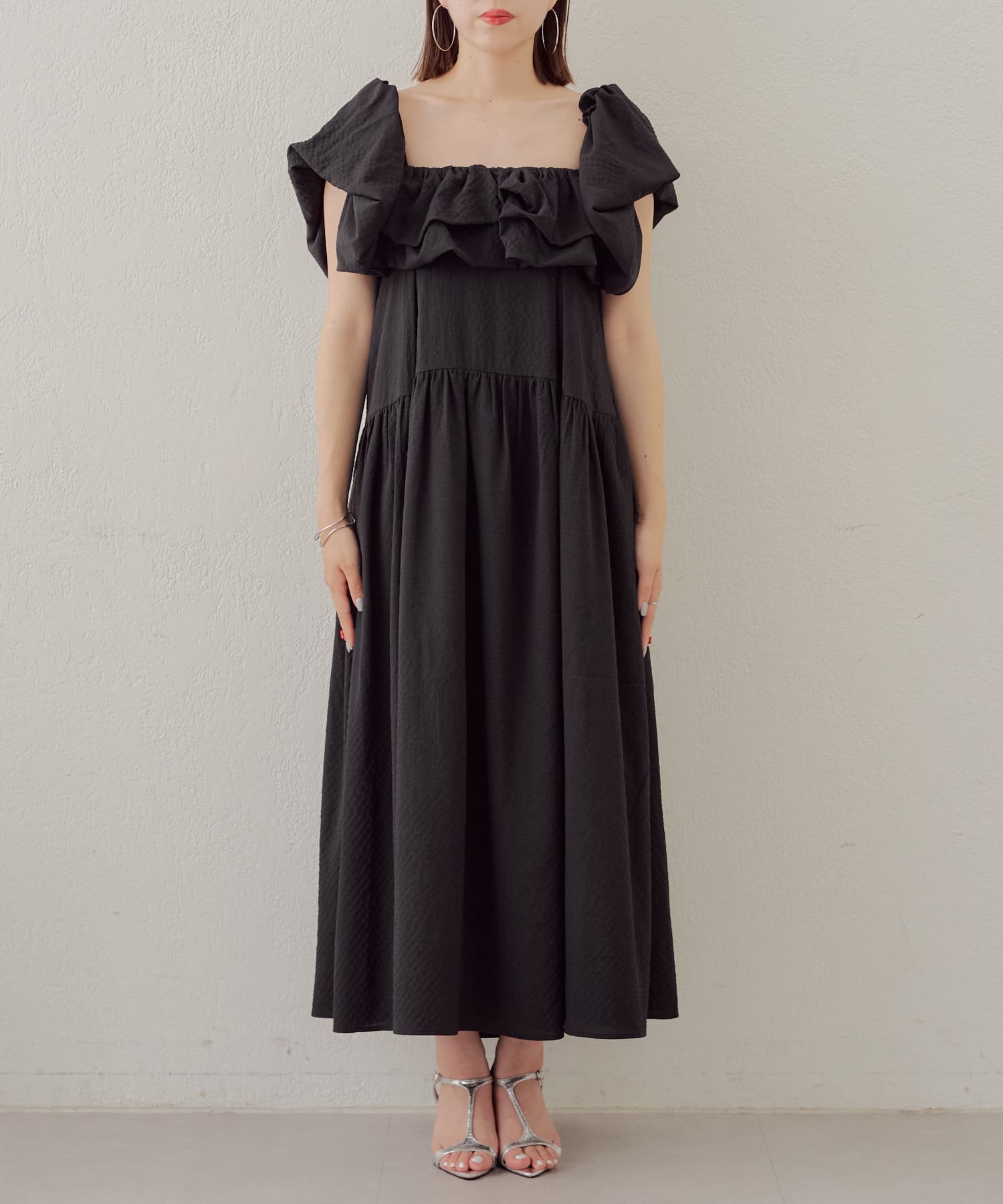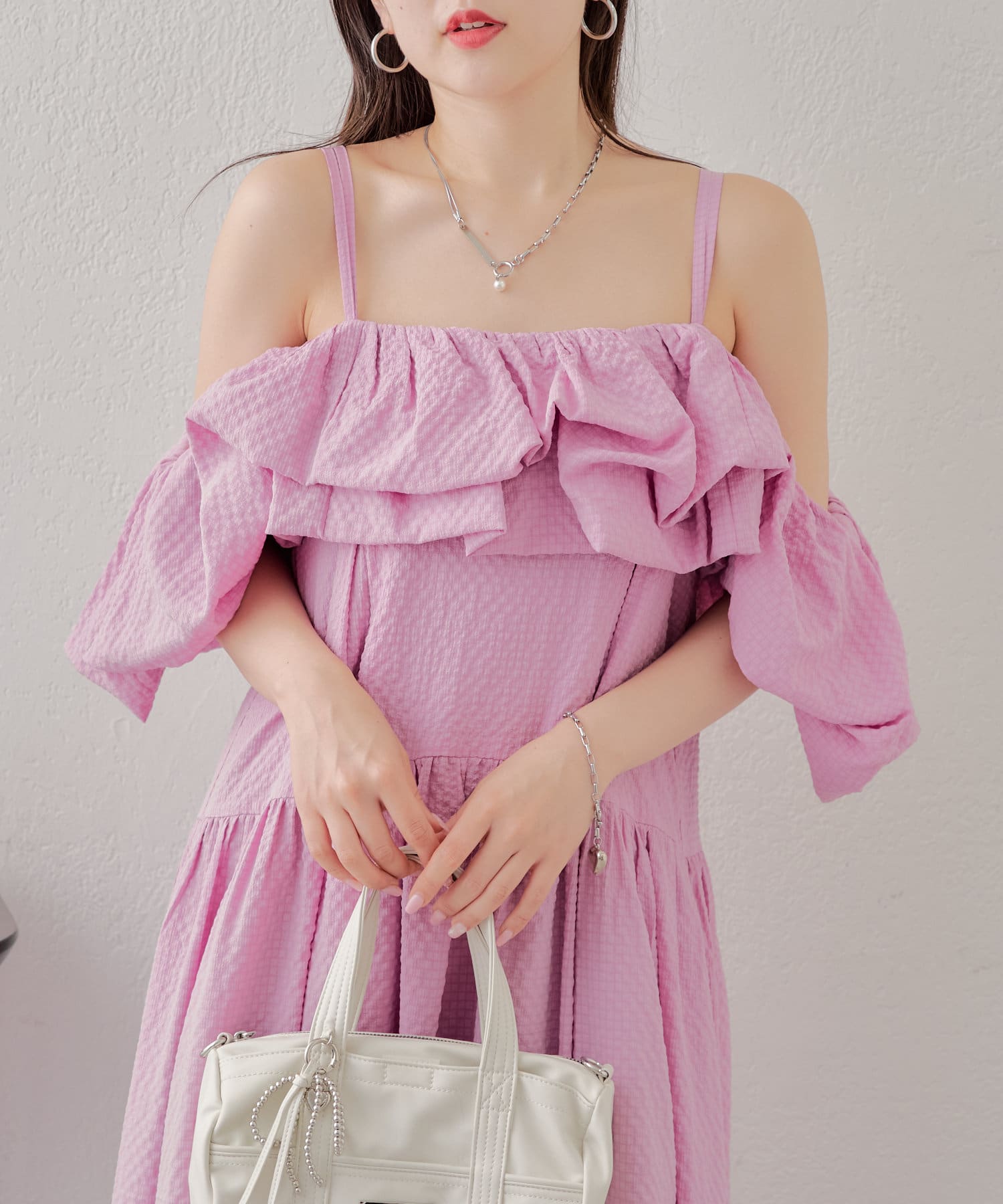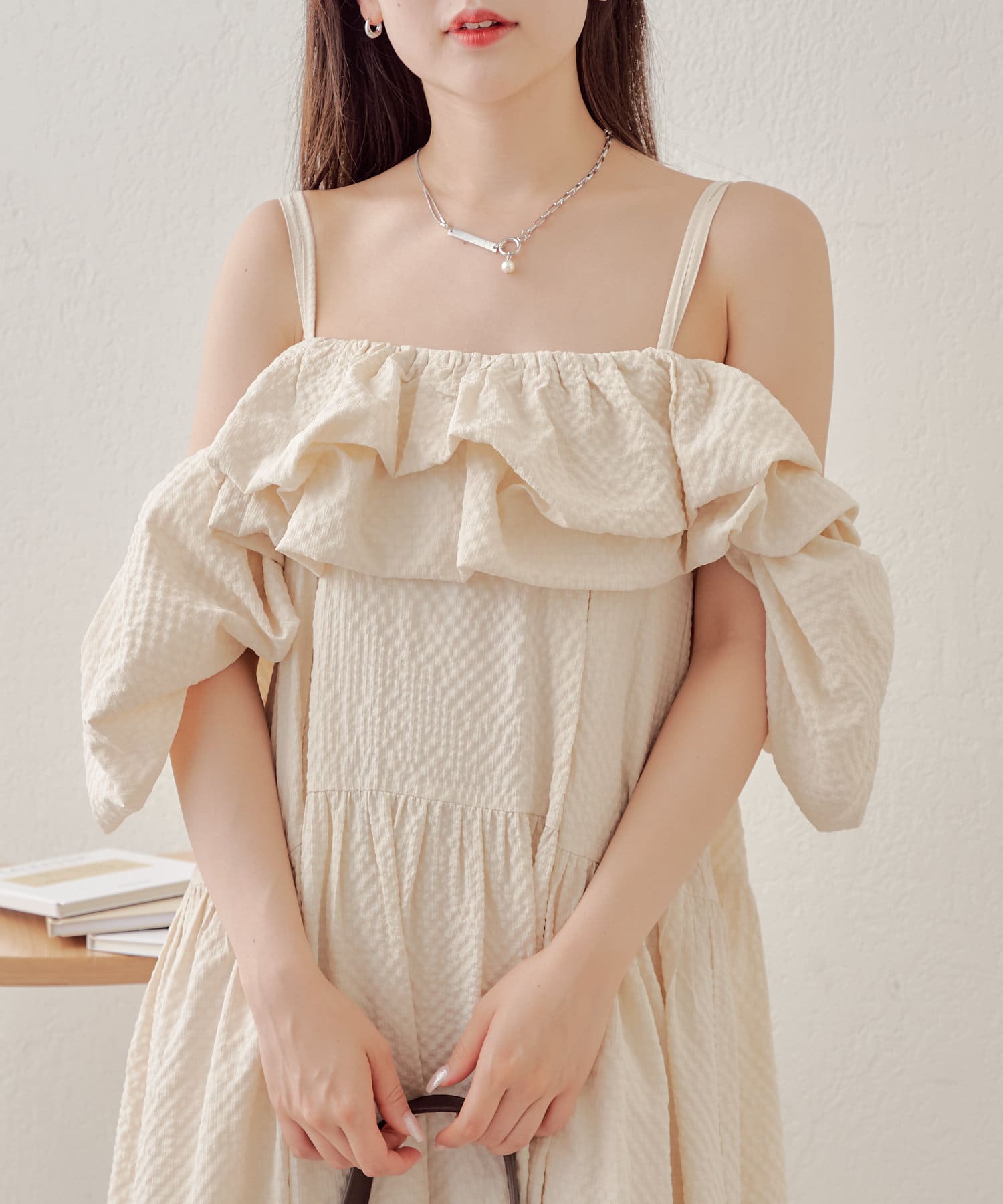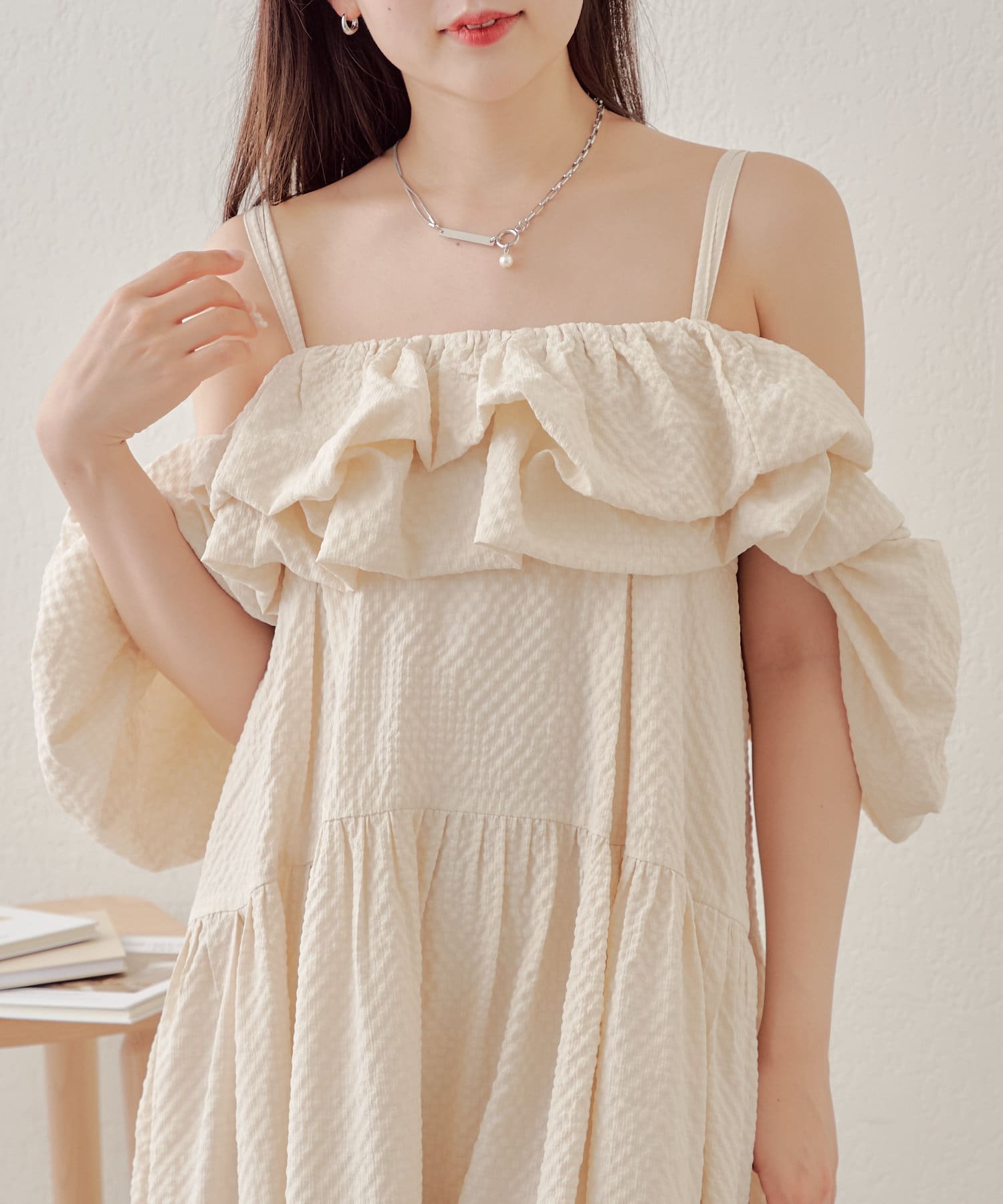 胸元と袖のフリルがときめくワンピースが登場