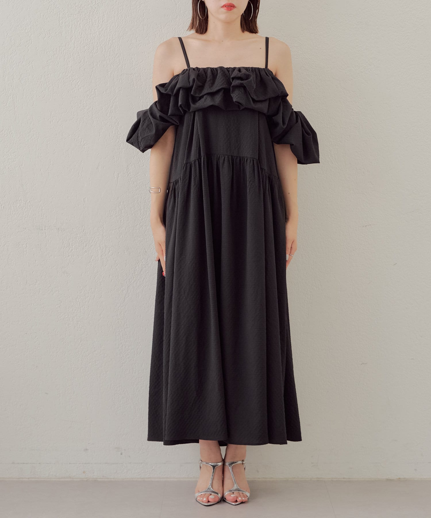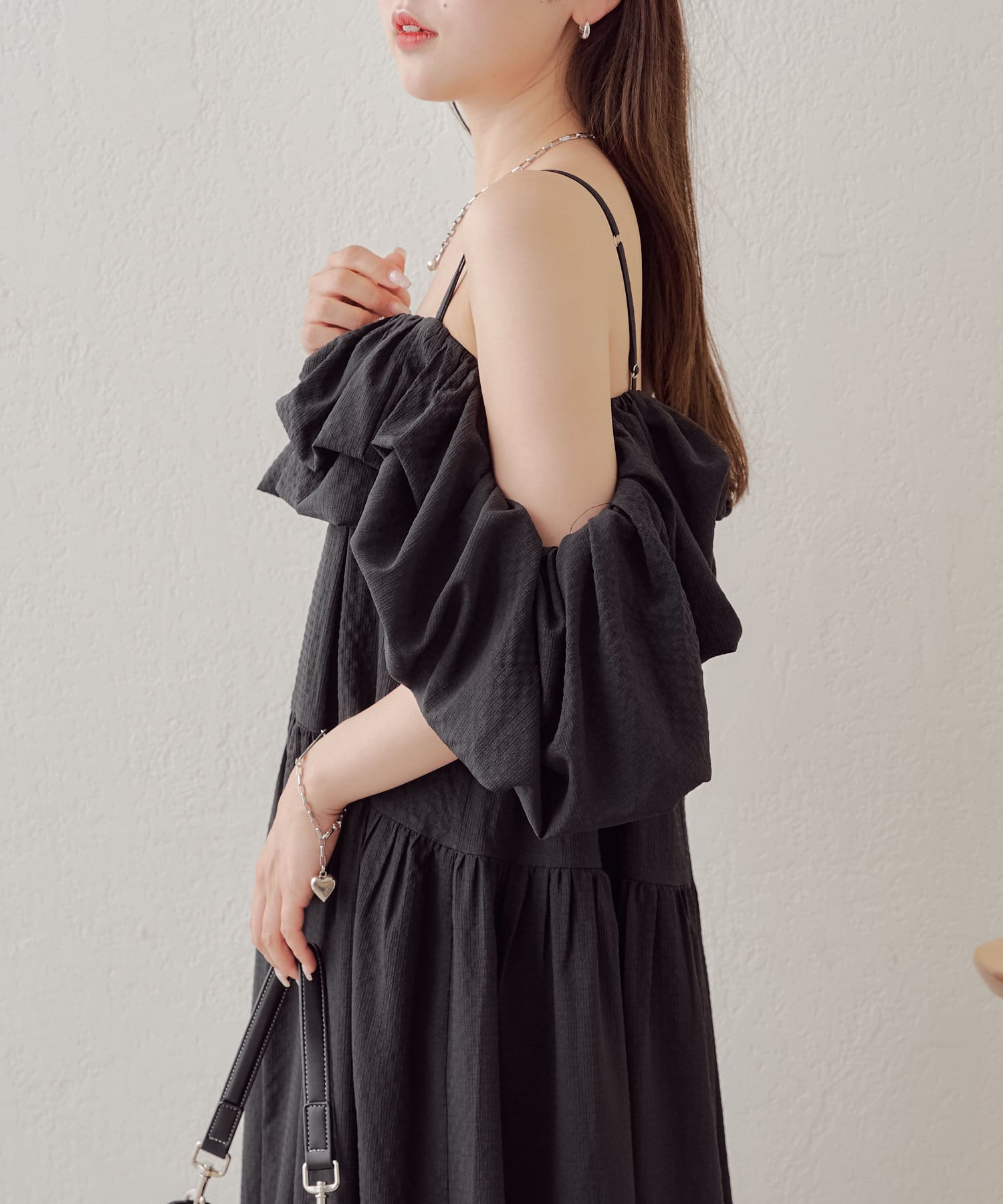 【Chico】バルーン袖2WAYフレアワンピース