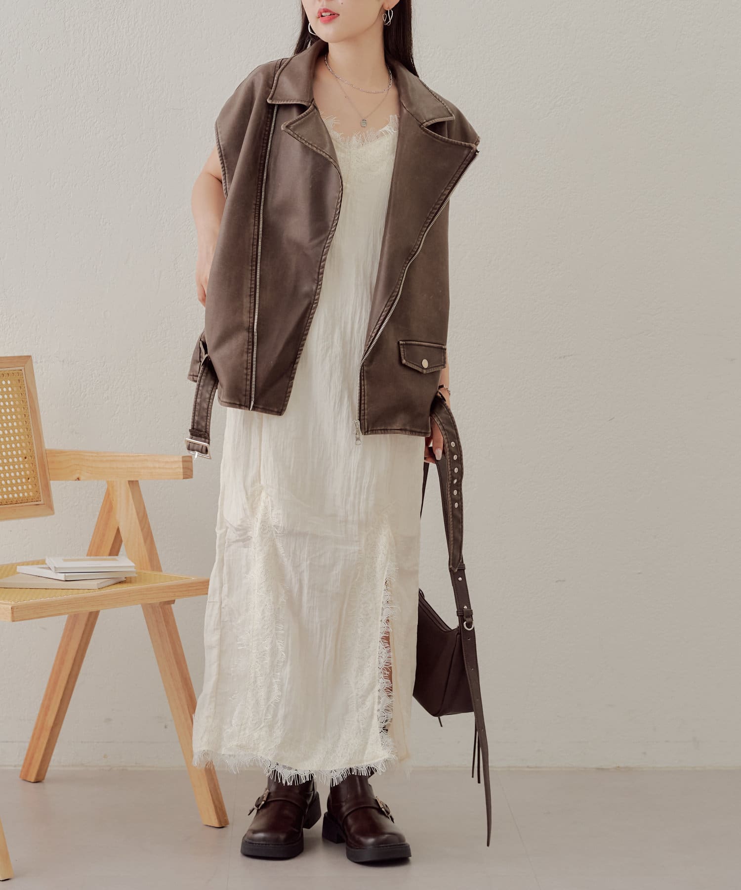 ・ライダースジャケットのベストはコーデに取り入れるだけでお洒落感アップ。