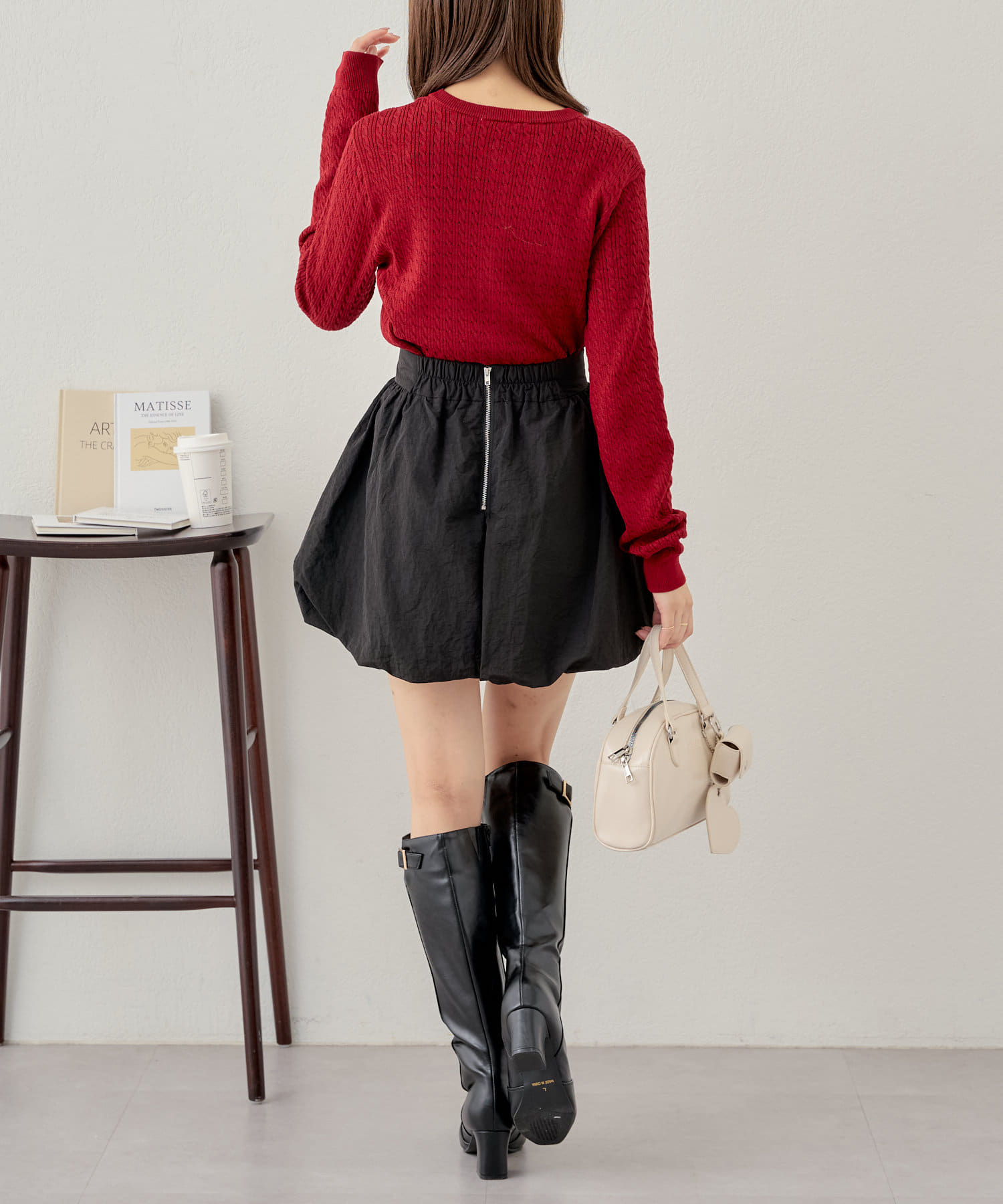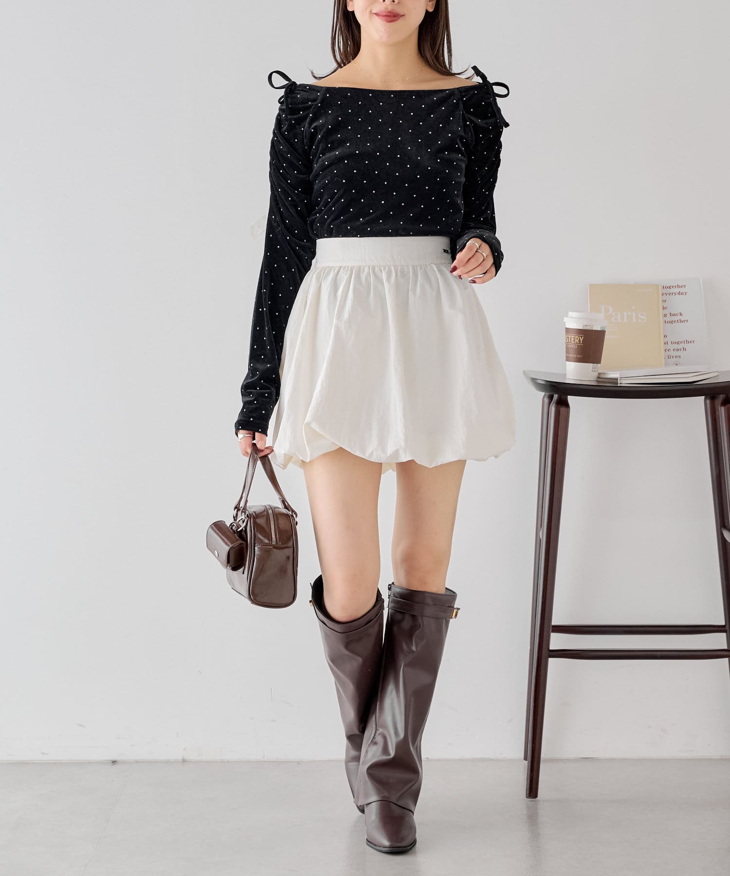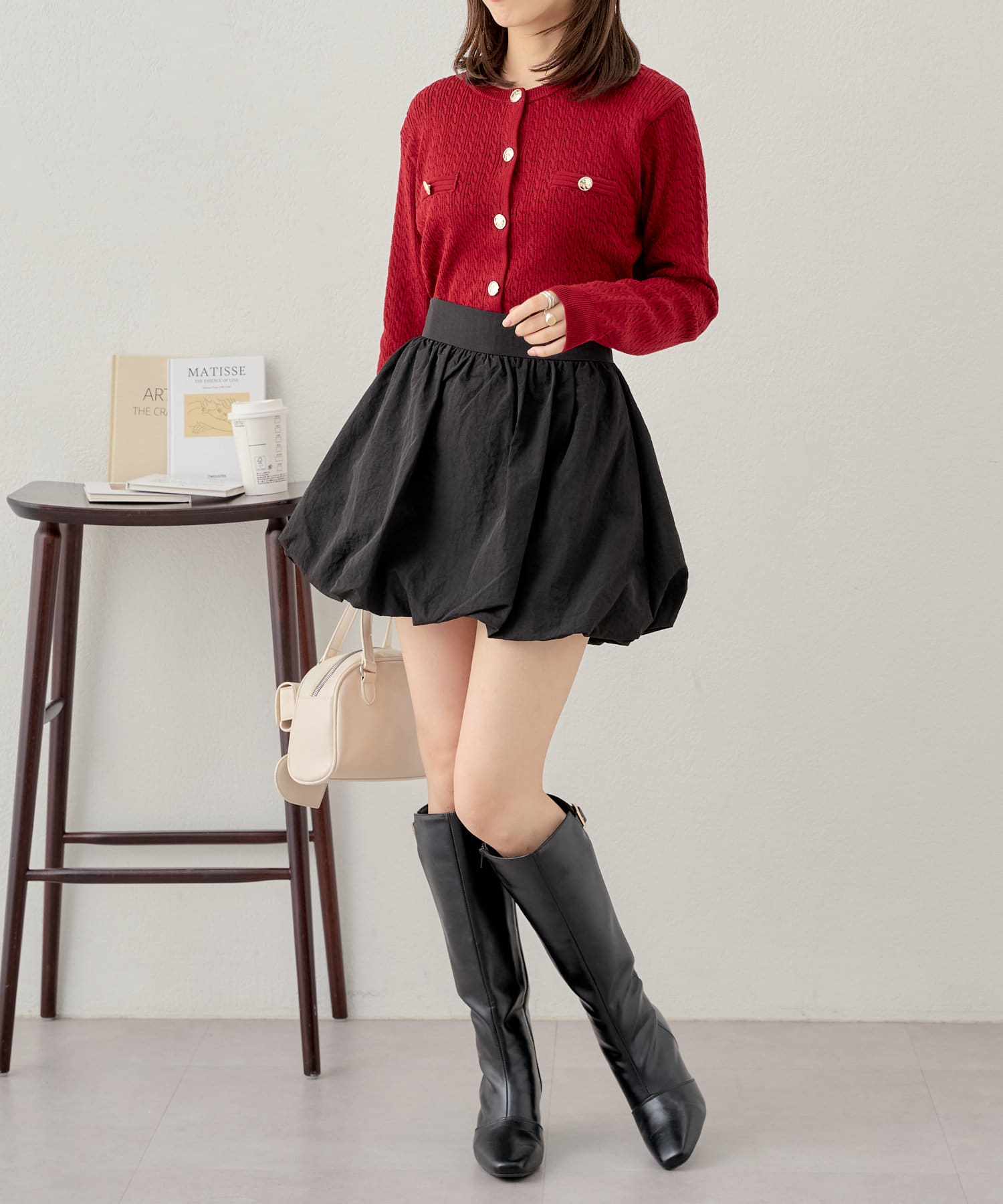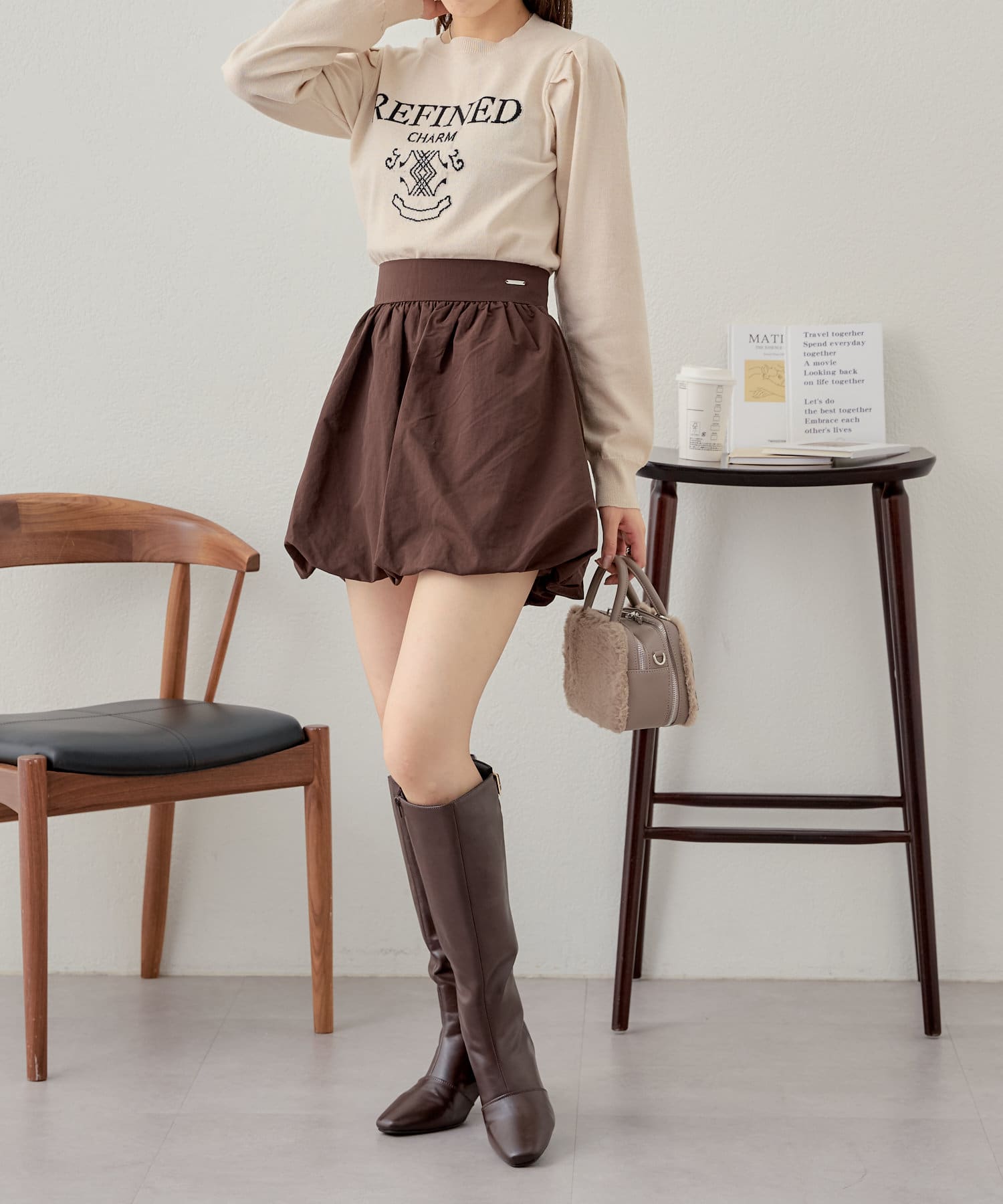 ・程よく広がったシルエットが女性らしいバルーンスカートは美脚効果も◎