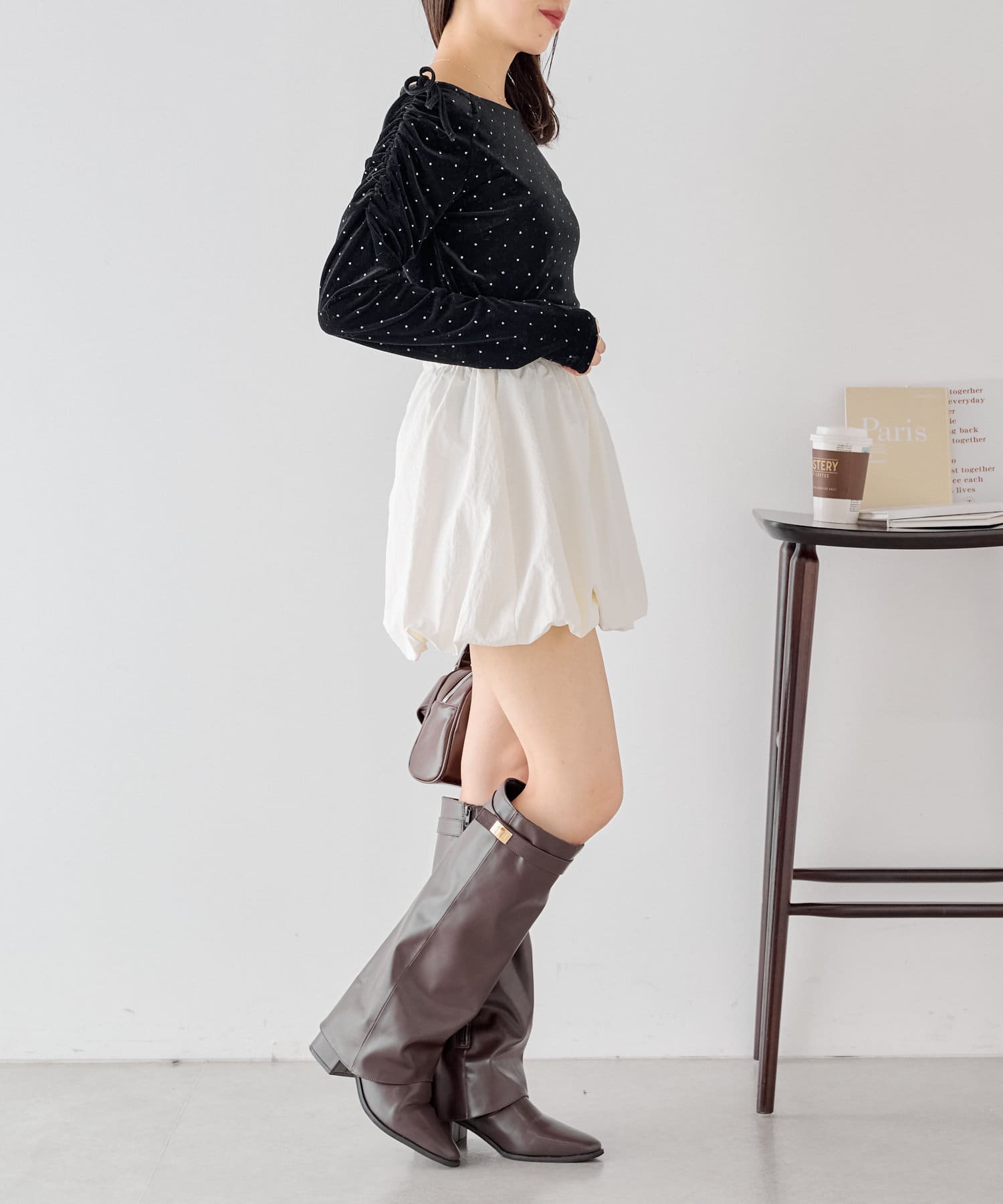 ・ボリューム感のあるボトムスなのでコンパクトなトップス合わせが好相性◎