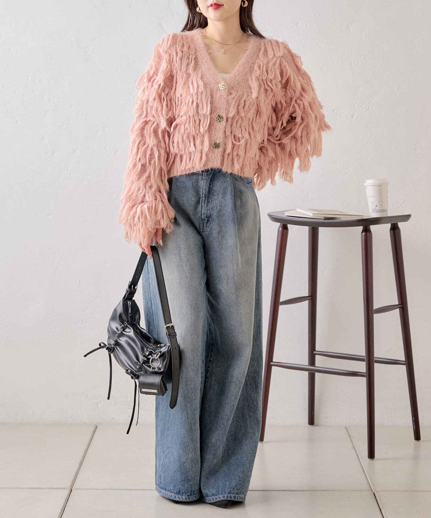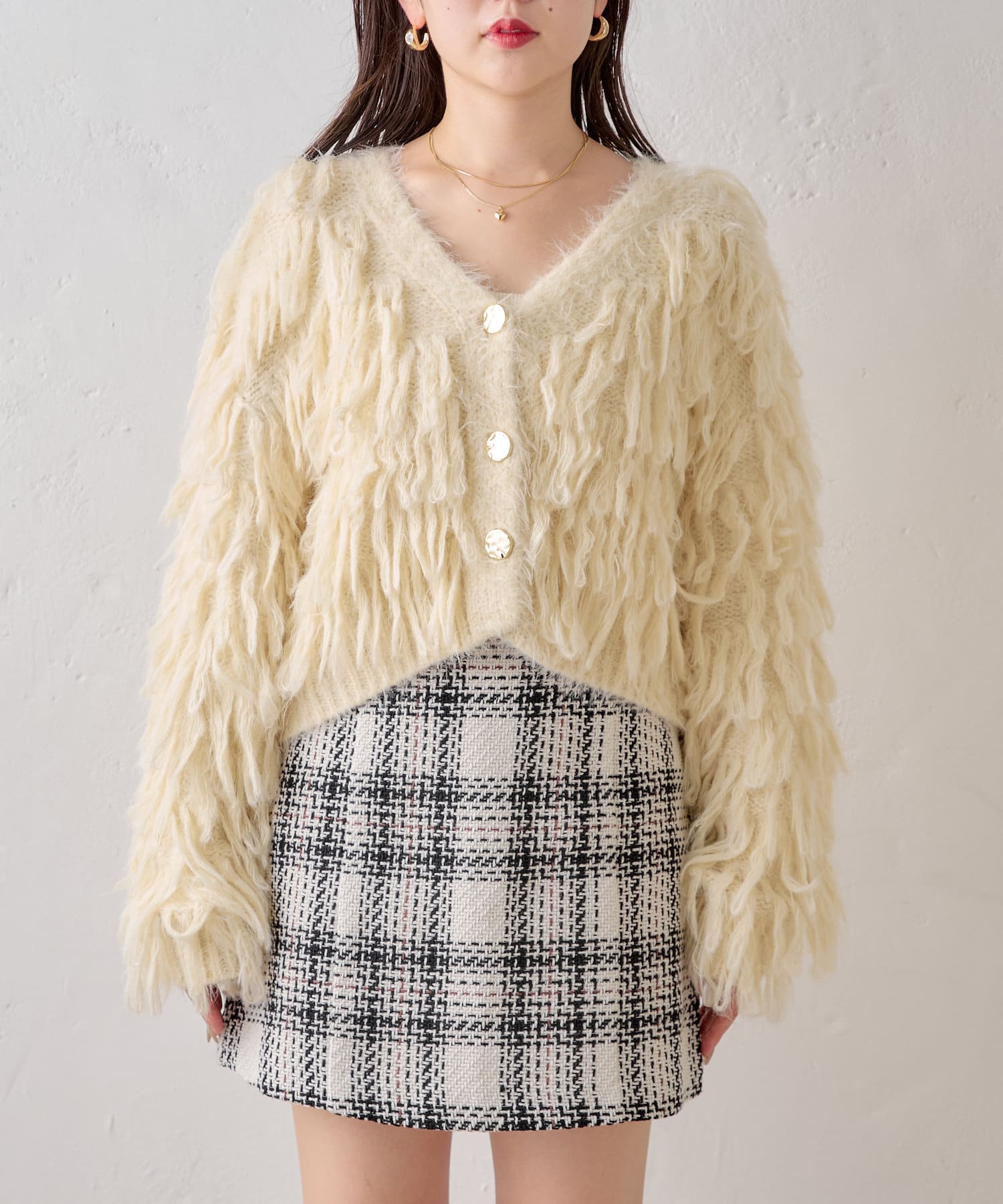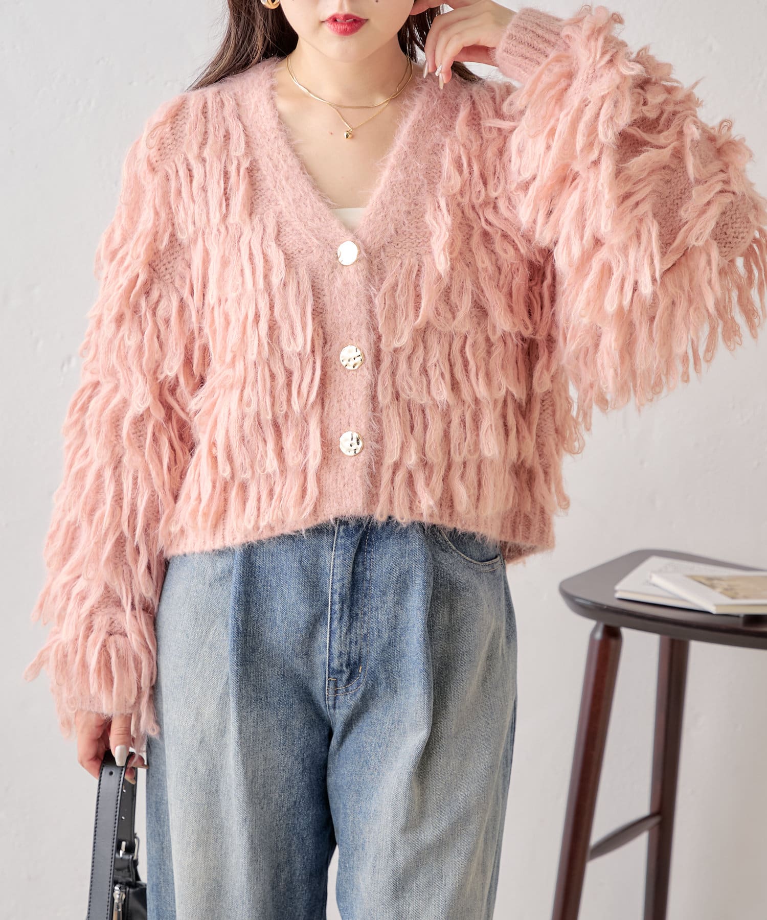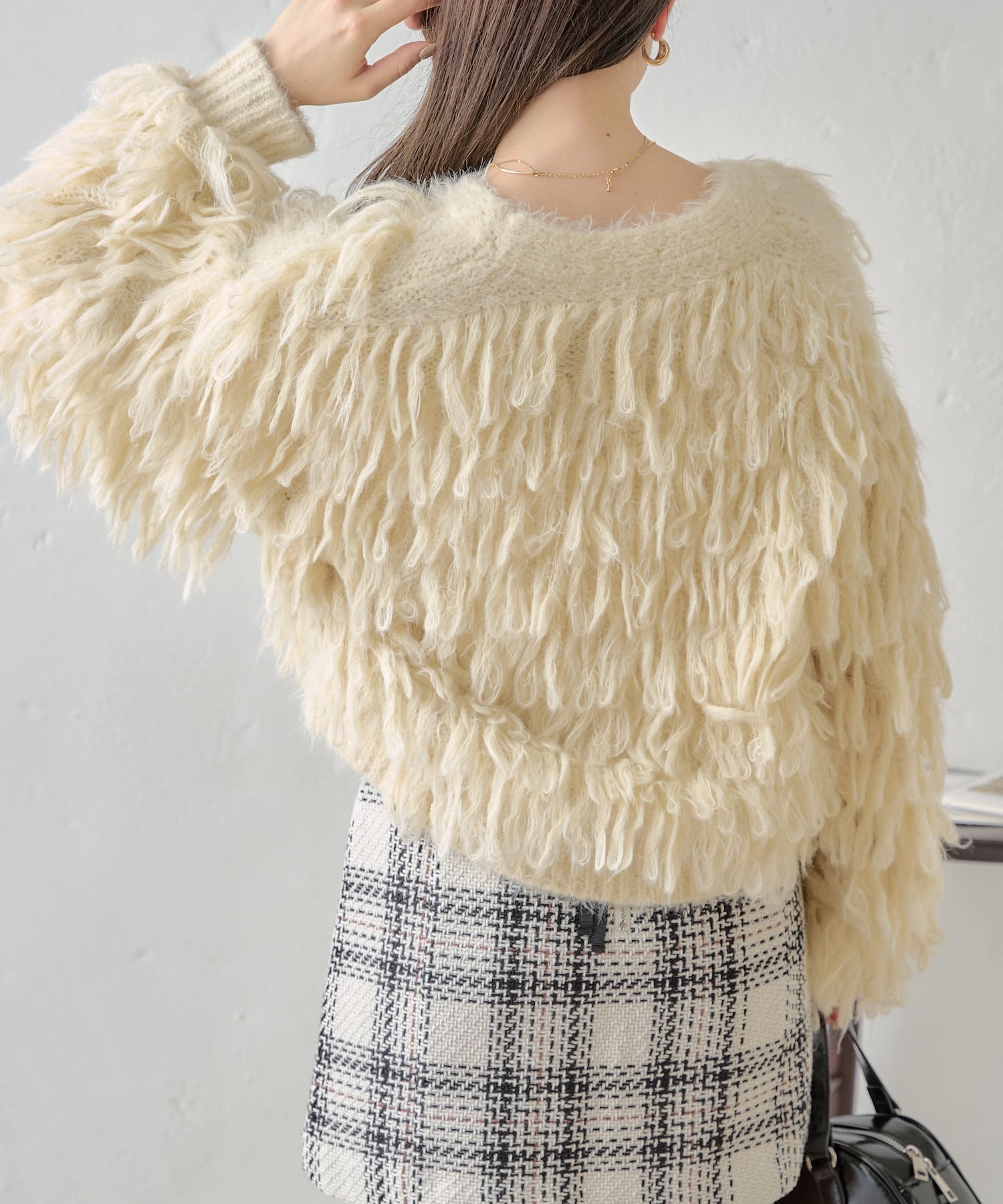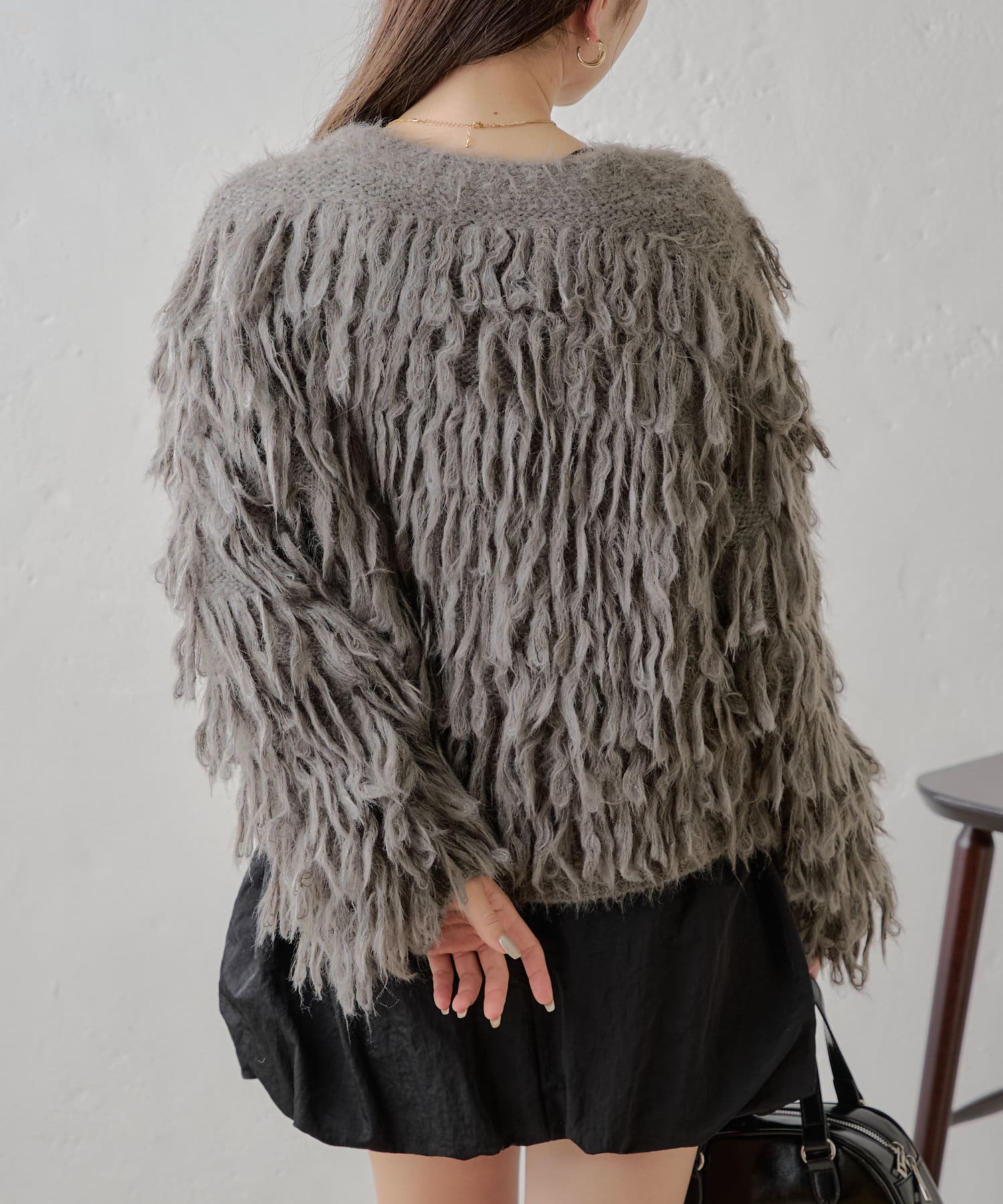 ロングフェザーが目を引く秋のモテカーディガン♡