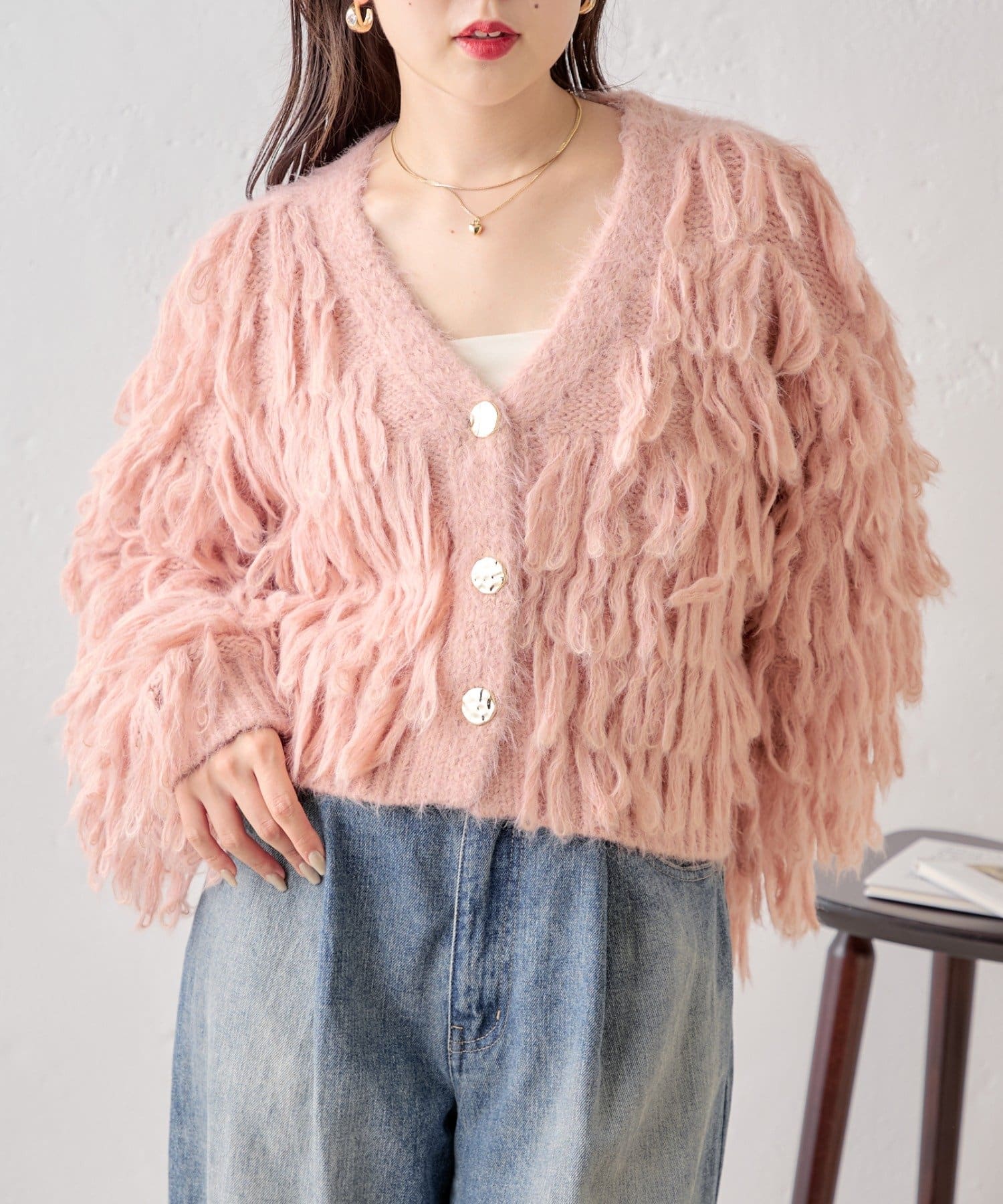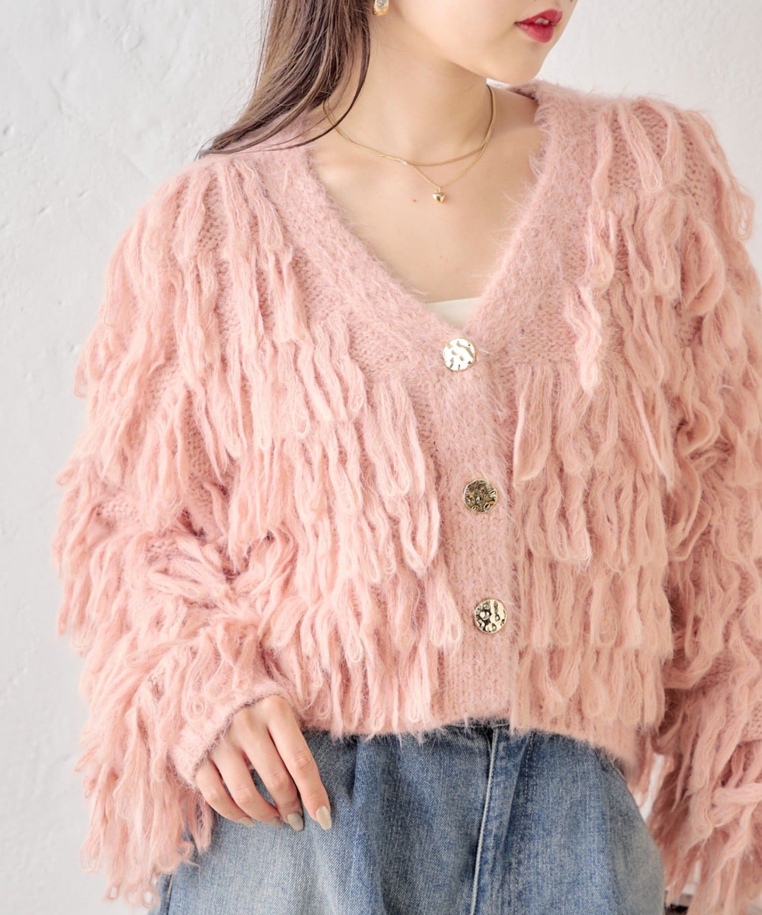 【Chico】金釦ロングフェザーカーディガン