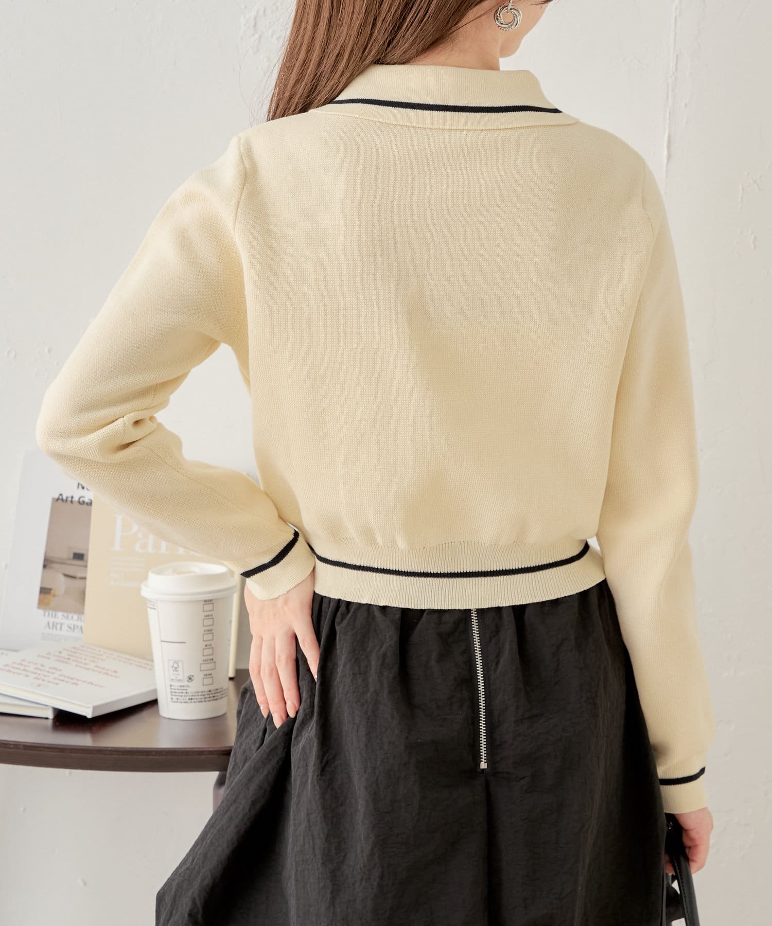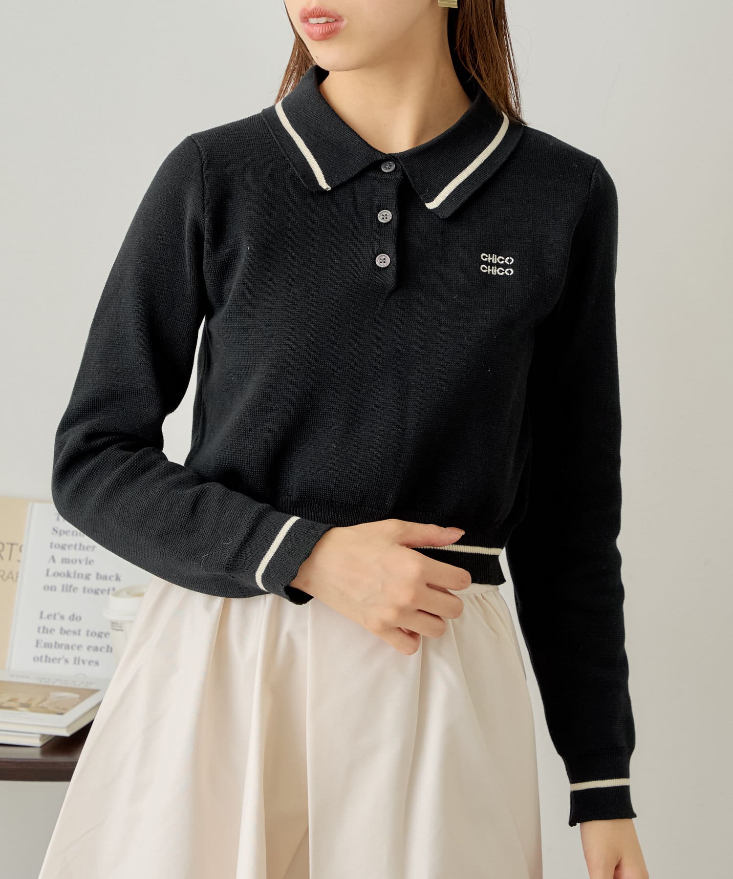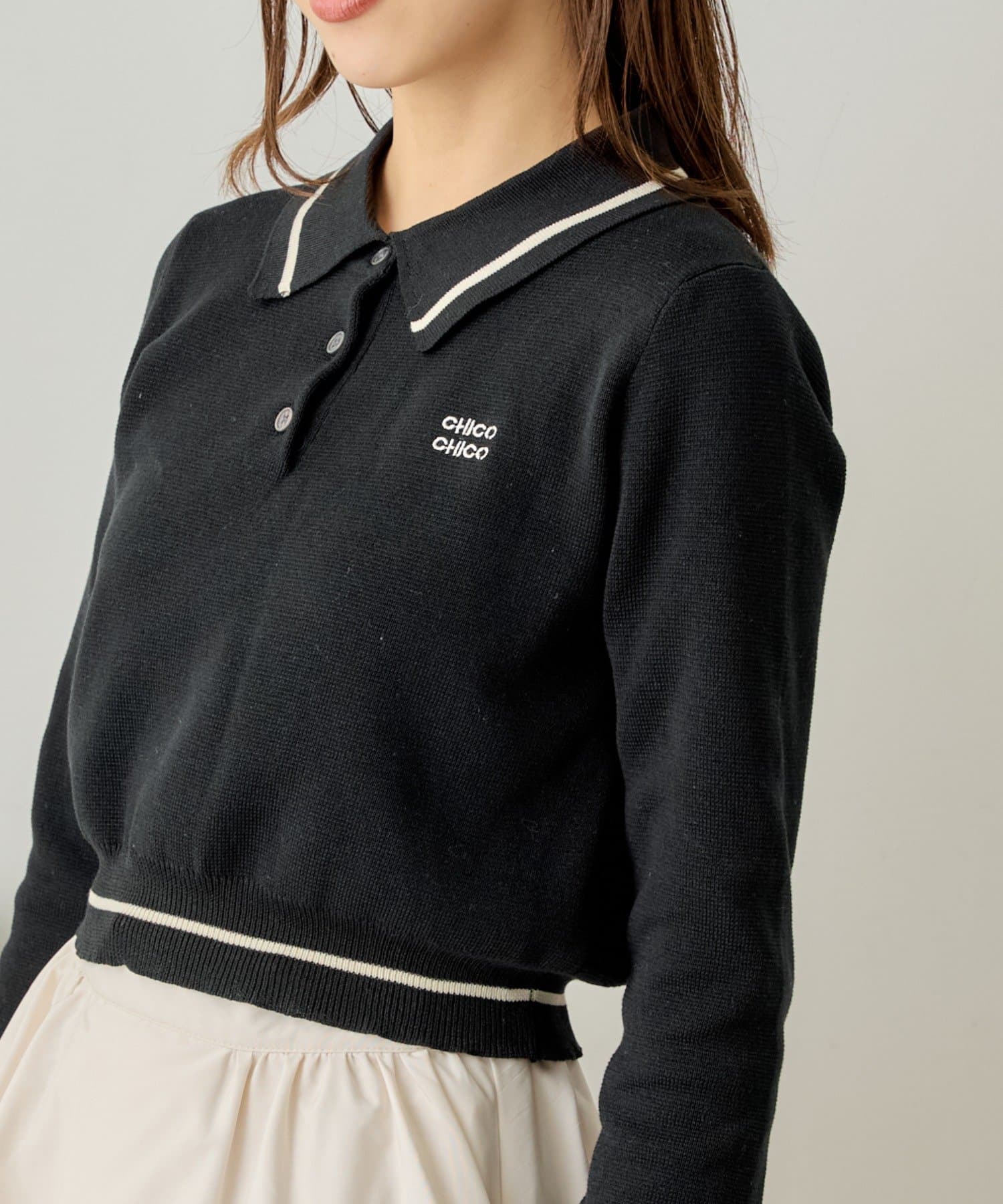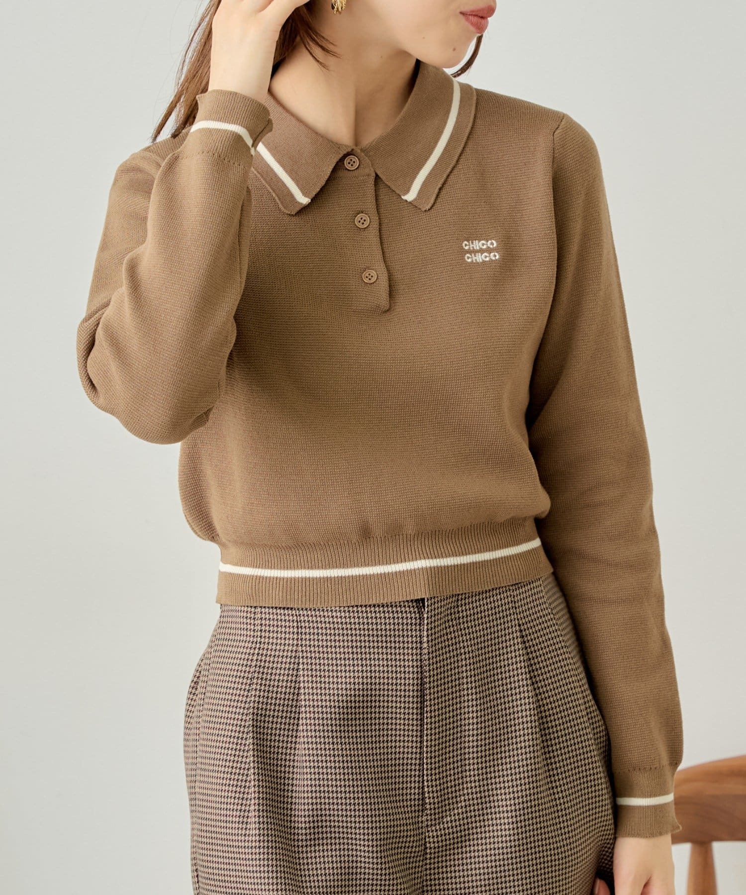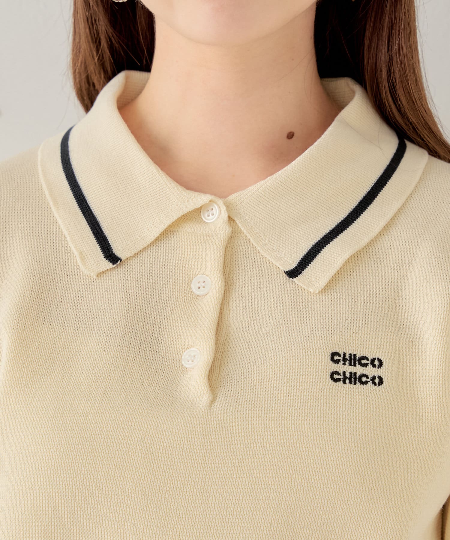 TOP > Chico > レディース > トップス > ニット/セーター > ロゴ刺繍長袖ポロ