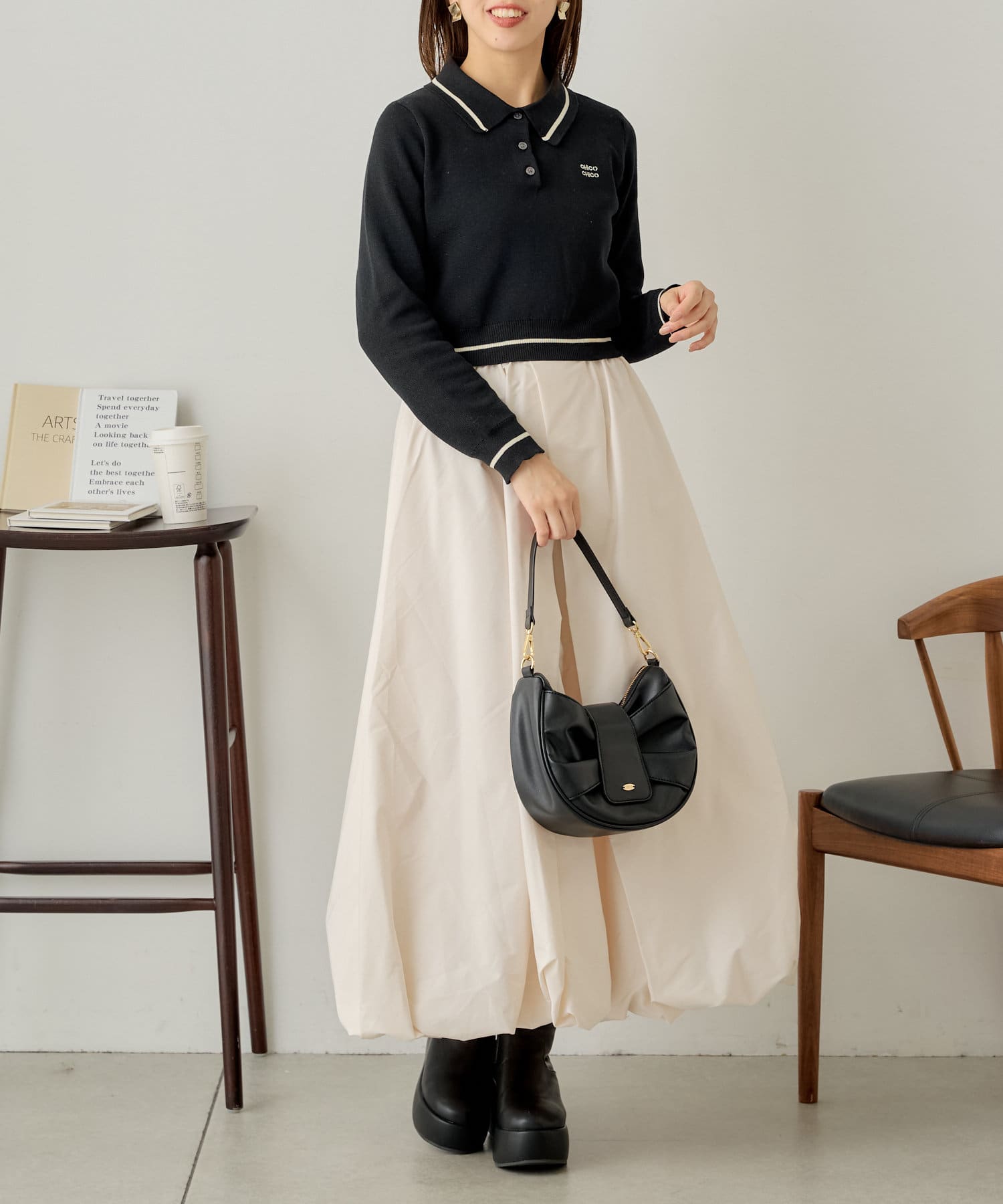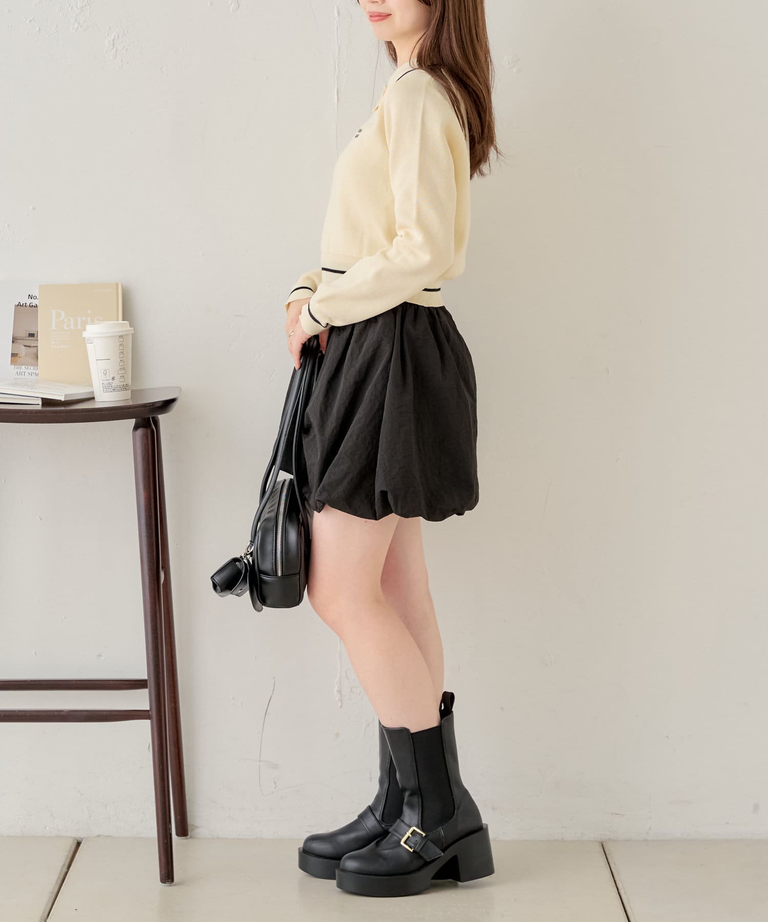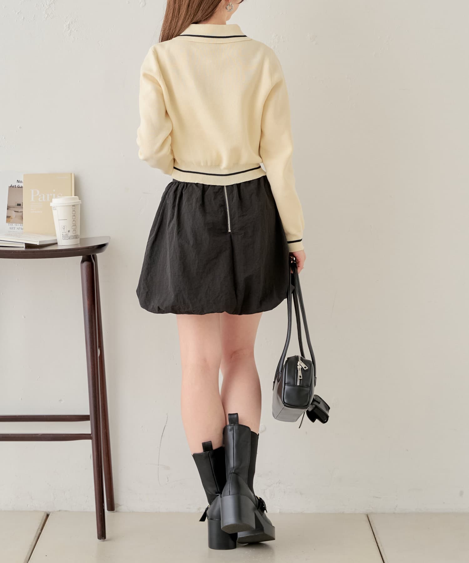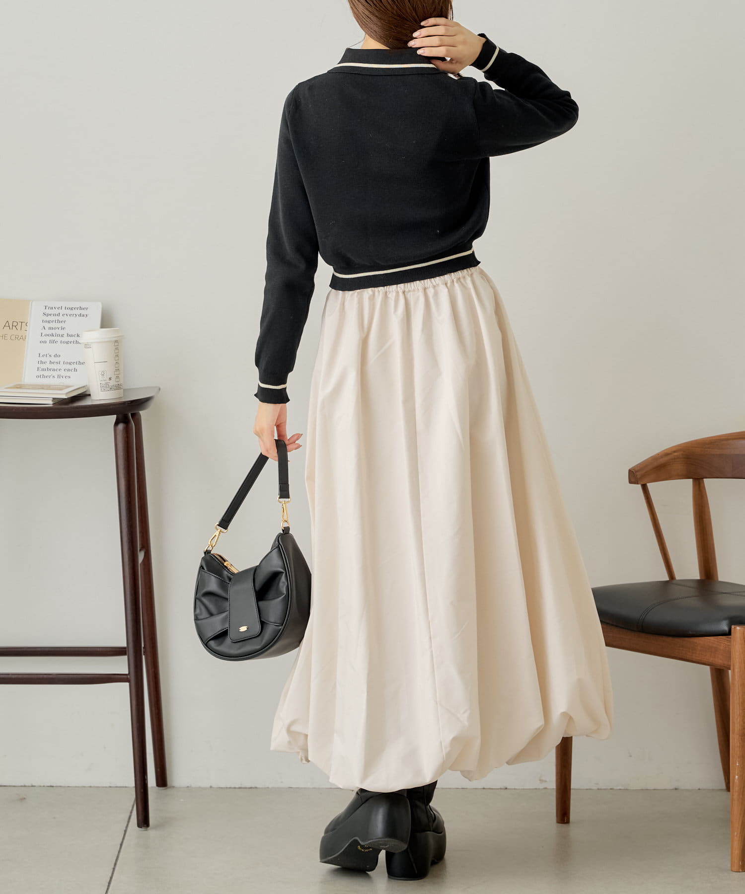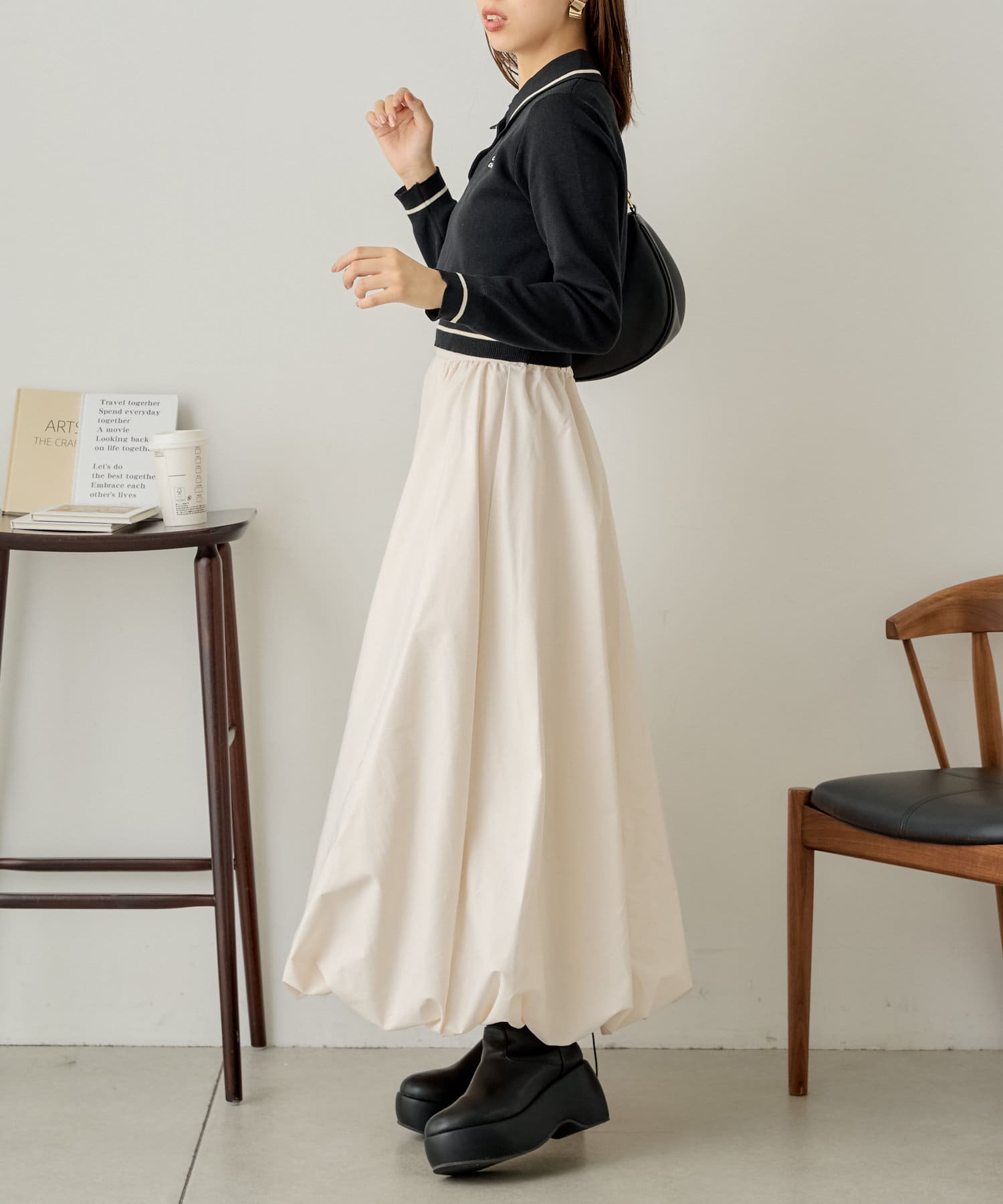 ・バルーンスカートを合わせるとよりトレンディな印象に仕上がります。