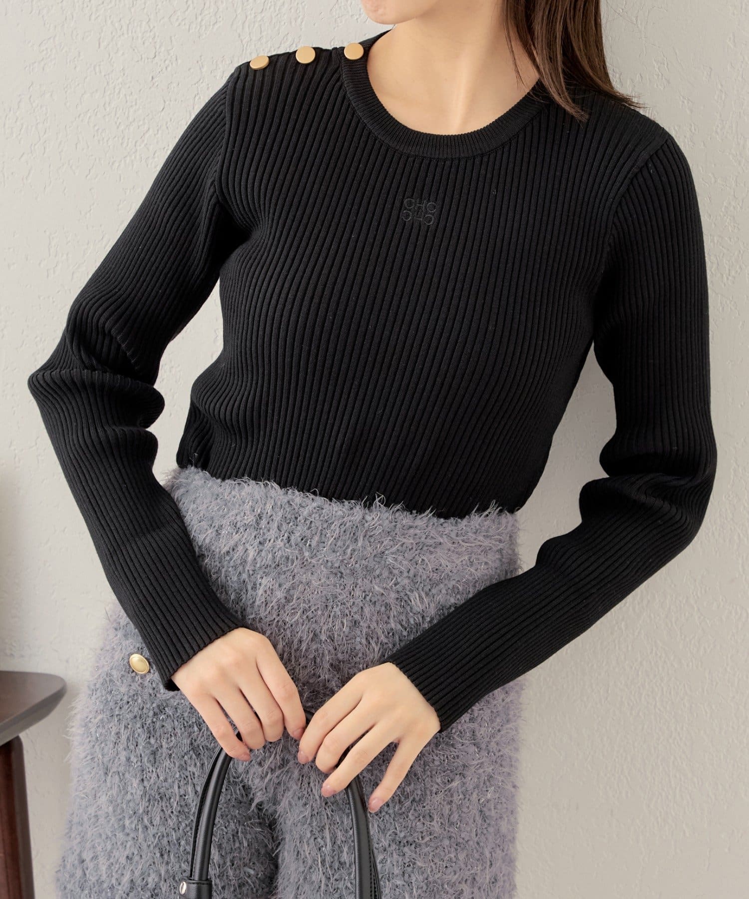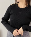 • OUTLET(アウトレット) 【Chico】肩ボタン胸刺繍リブニット
