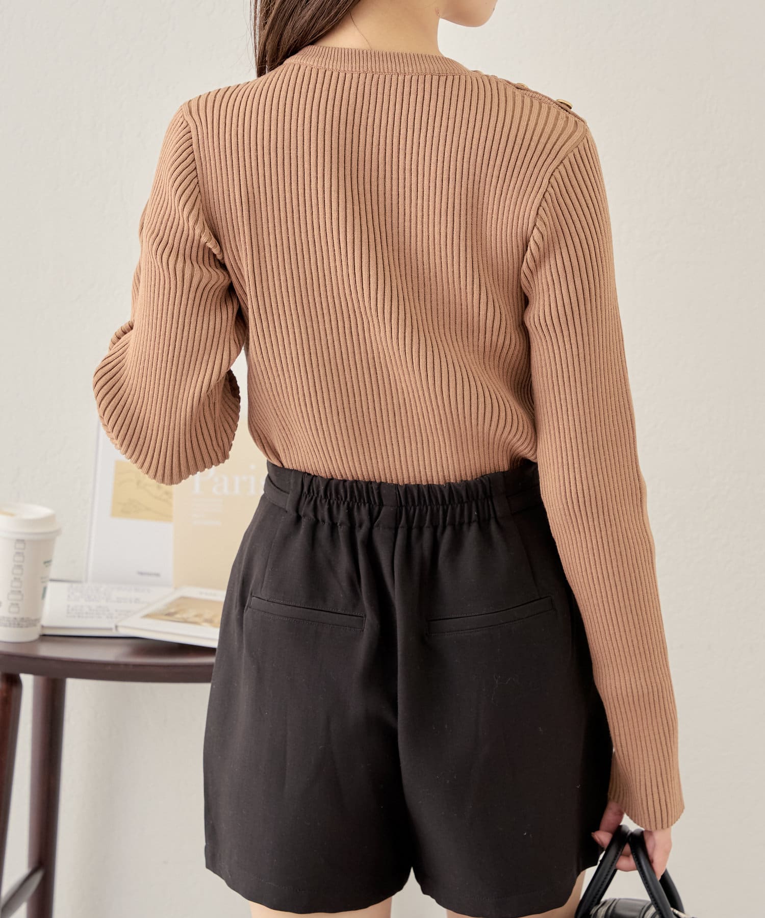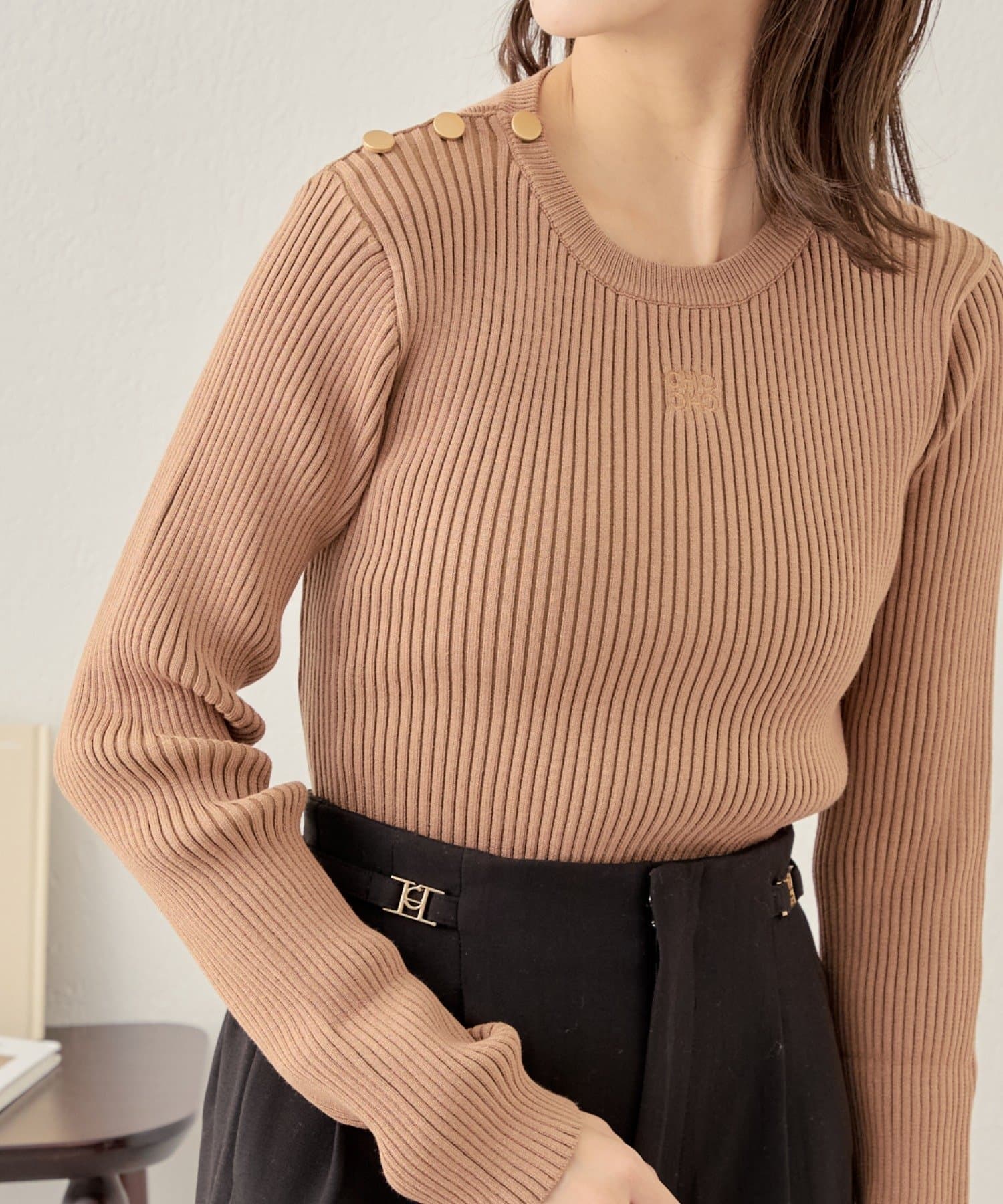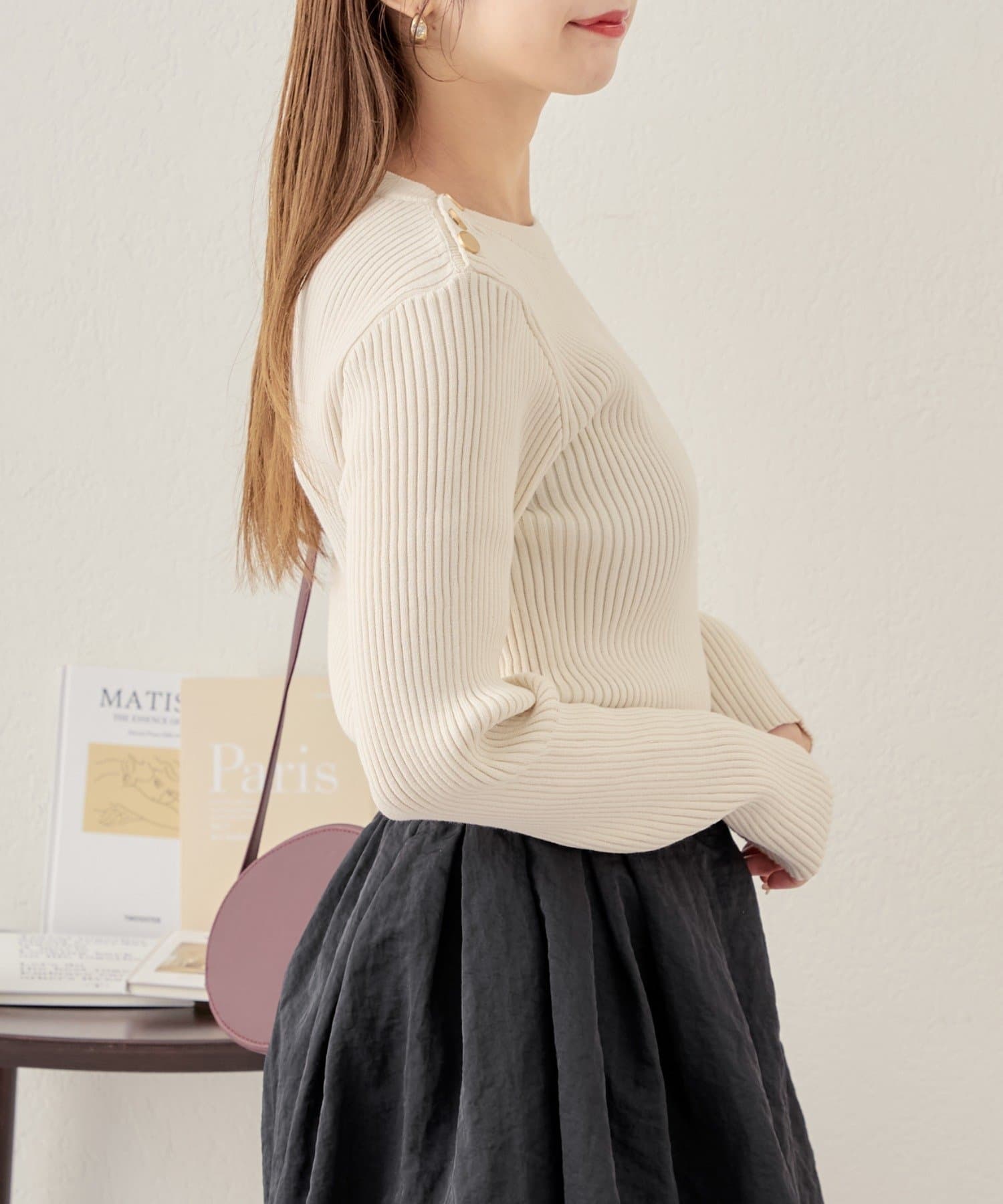 肩ボタンが可愛い着回し抜群のリブニット登場♡