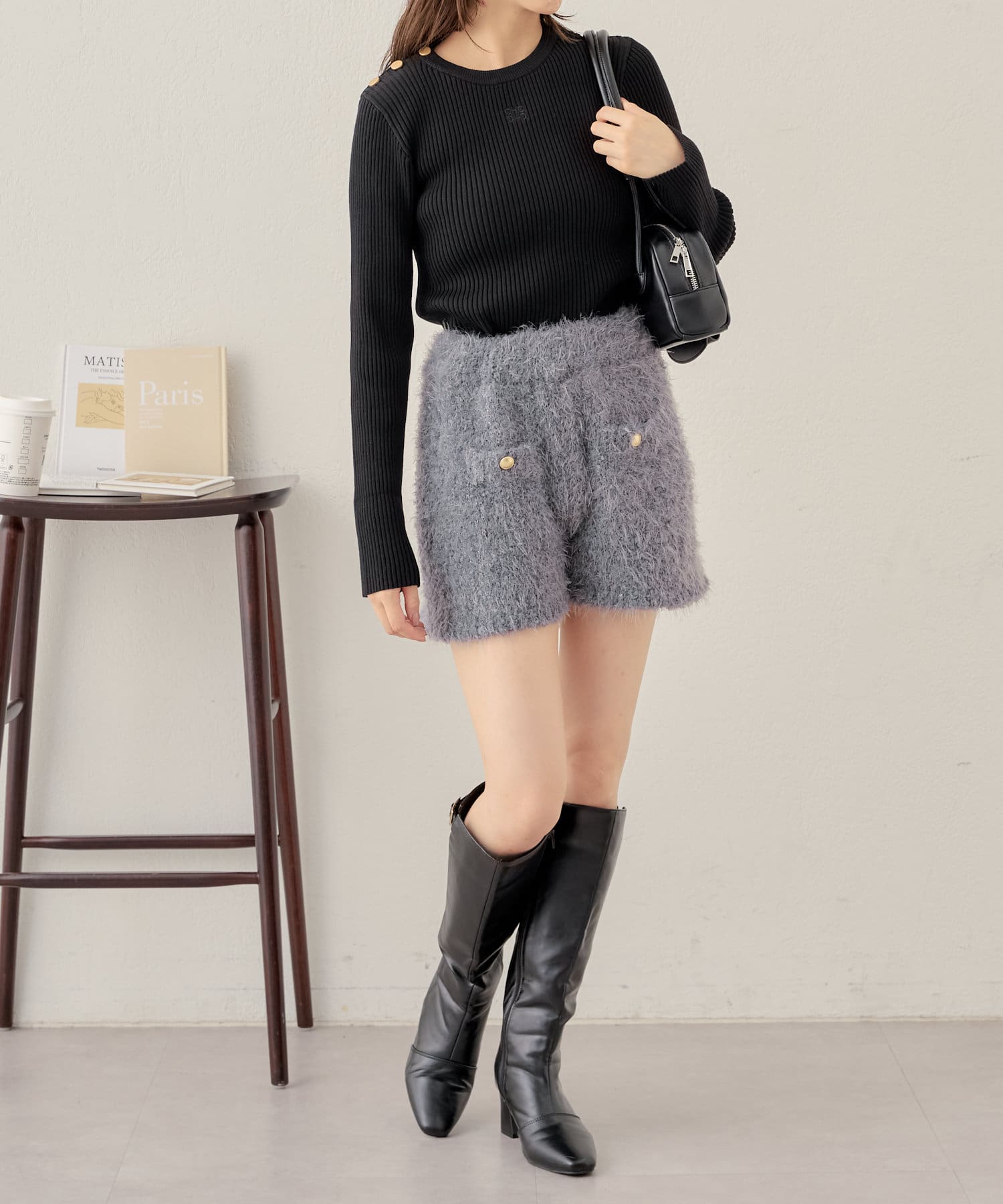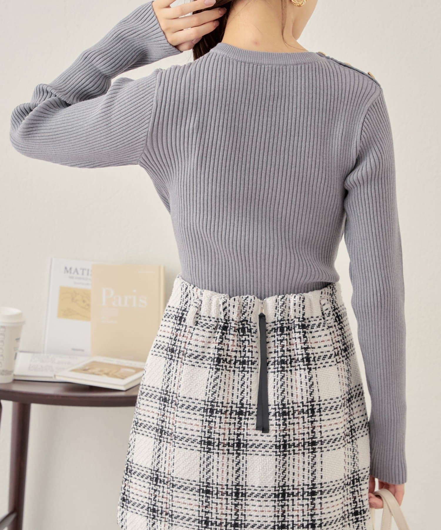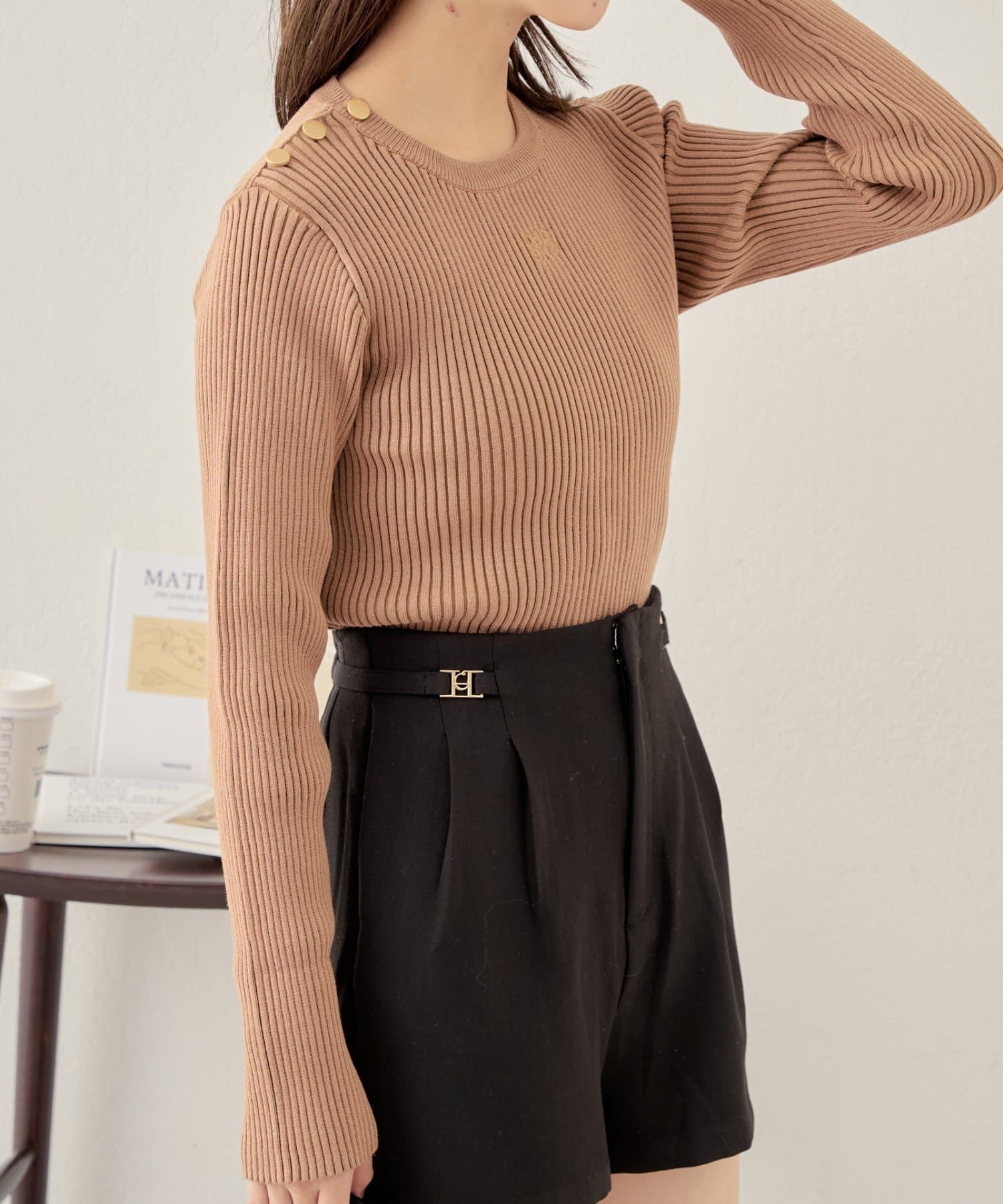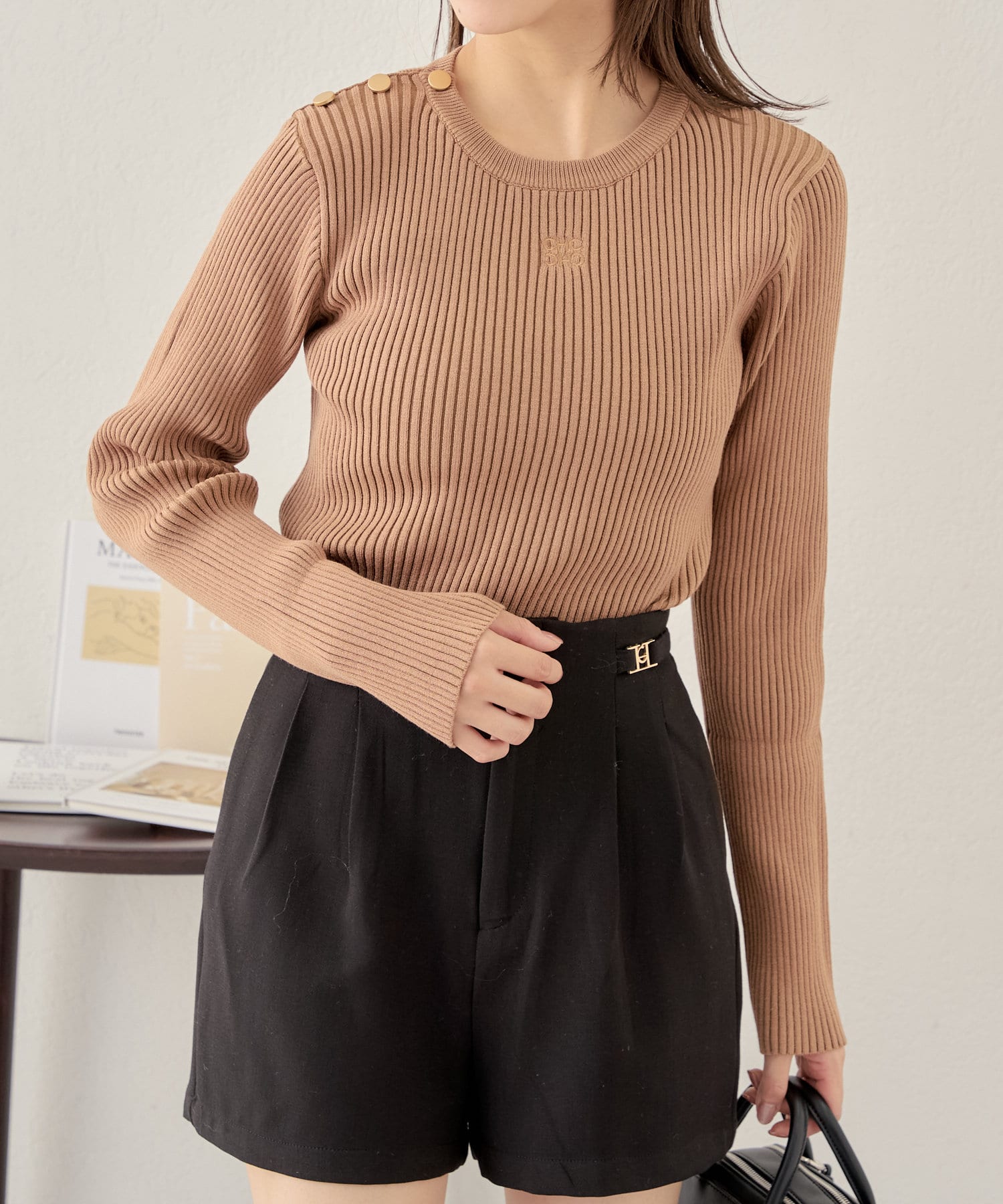肩ボタンが可愛い着回し抜群のリブニット登場♡