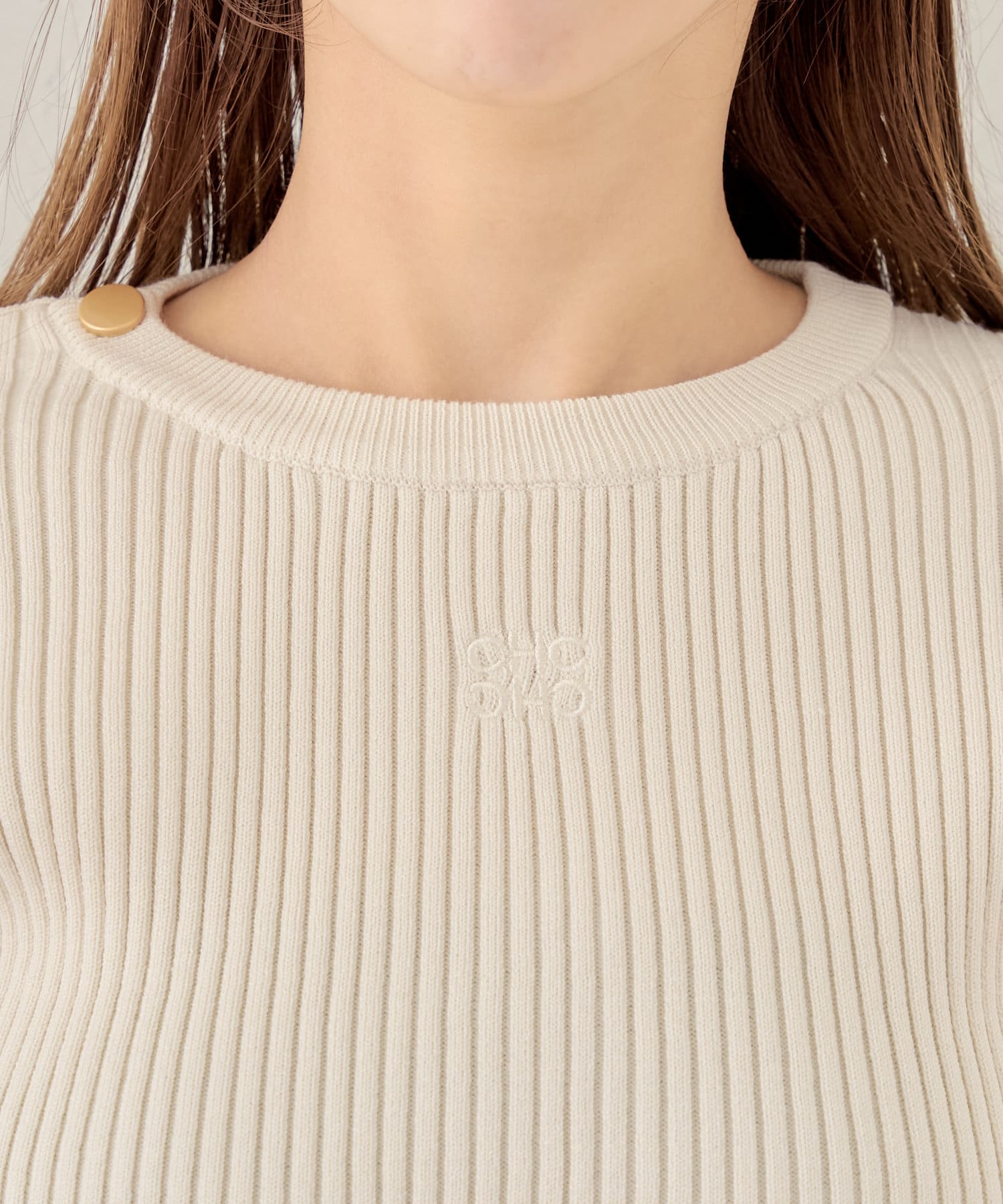 OUTLET(アウトレット) 【Chico】肩ボタン胸刺繍リブニット