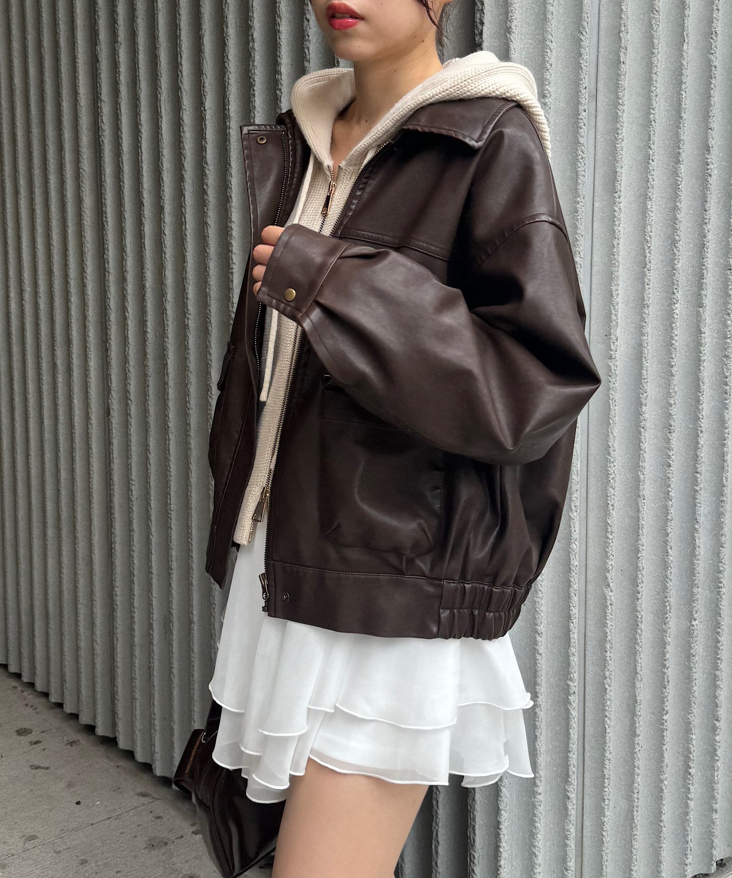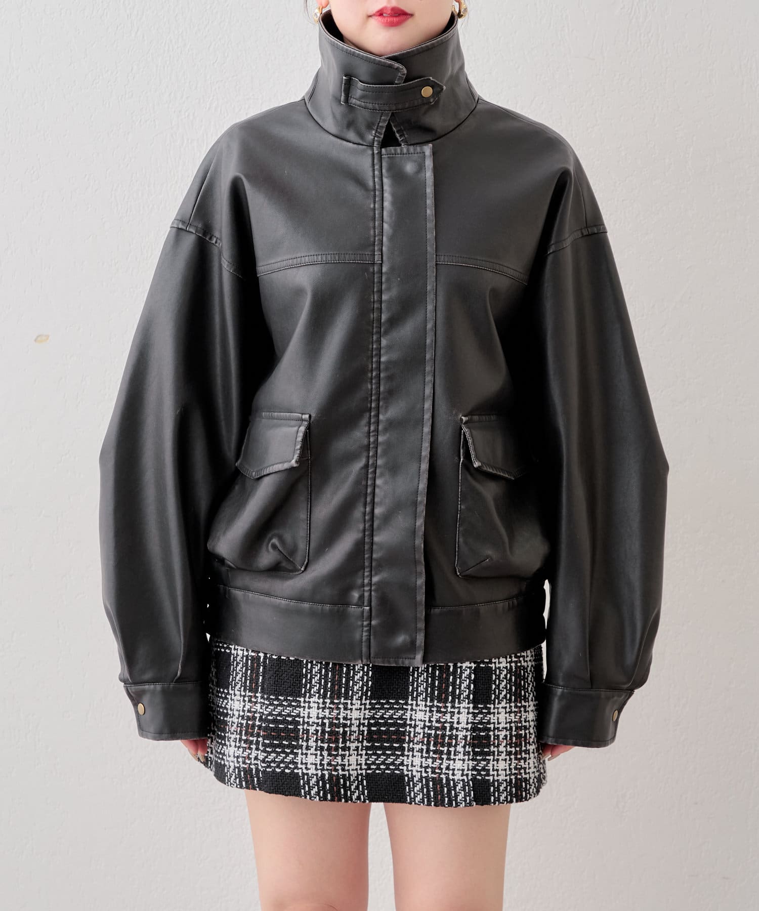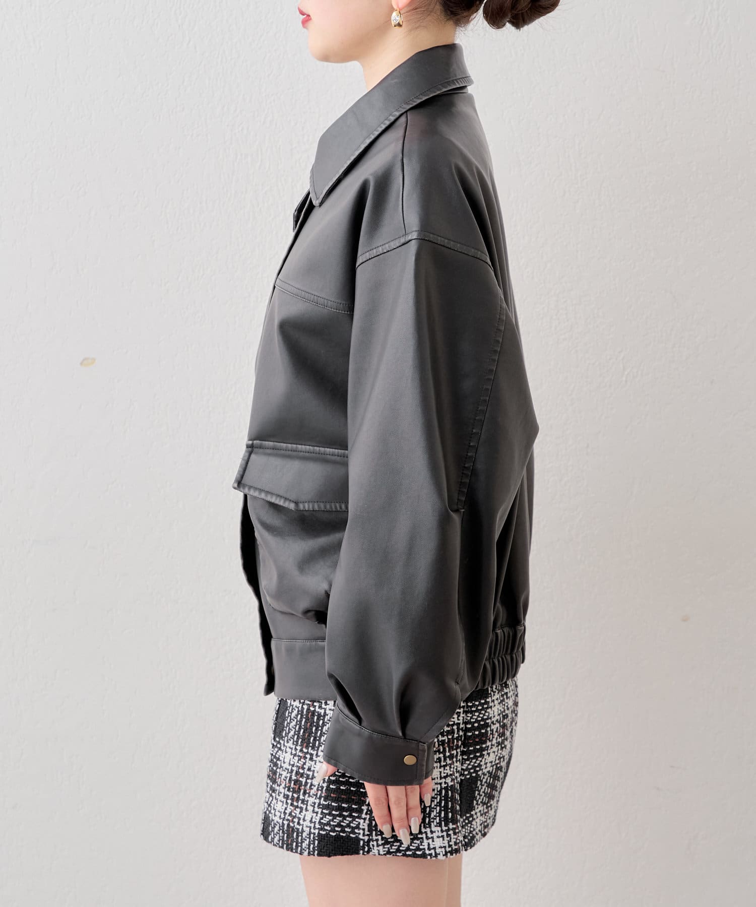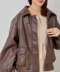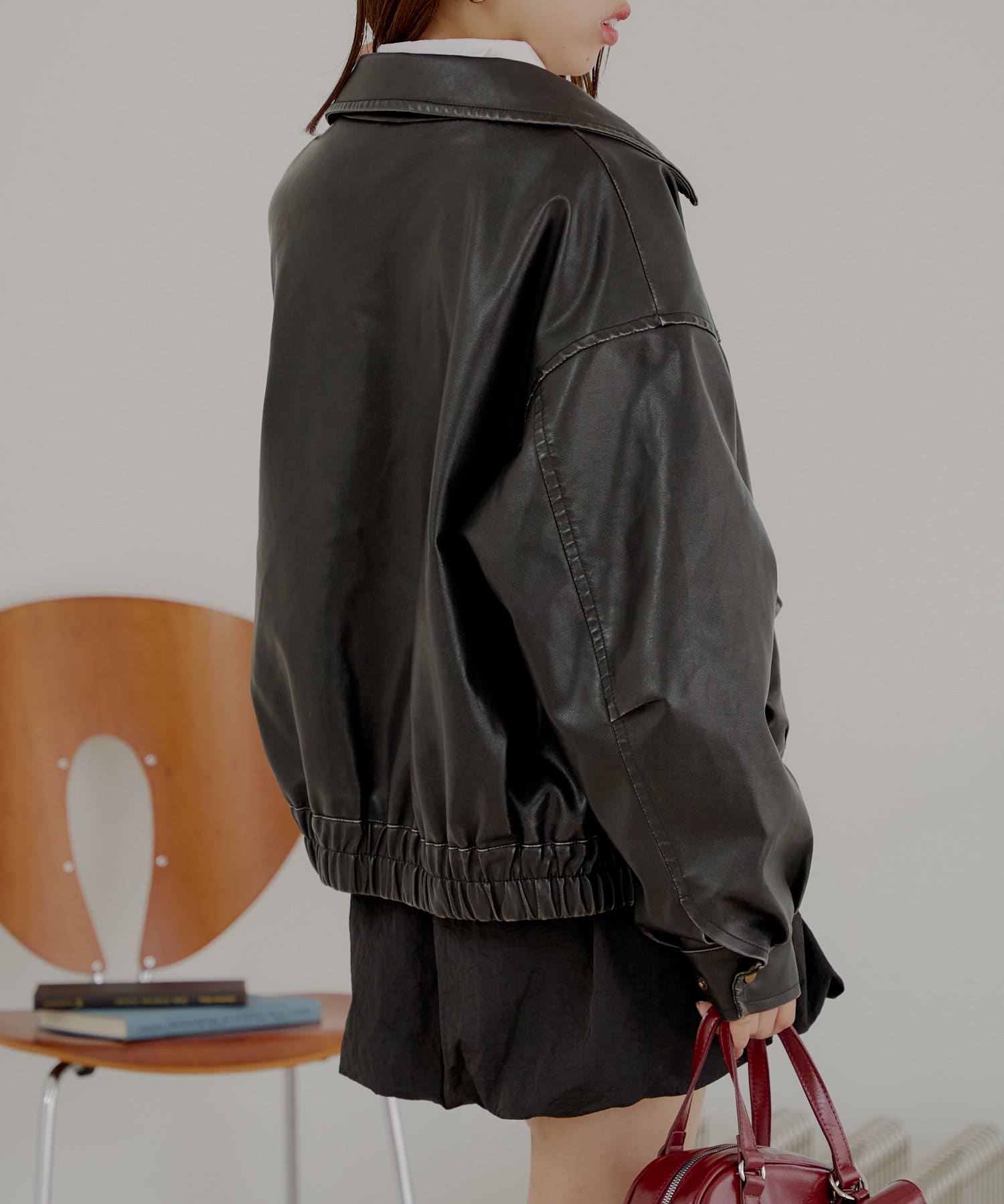 【SNS総再生回数300万回突破!】フェイクレザーミドルルーズジャケット