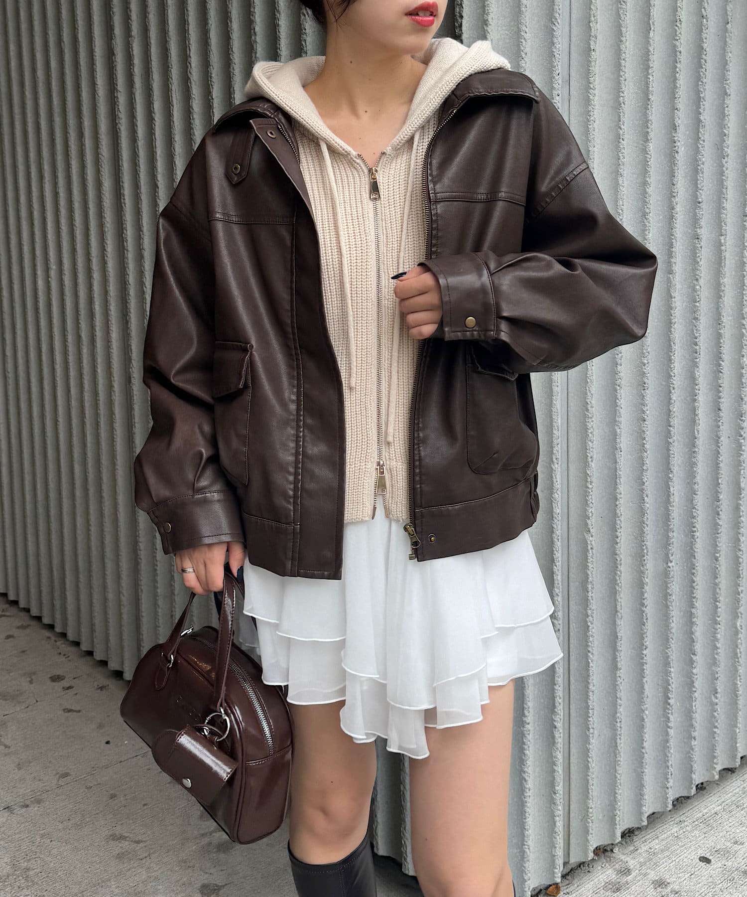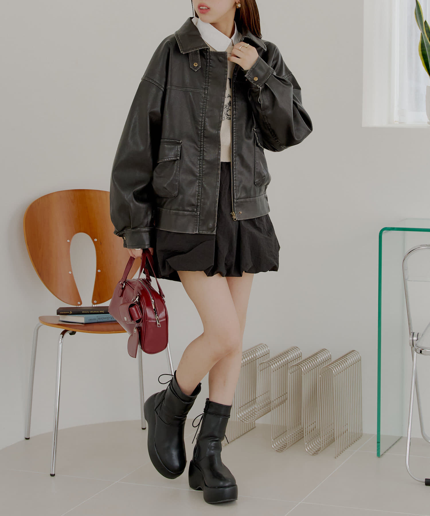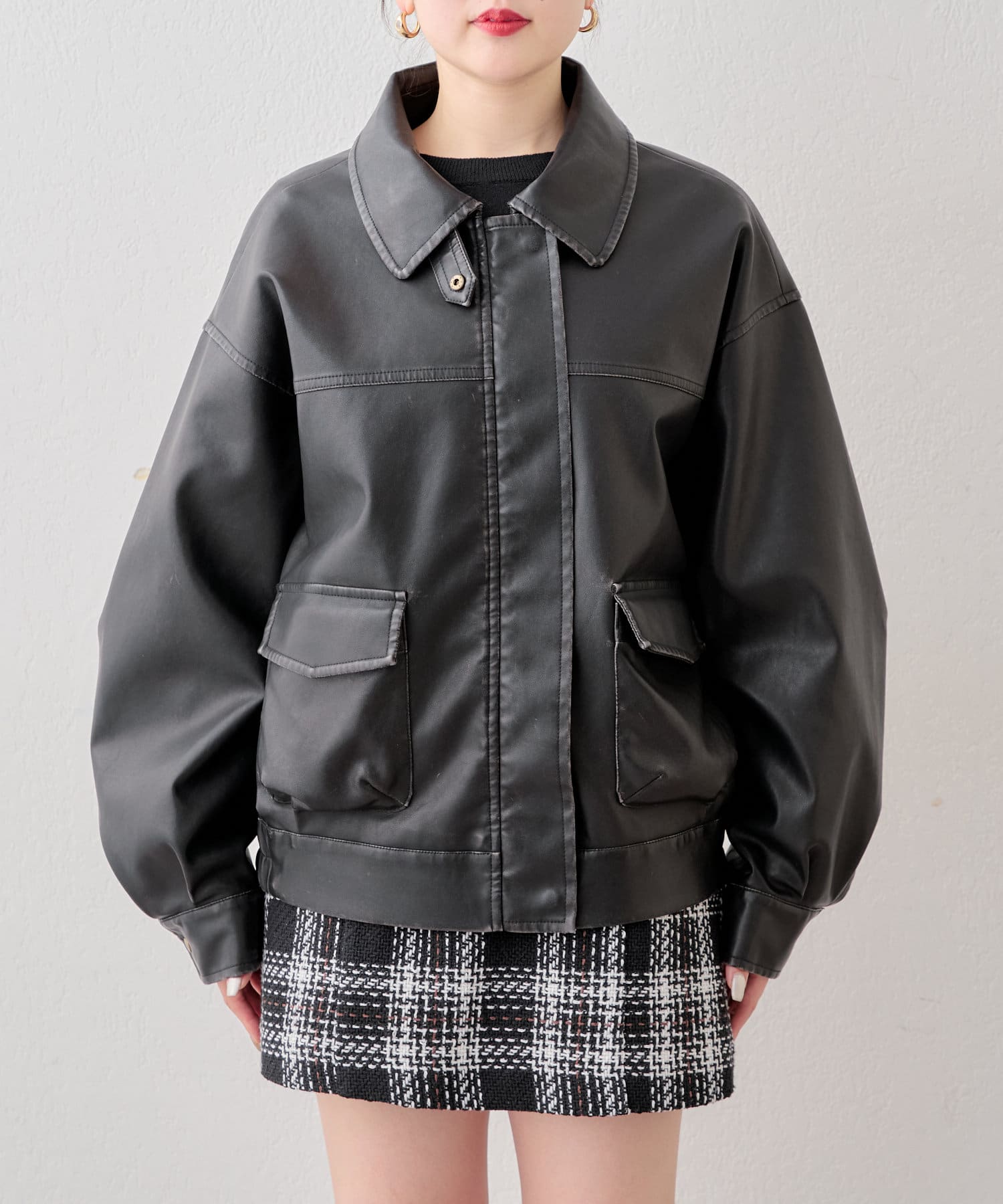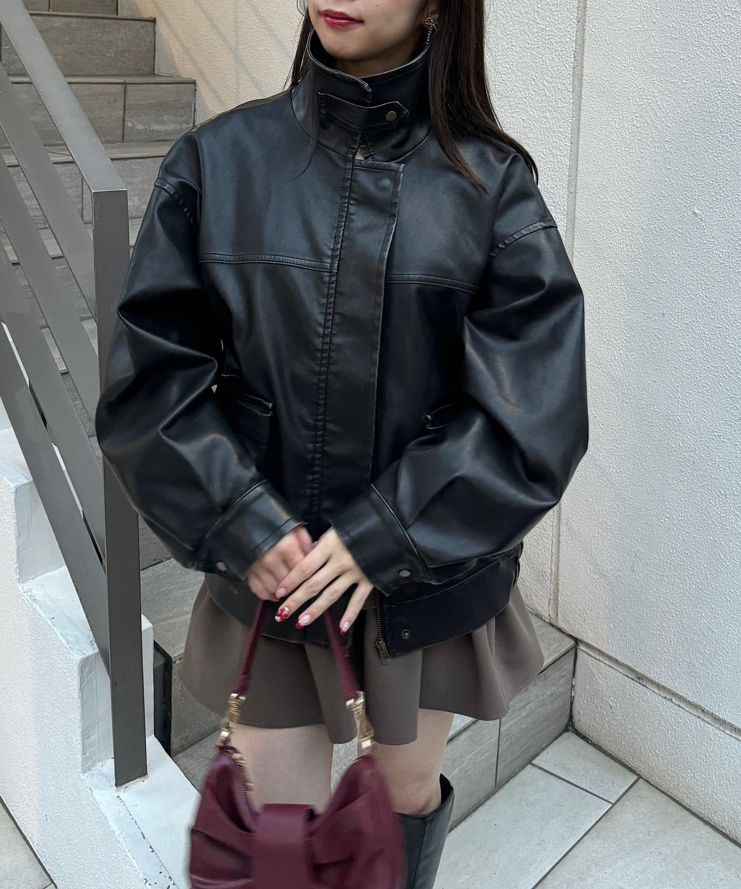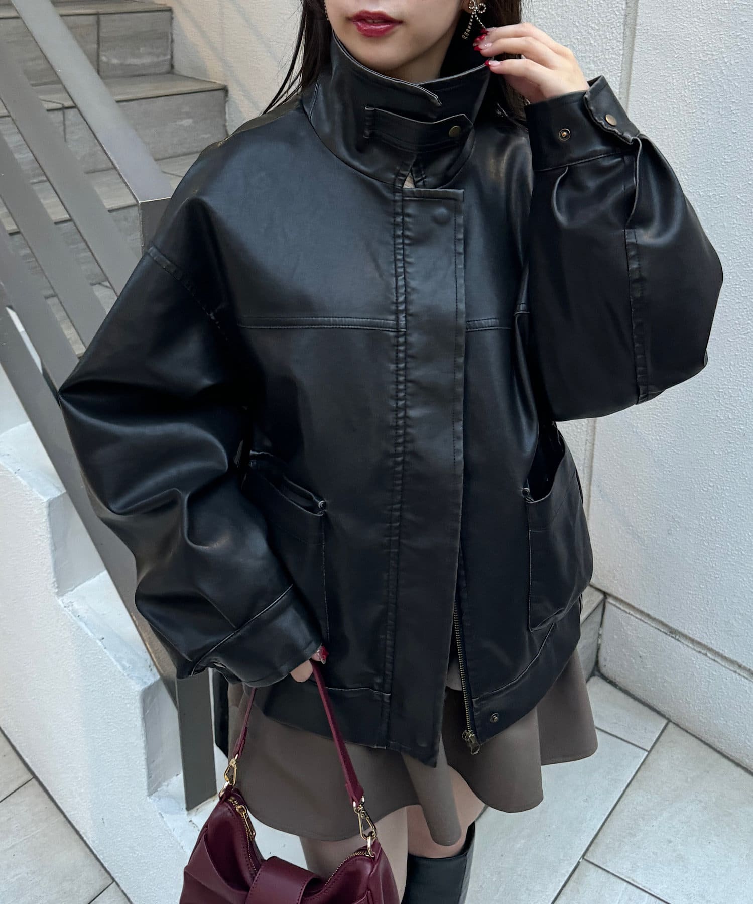 オーバーサイズが可愛いレザージャケット♡