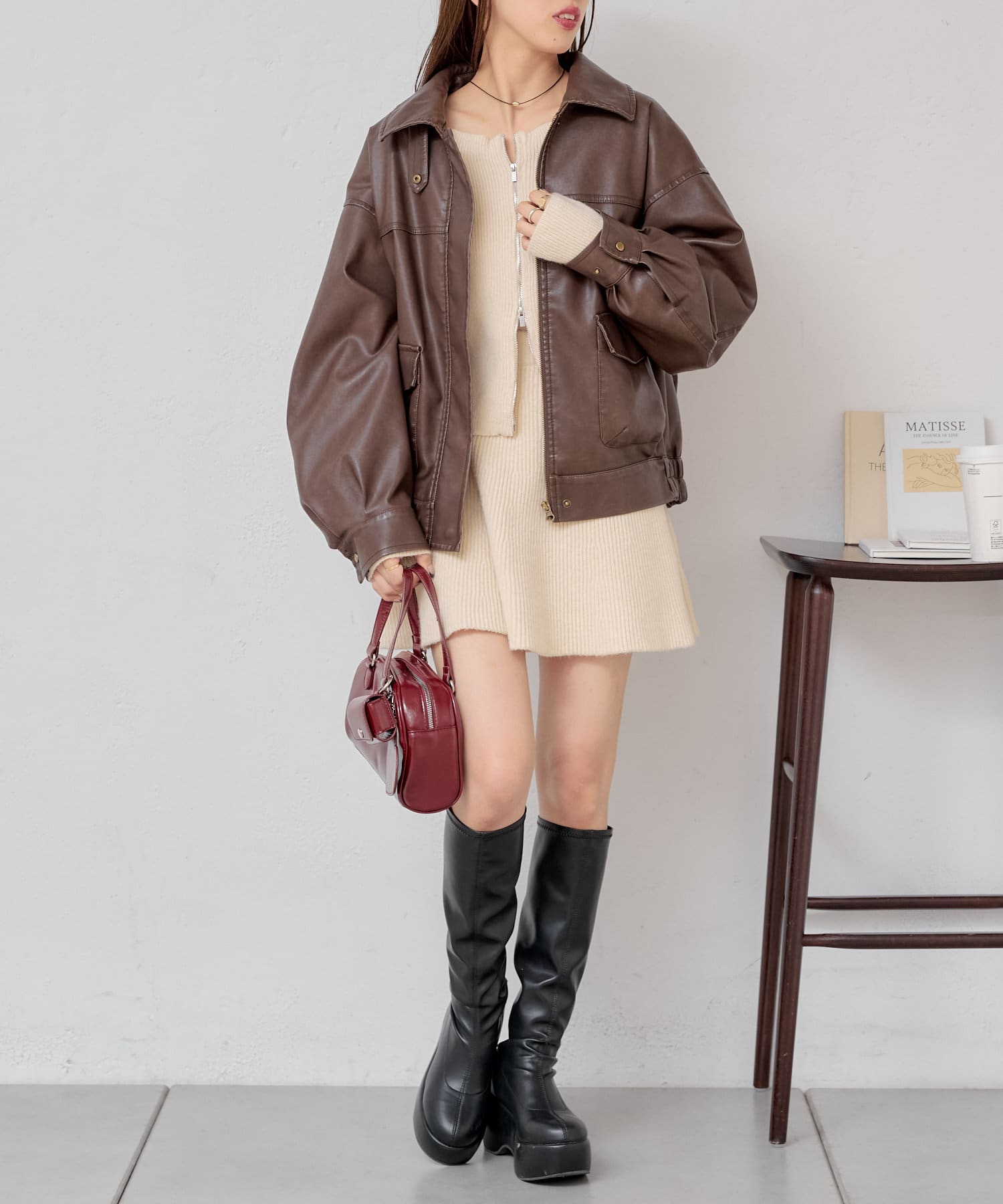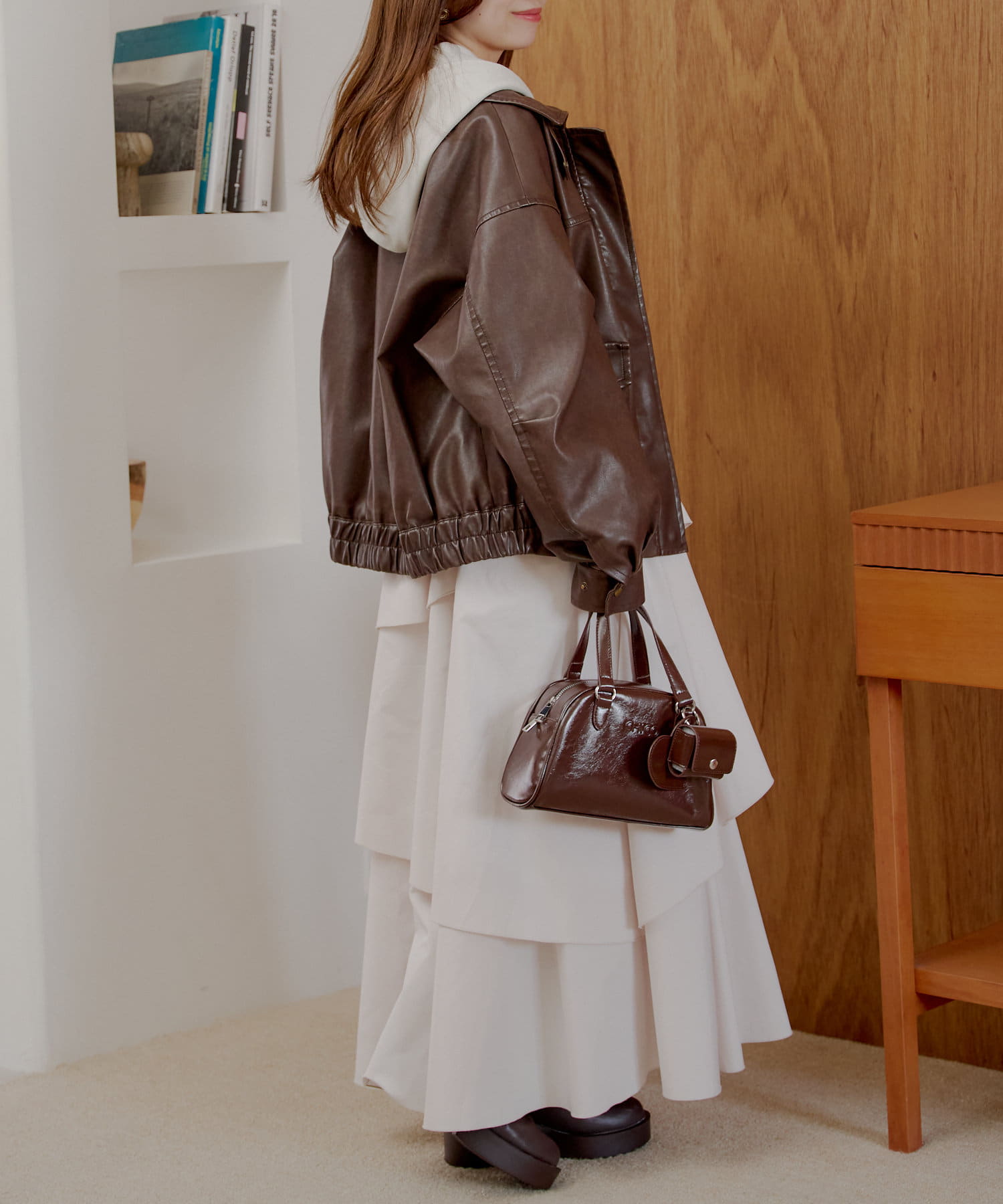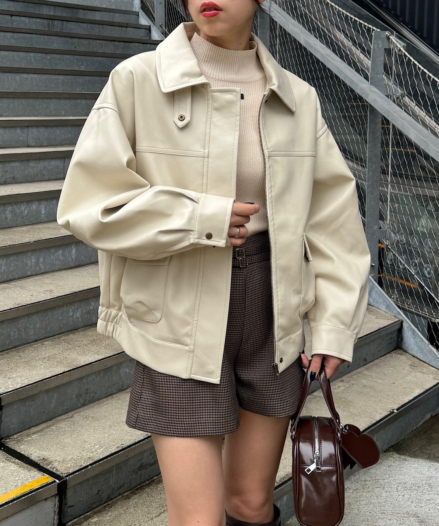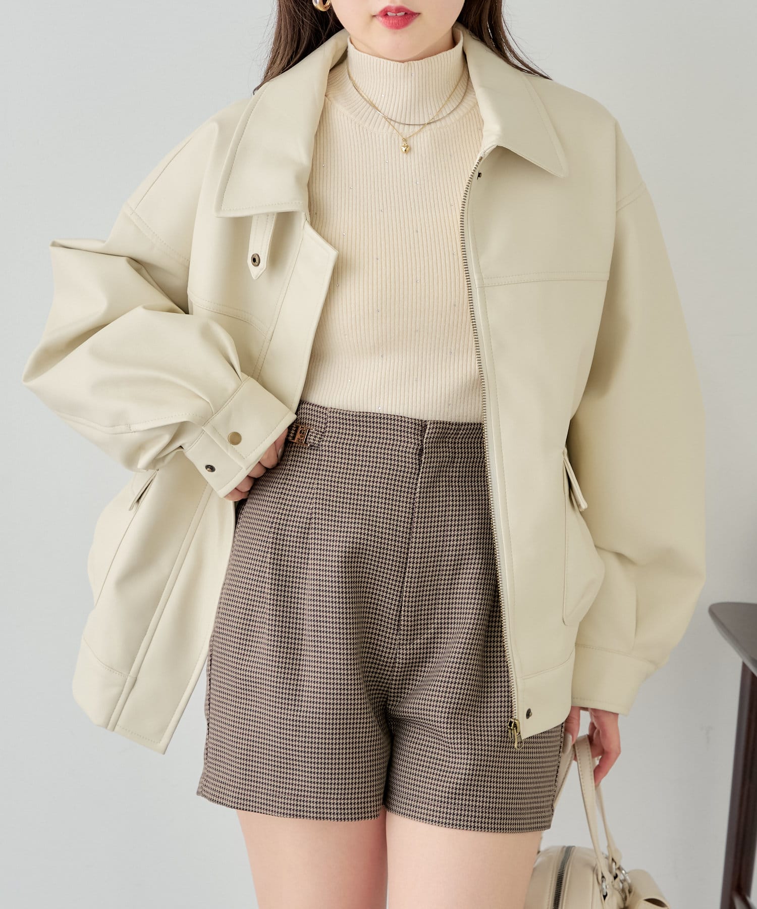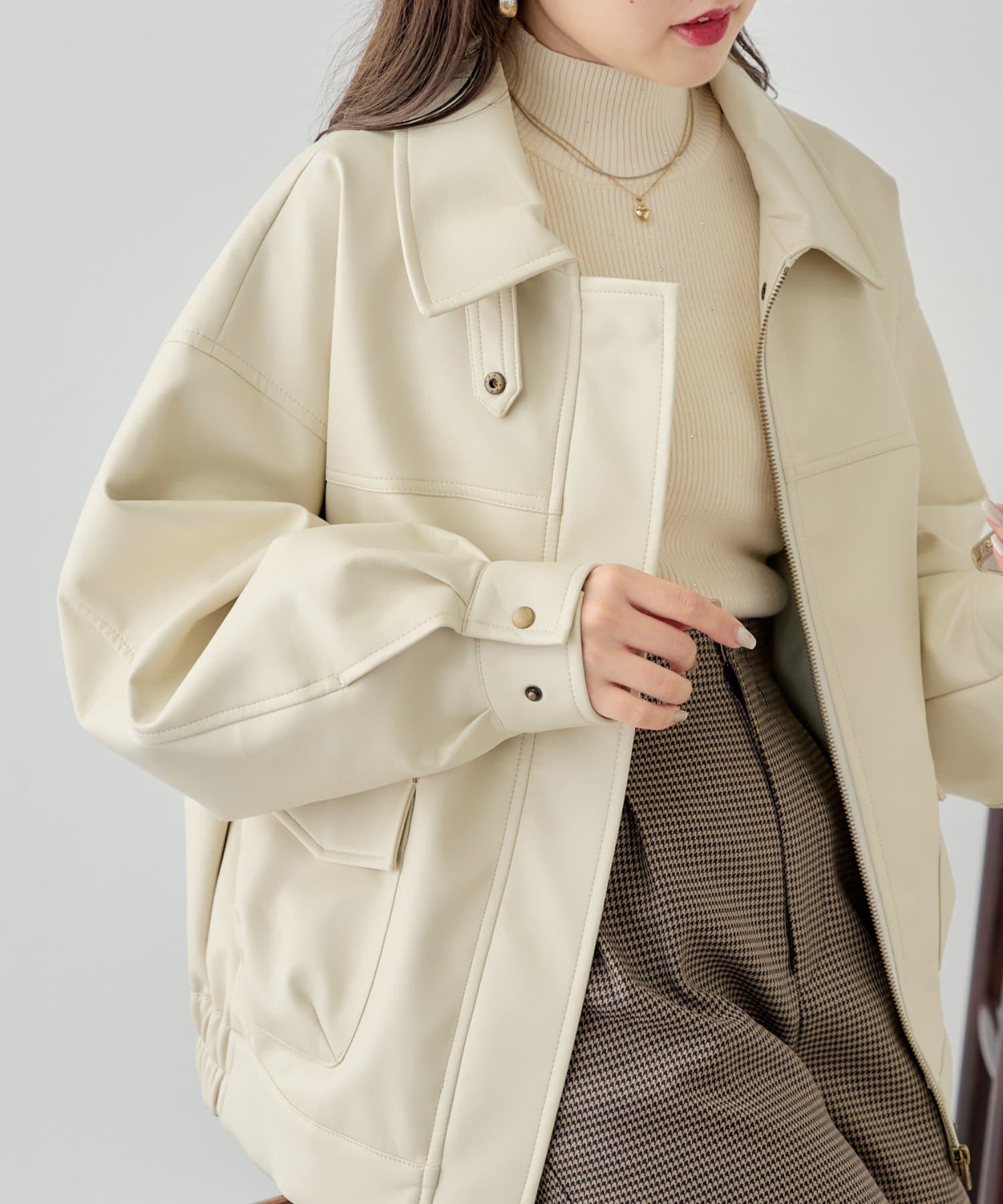 ・柔らかいフェイクレザーでハード過ぎず女性らしく着ていただけます♡