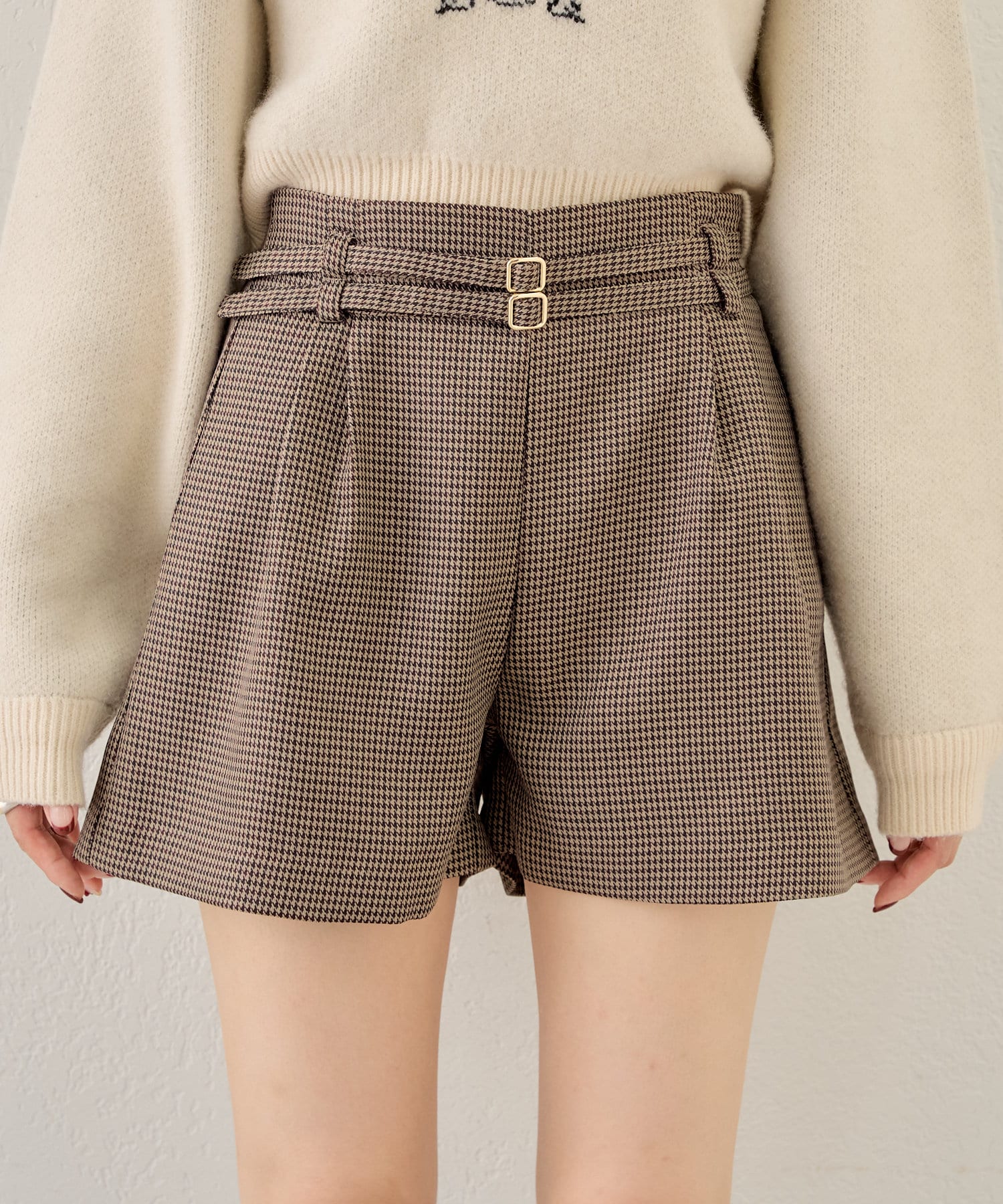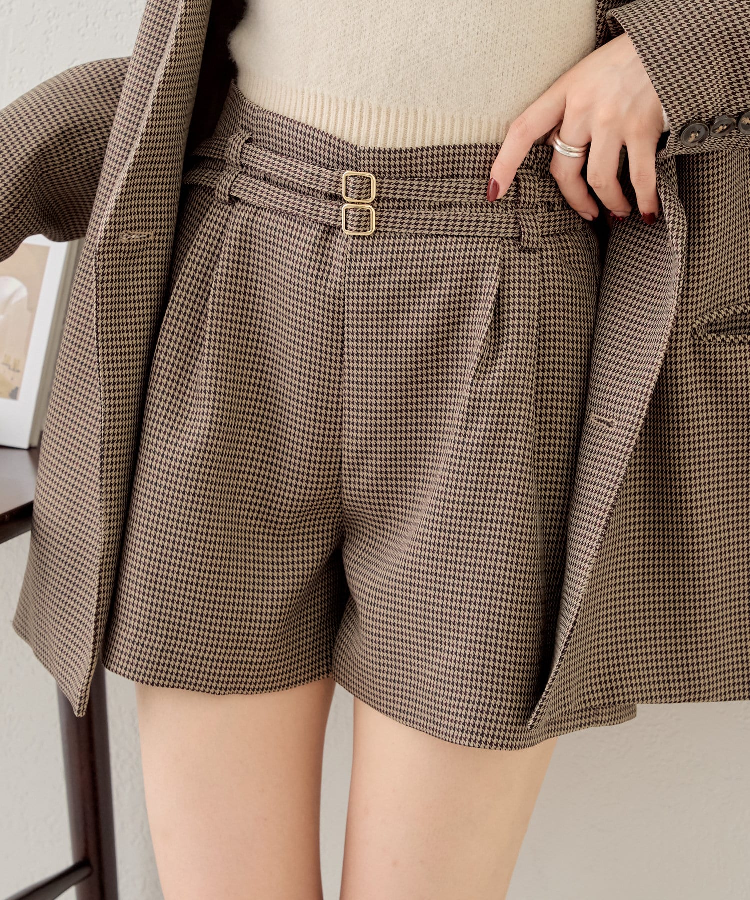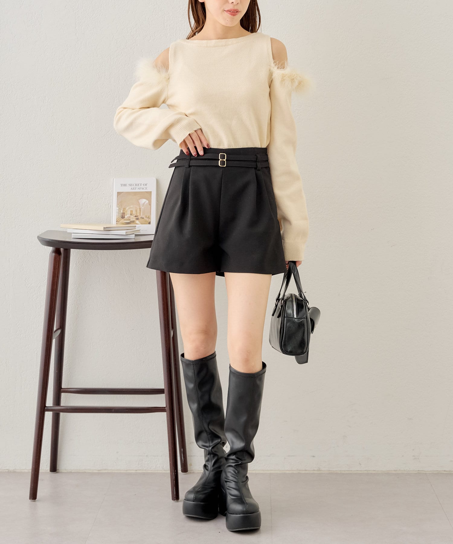 【セットアップ対応】ダブルベルトキュロットショートパンツ