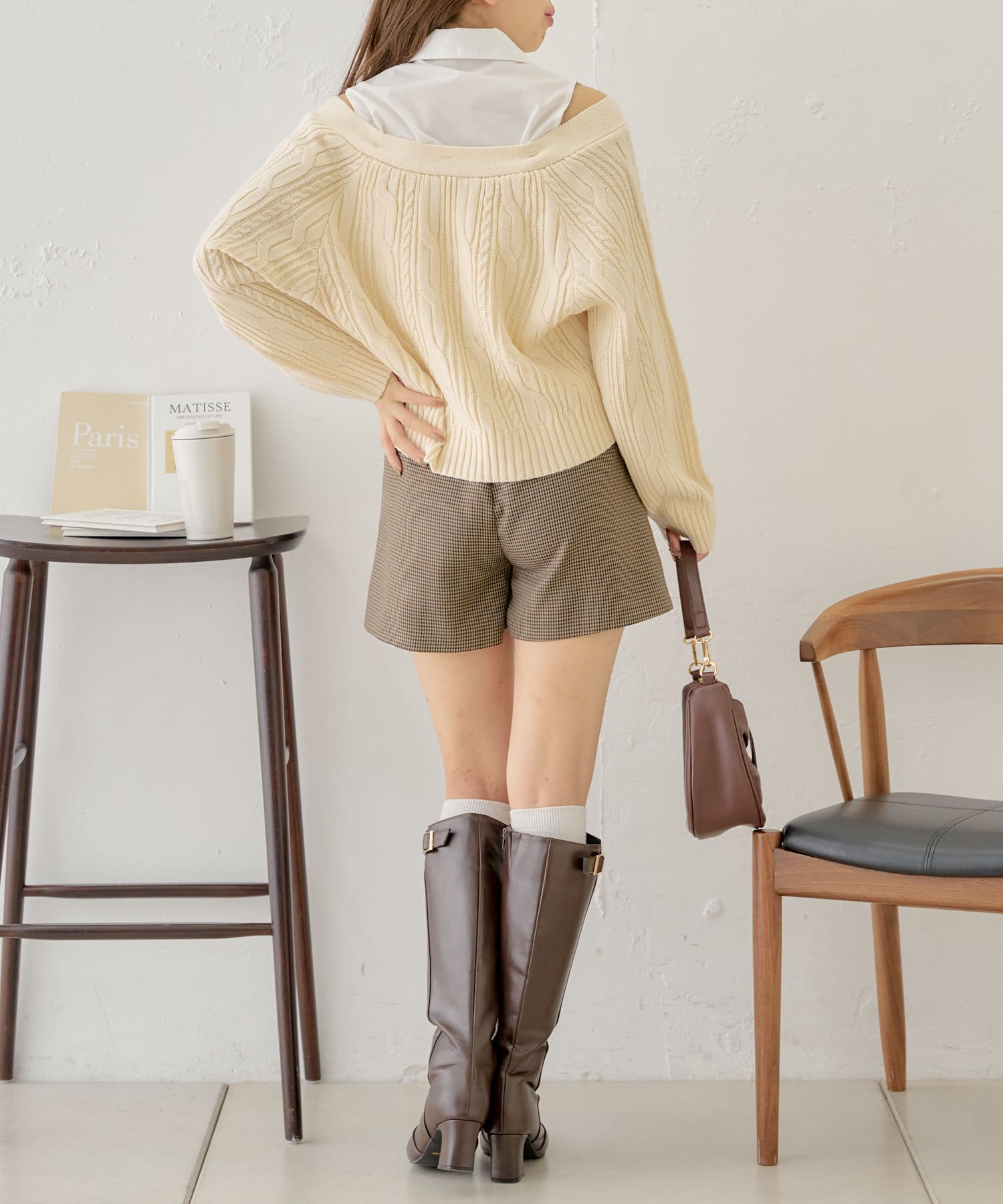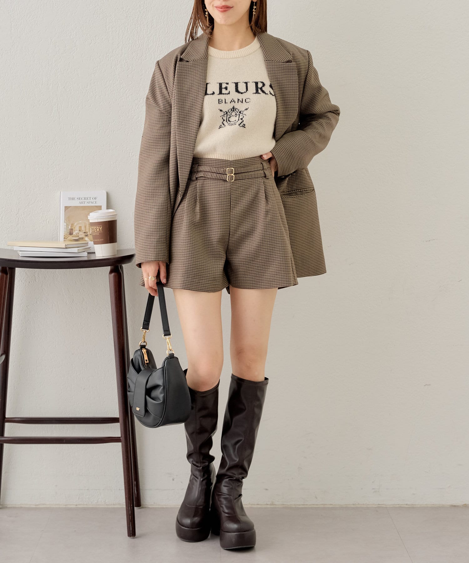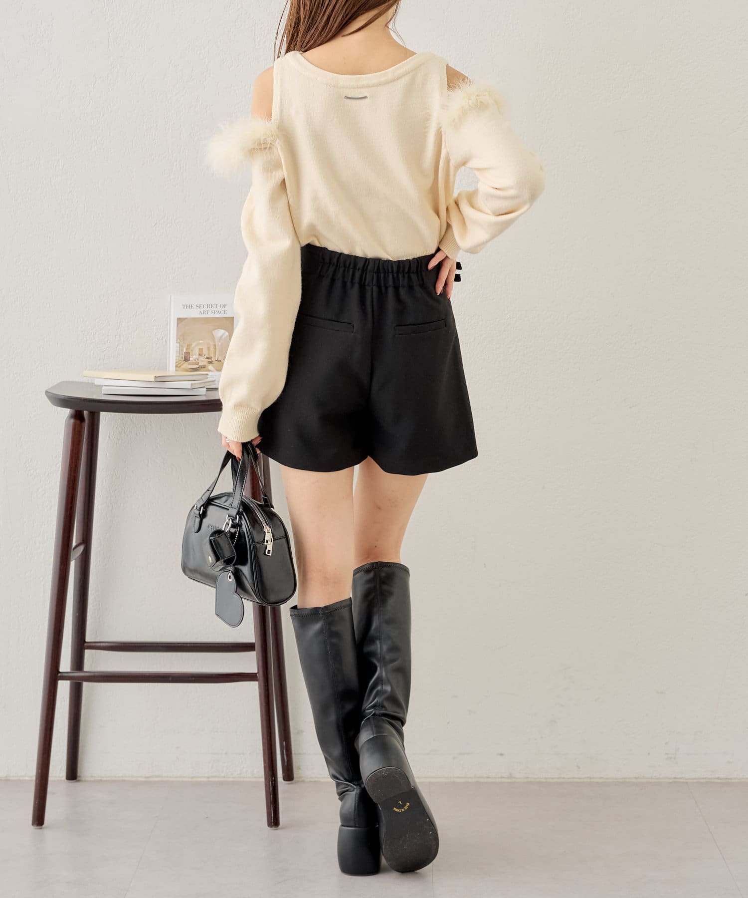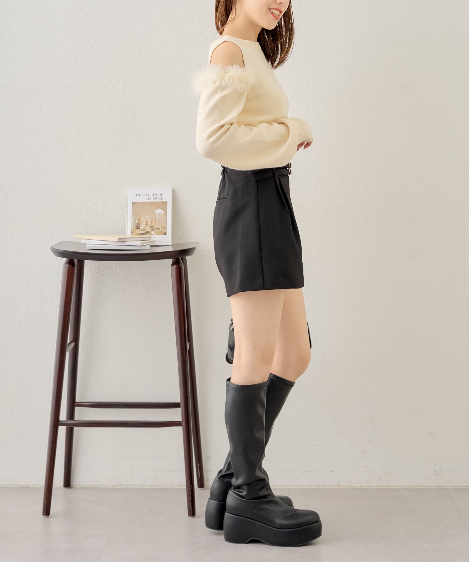 【セットアップ対応】ダブルベルトキュロットショートパンツ