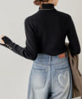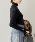 袖ボタンタートルラメニット