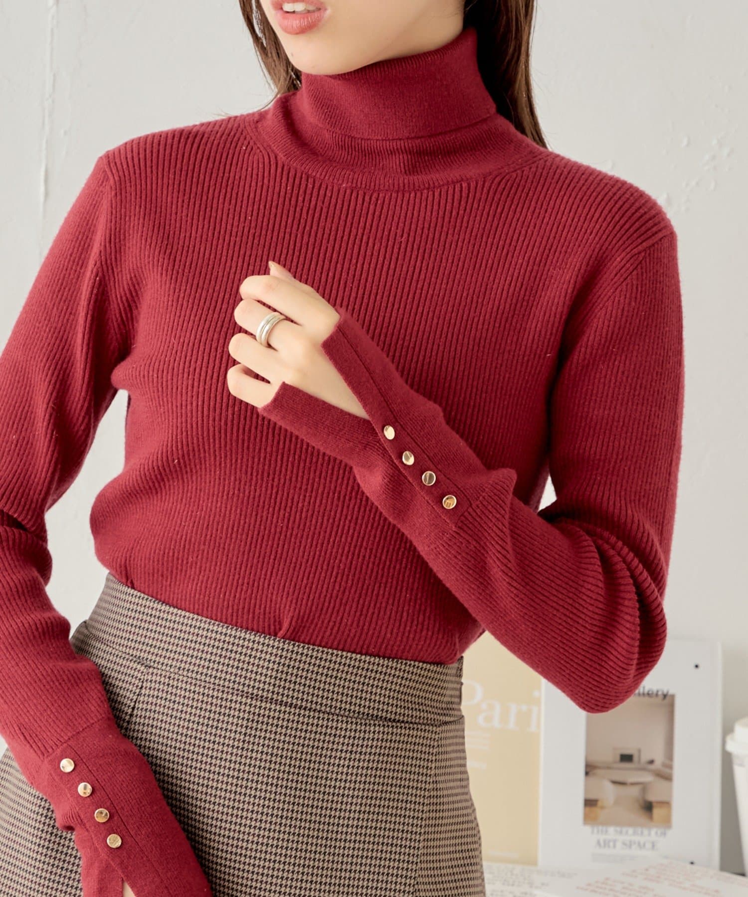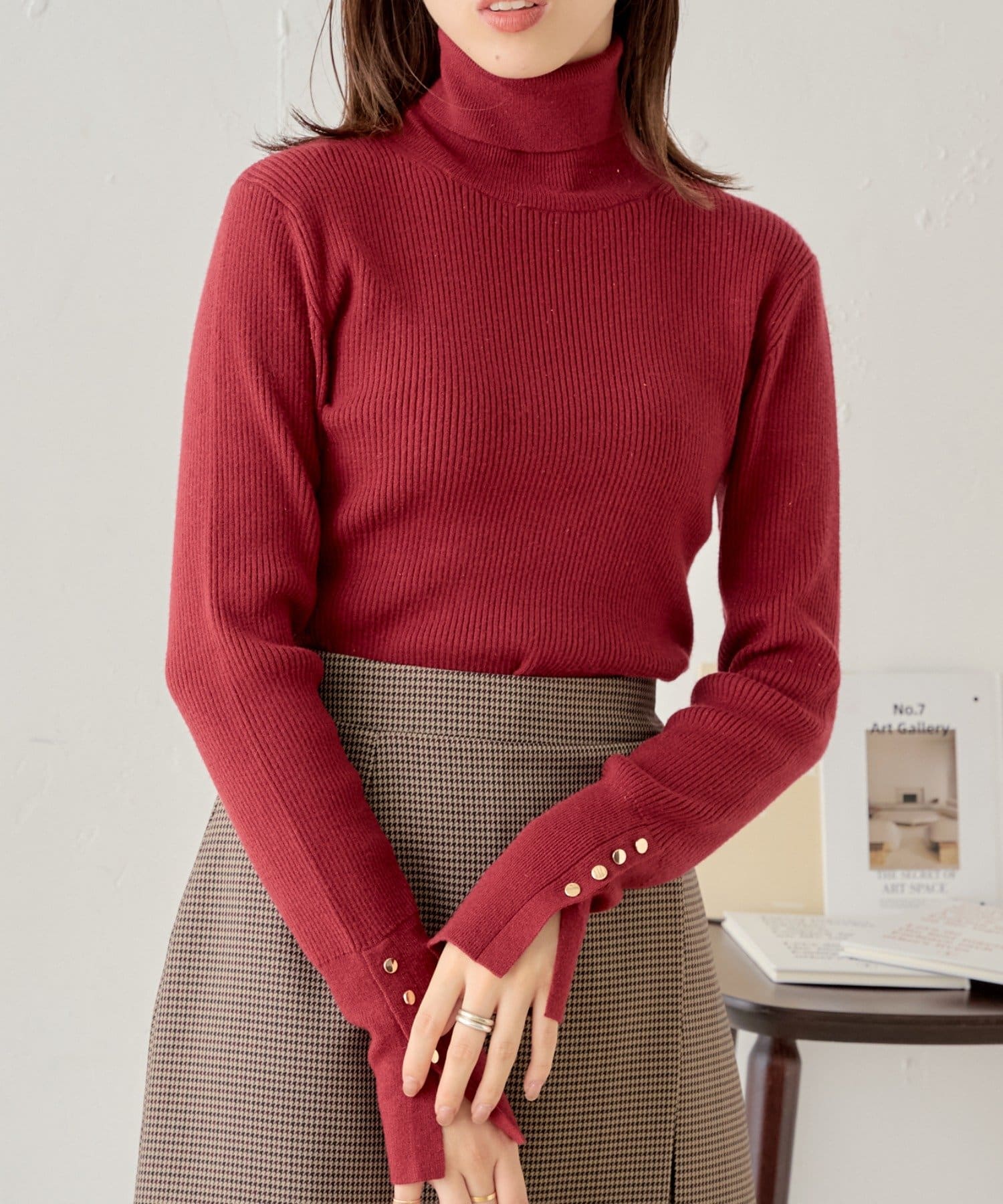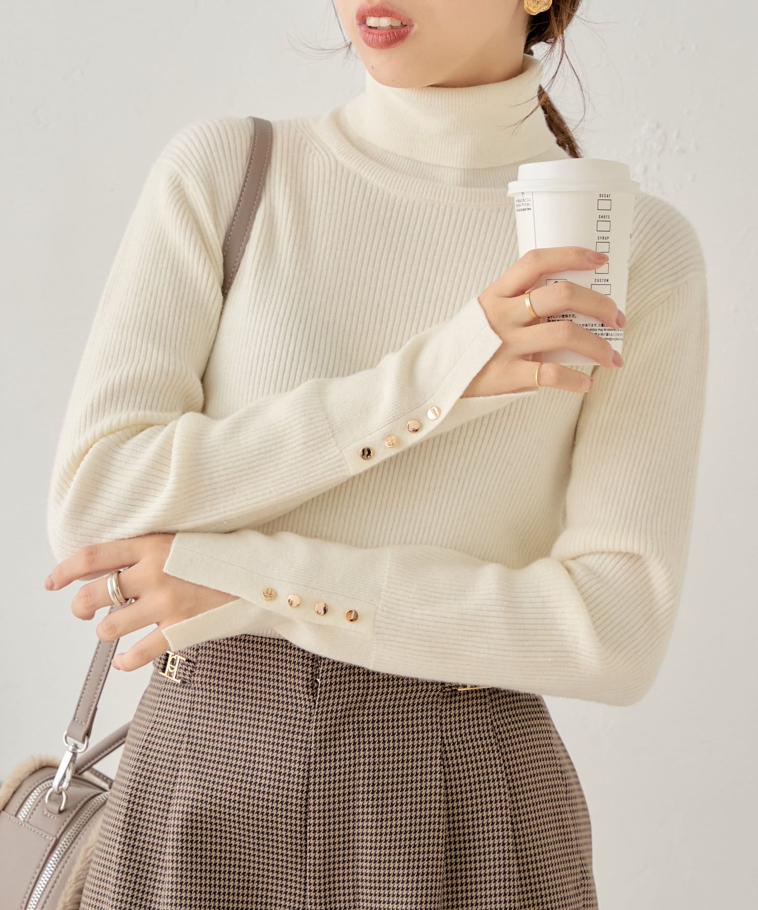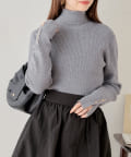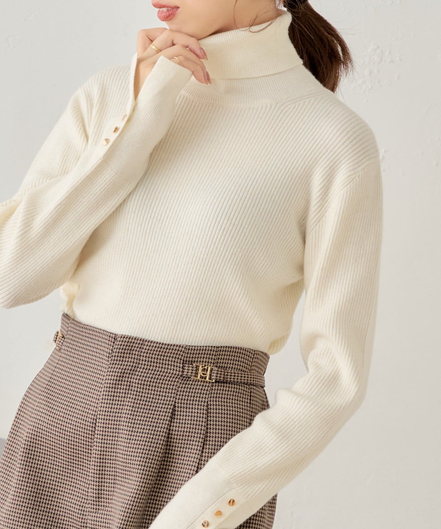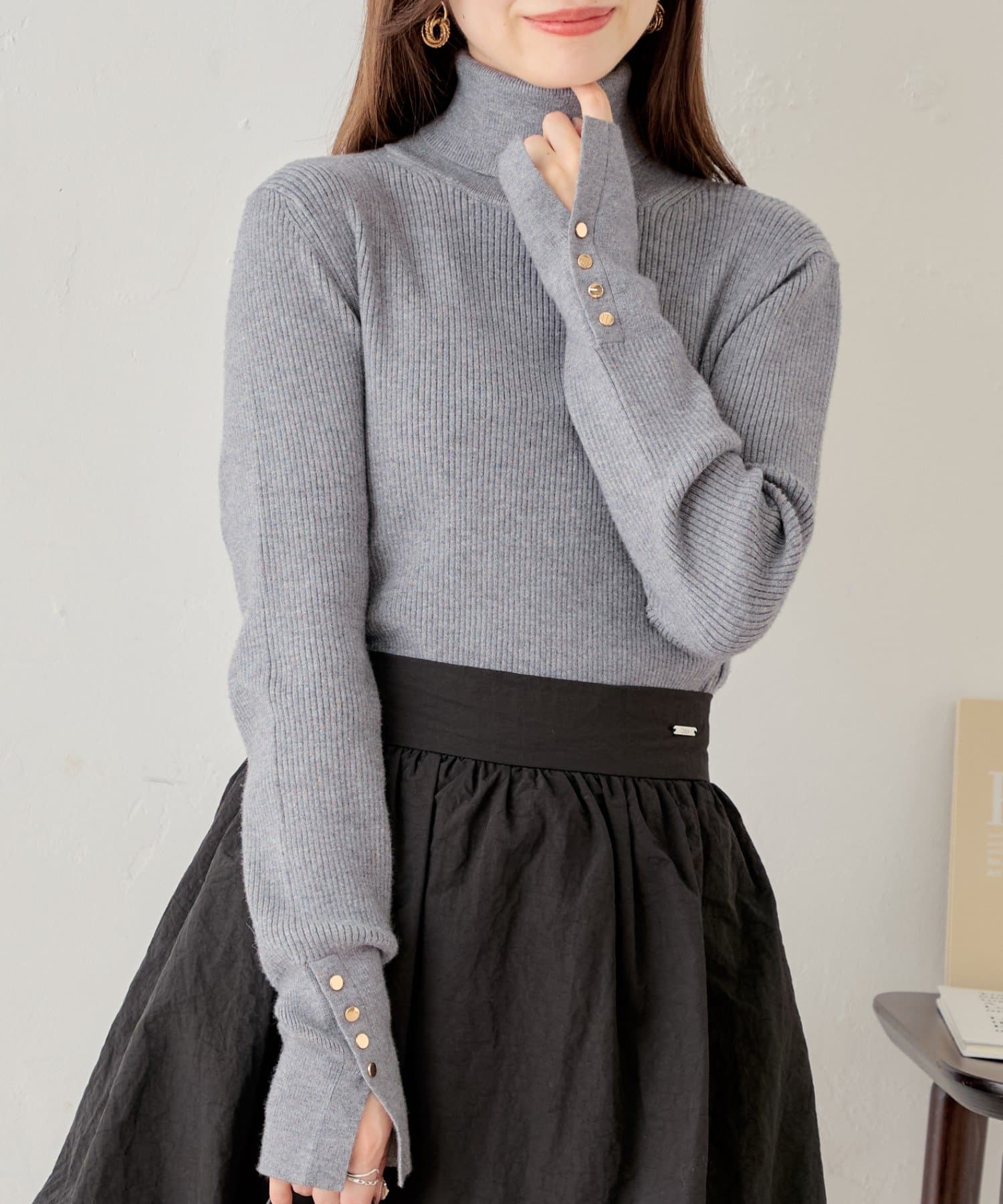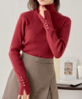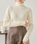 袖ボタン付きのさりげないラメ感が可愛い大人っぽタートルニット登場♡