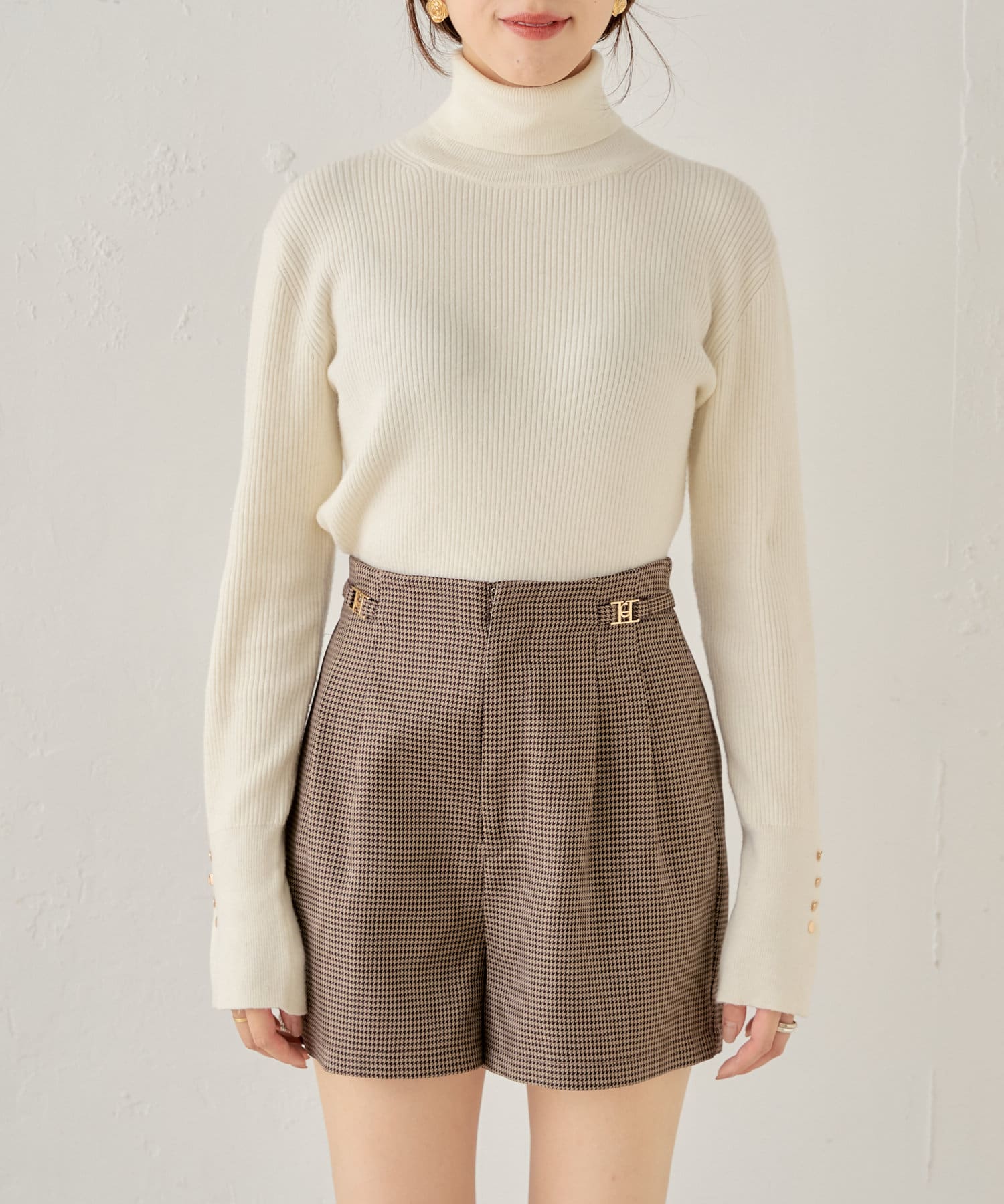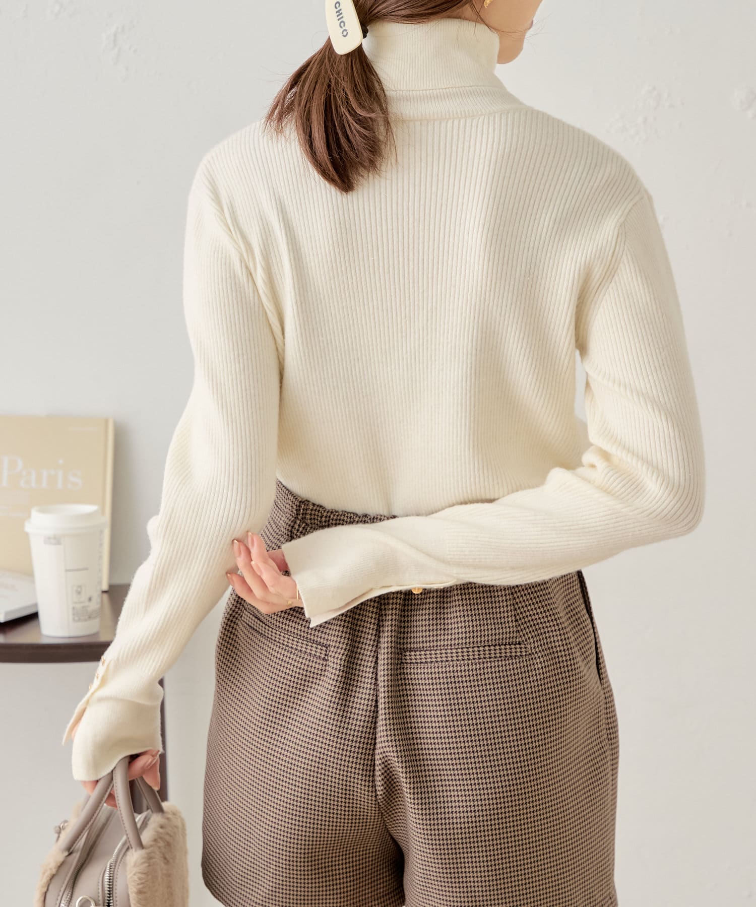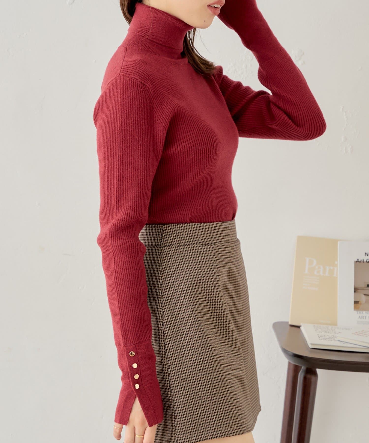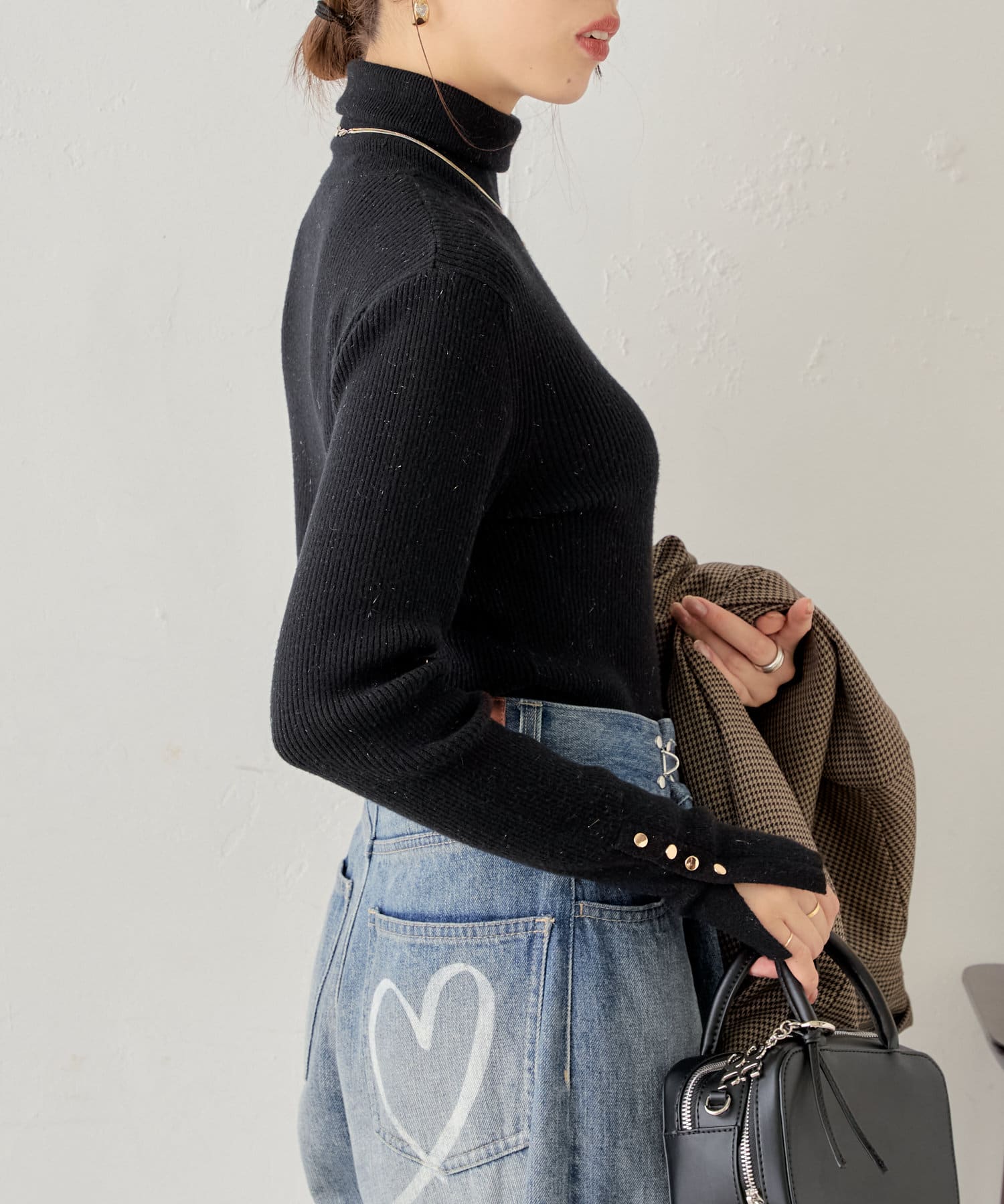袖ボタン付きのさりげないラメ感が可愛い大人っぽタートルニット登場♡
