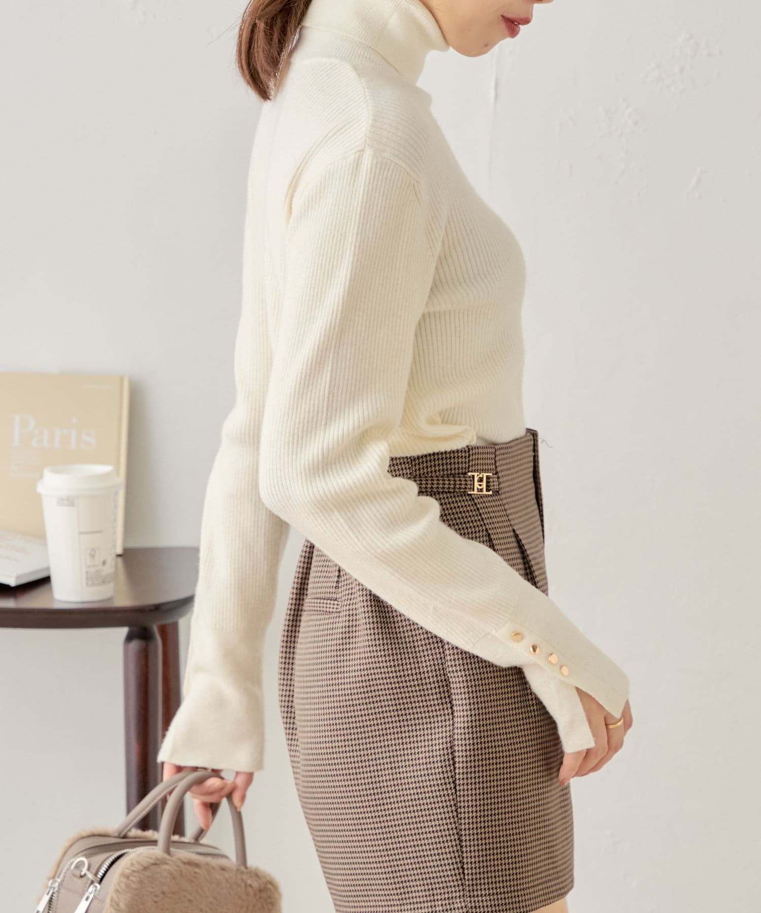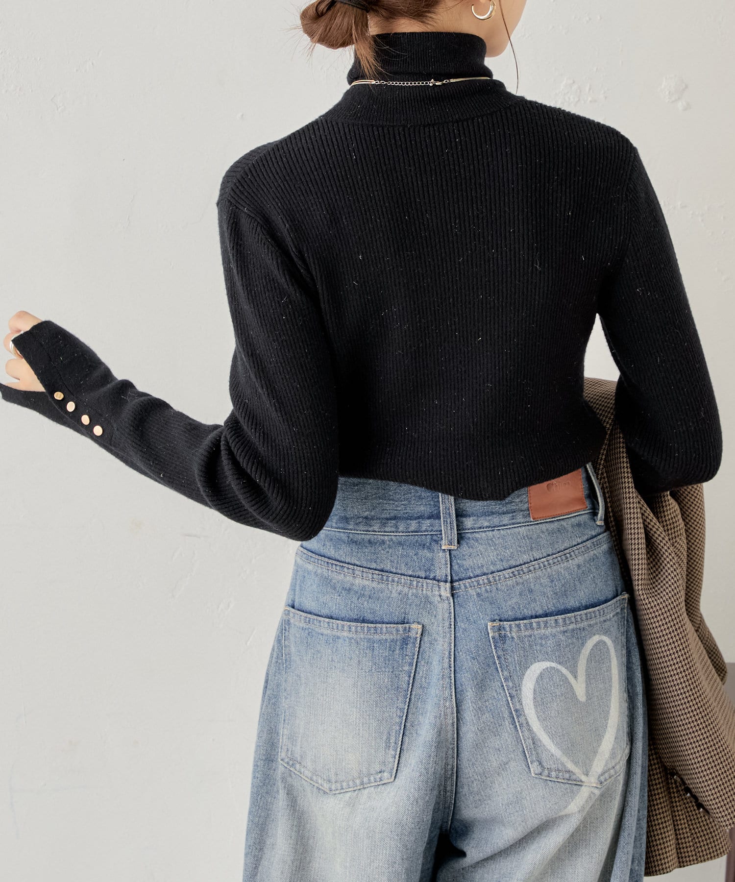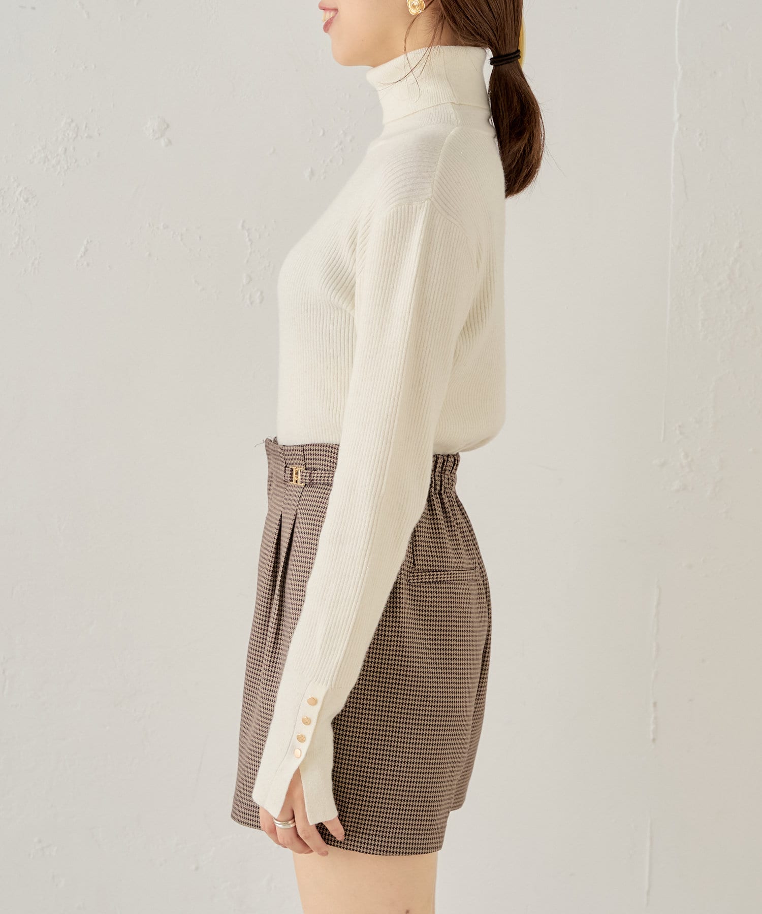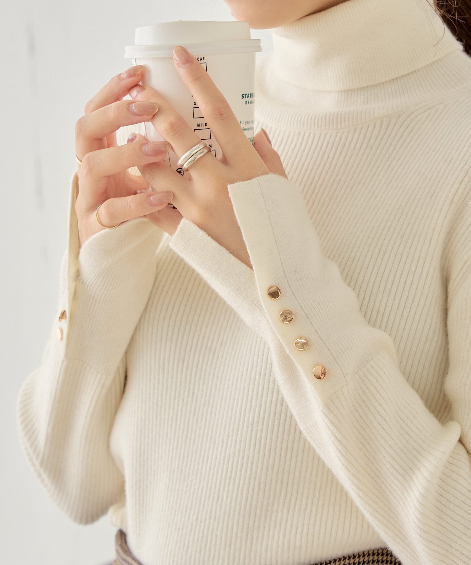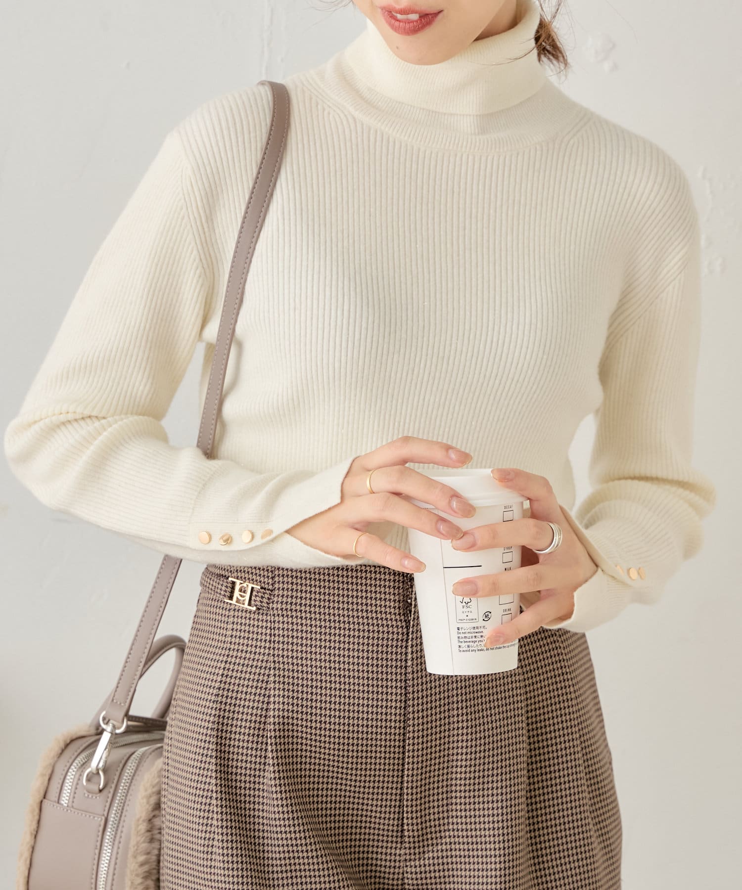 袖ボタン付きのさりげないラメ感が可愛い大人っぽタートルニット登場♡