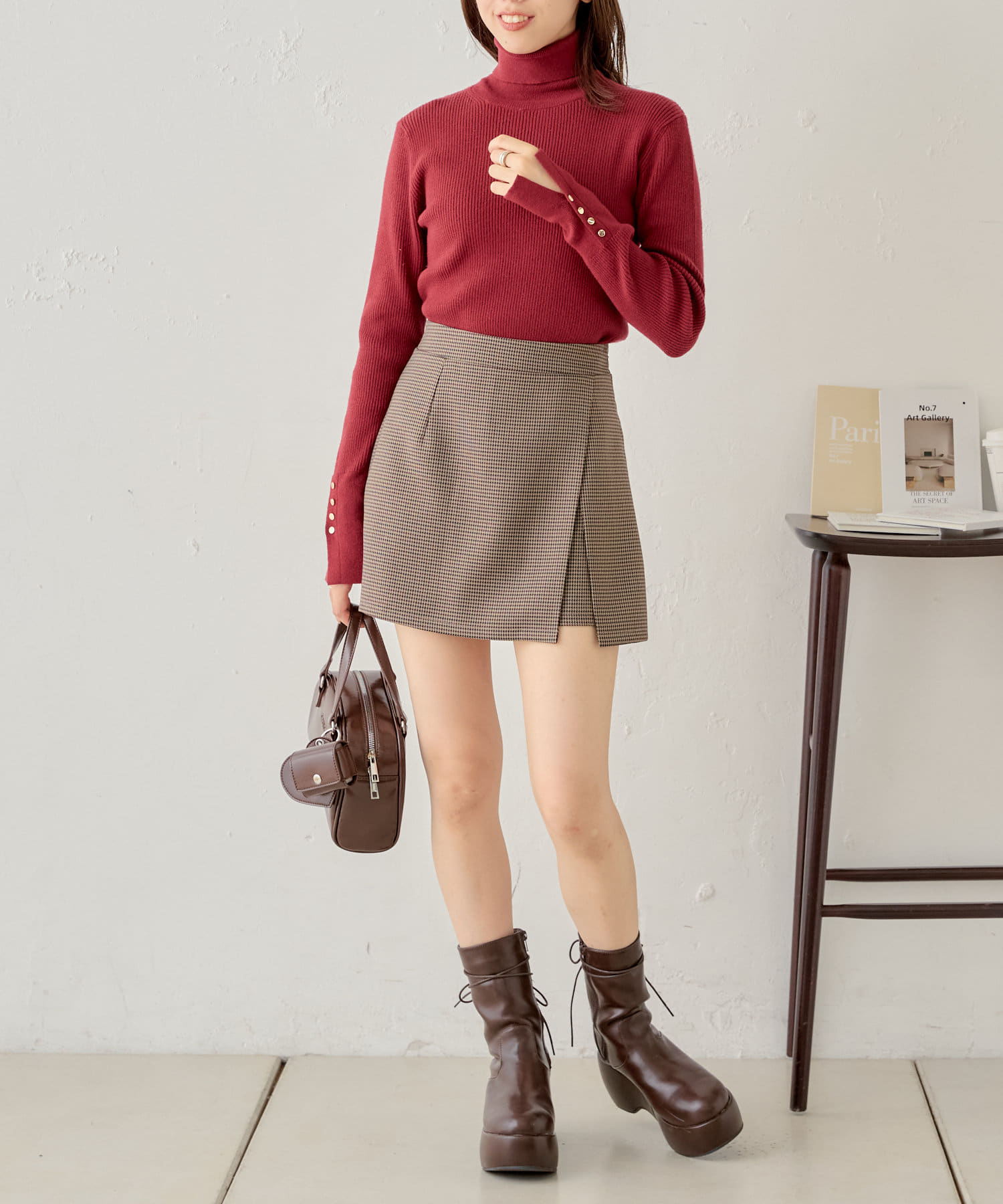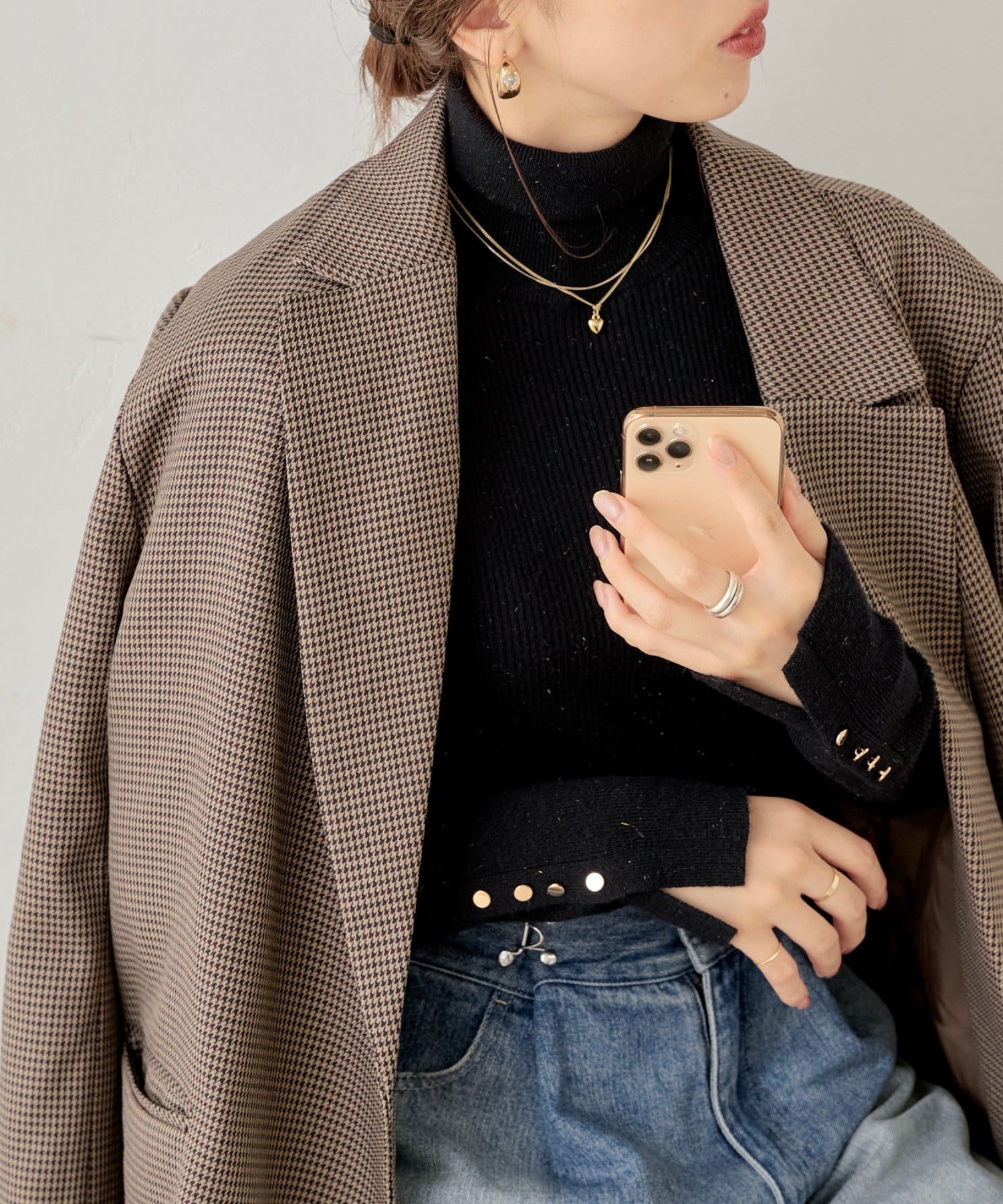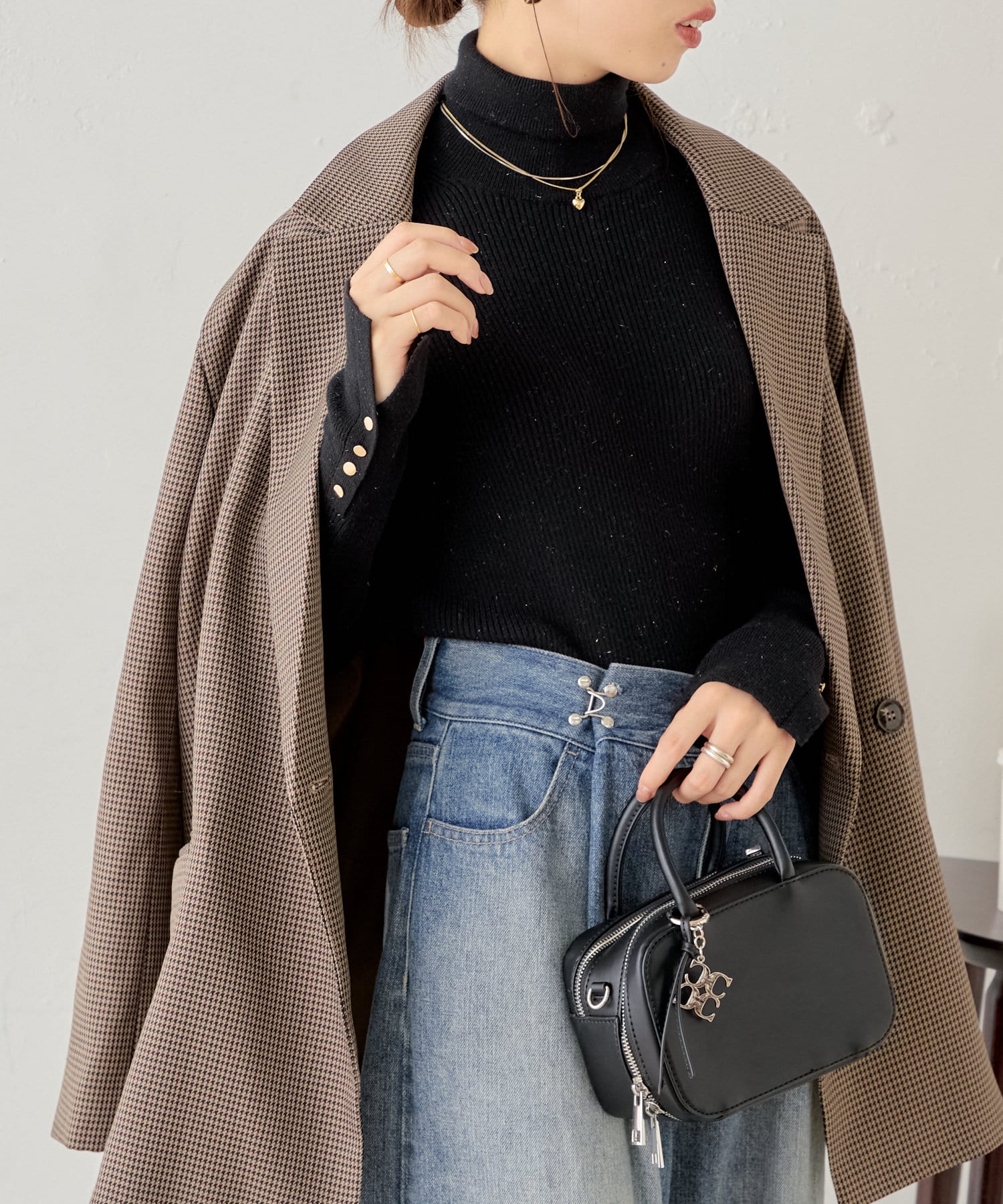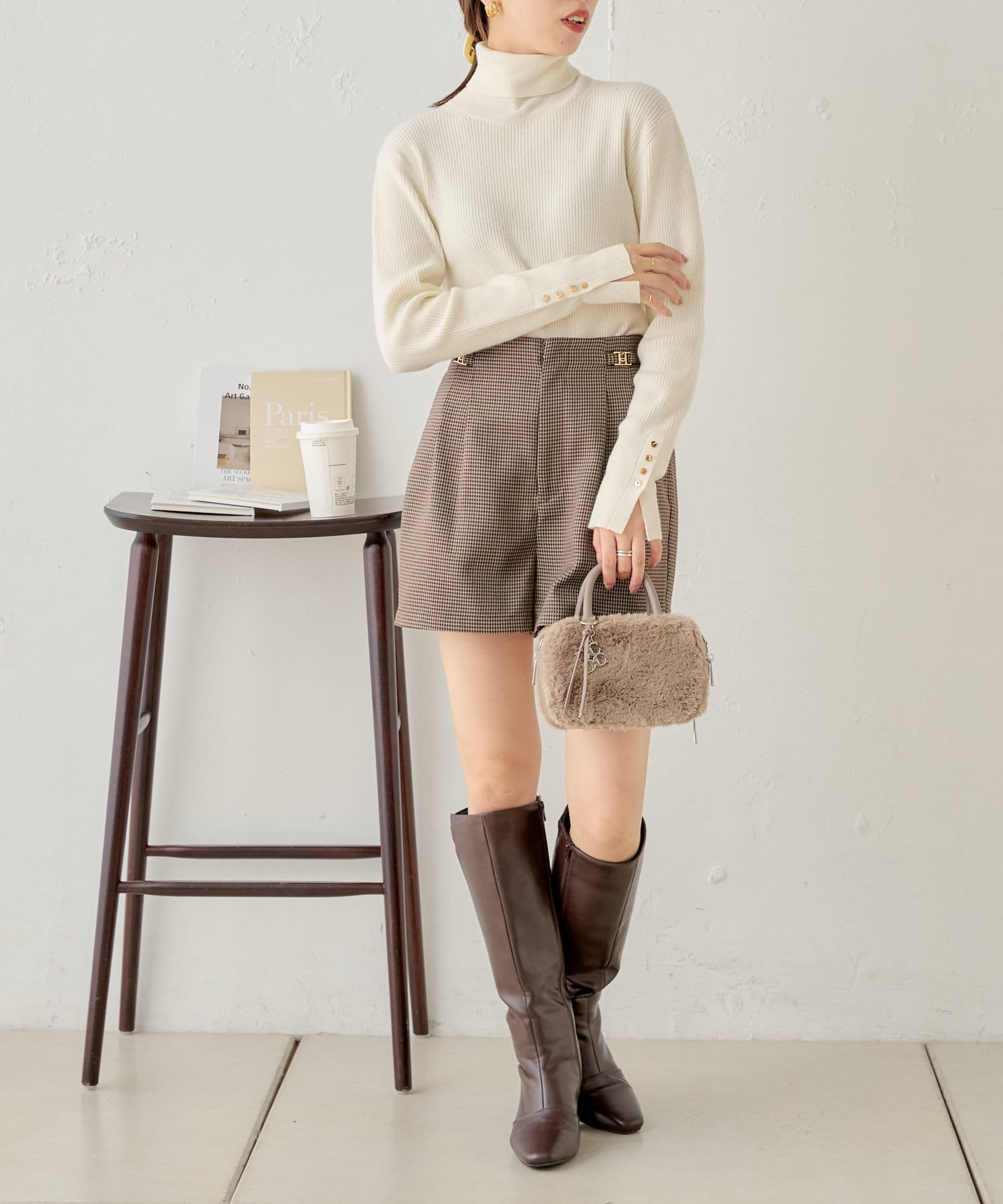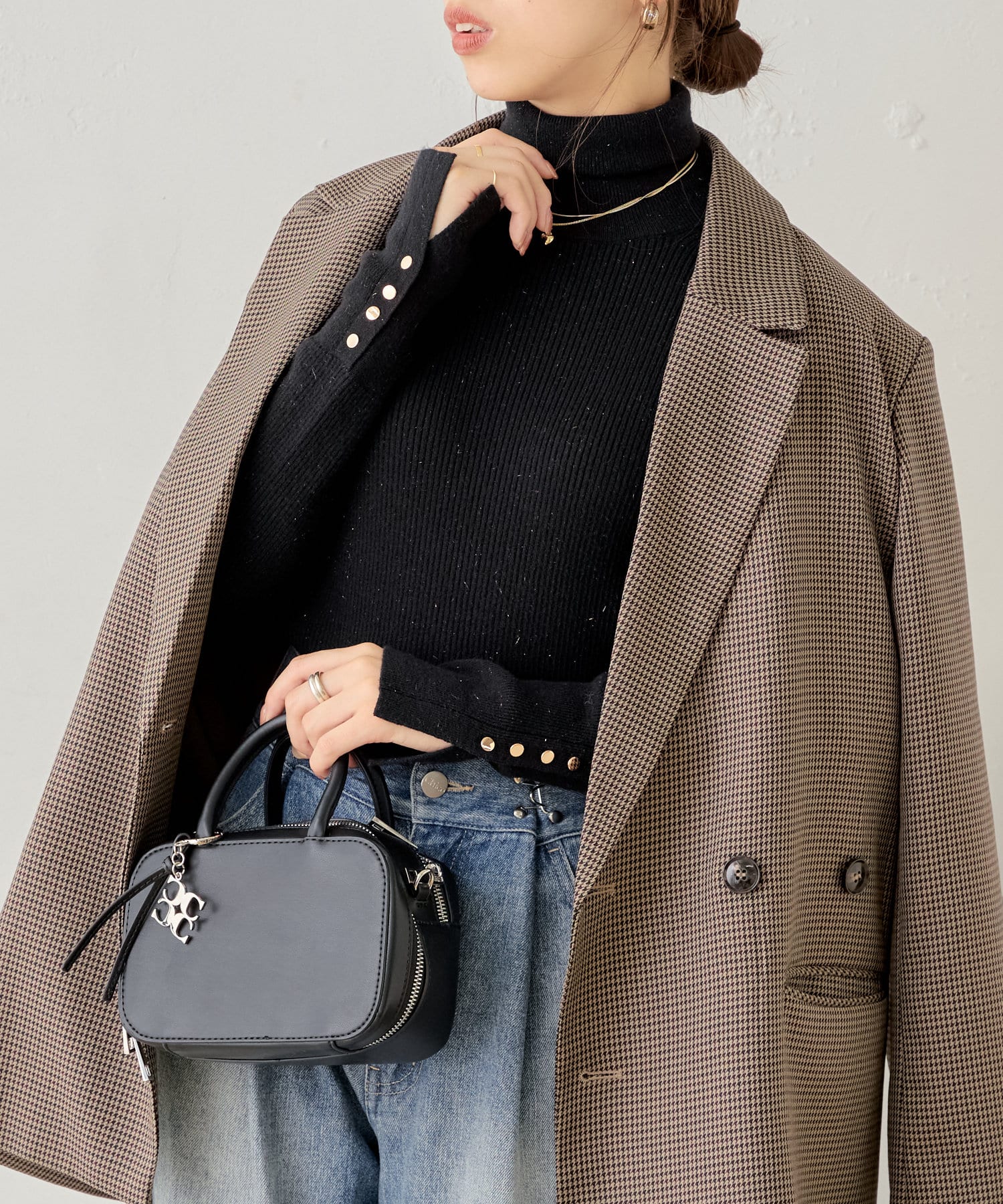 袖ボタン付きのさりげないラメ感が可愛い大人っぽタートルニット登場♡