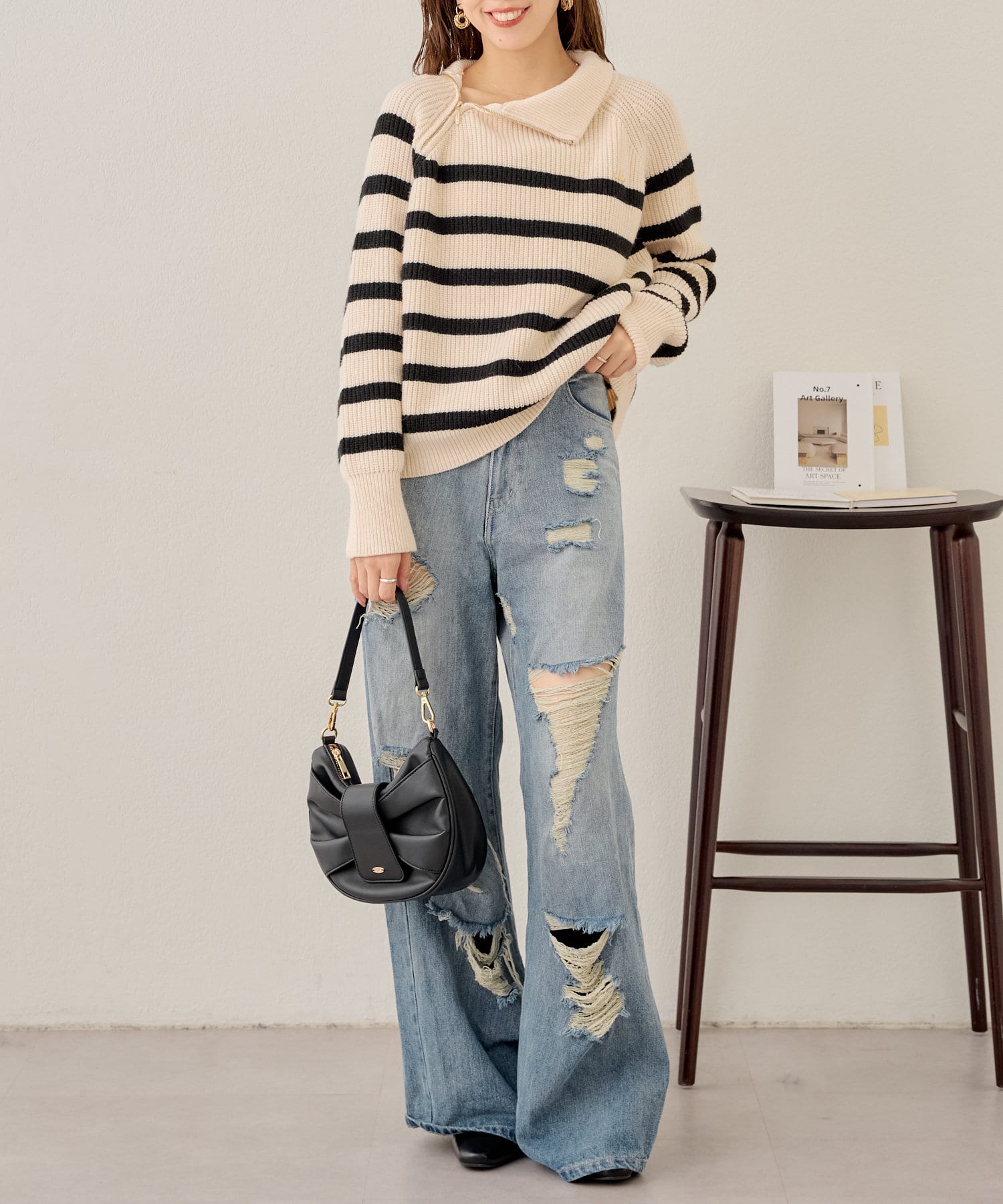 ・デニムを合わせると大人カジュアルに着ていただけるのでおすすめです◎