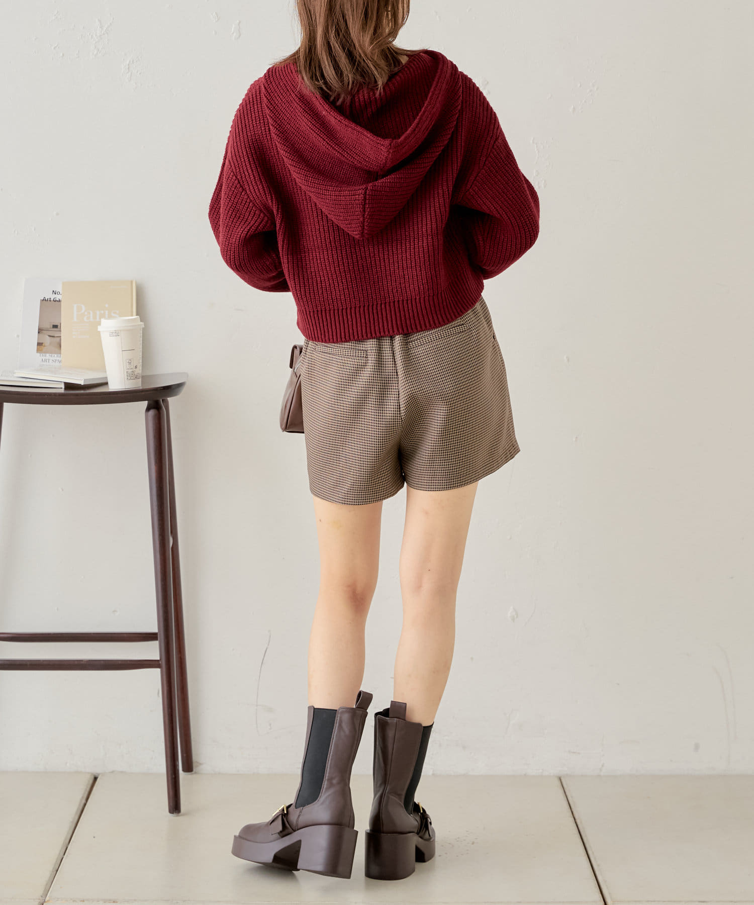 ・短めの丈感のパーカーで腰の位置が高く見えるのでスタイルアップします!