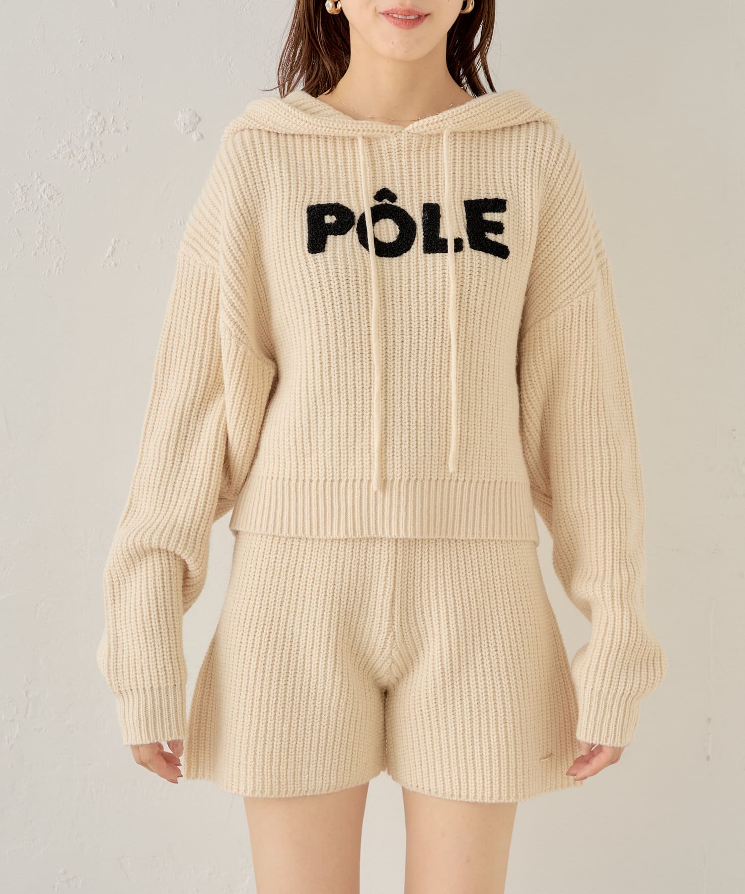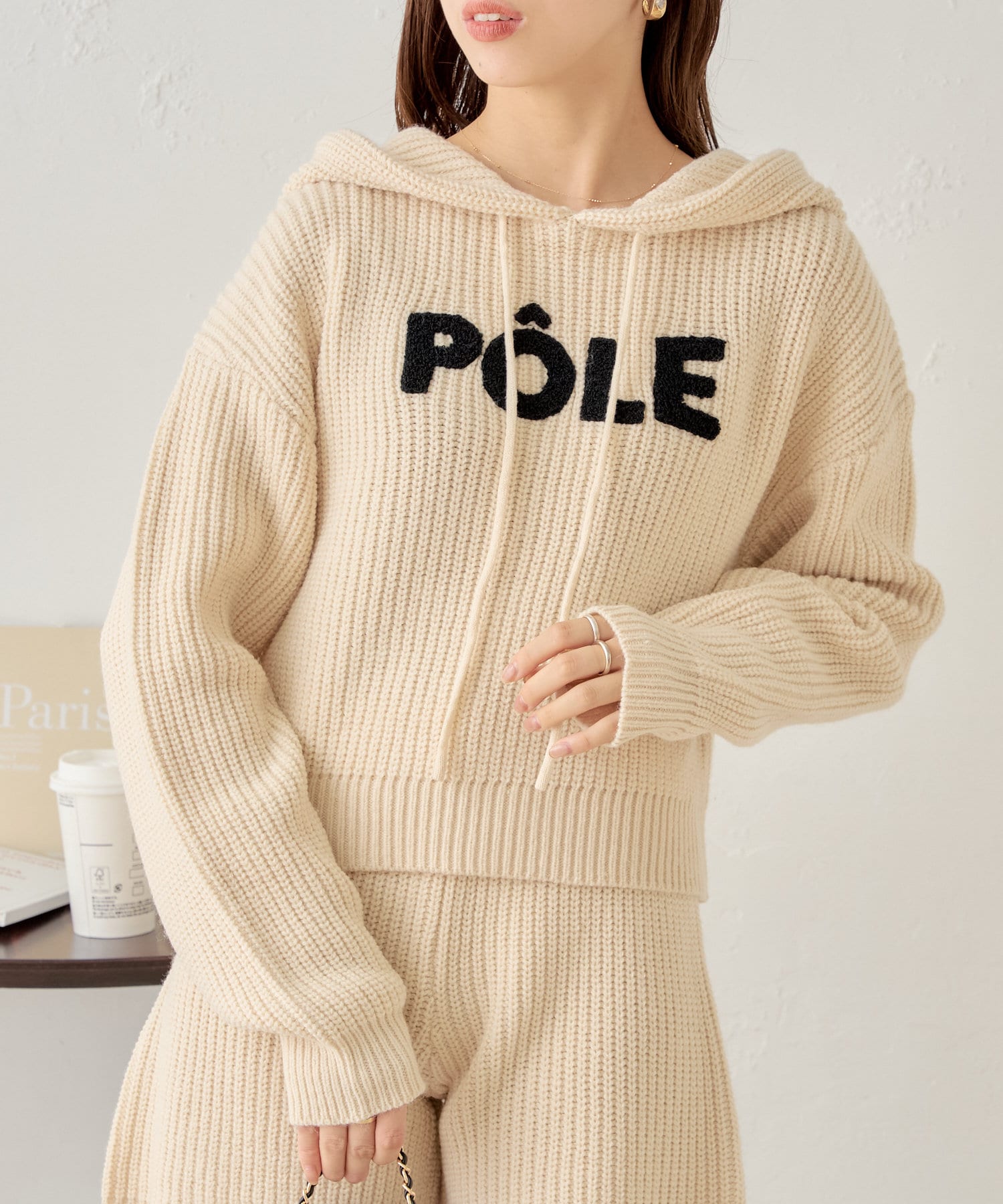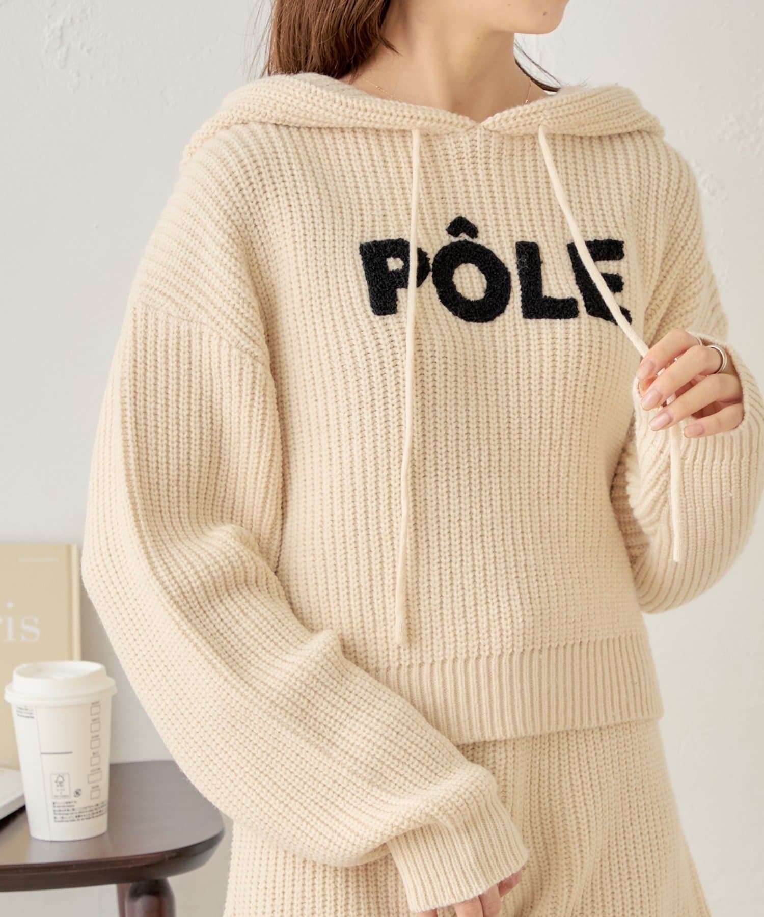 フロントロゴが目を惹くセットアップ対応のニットパーカー