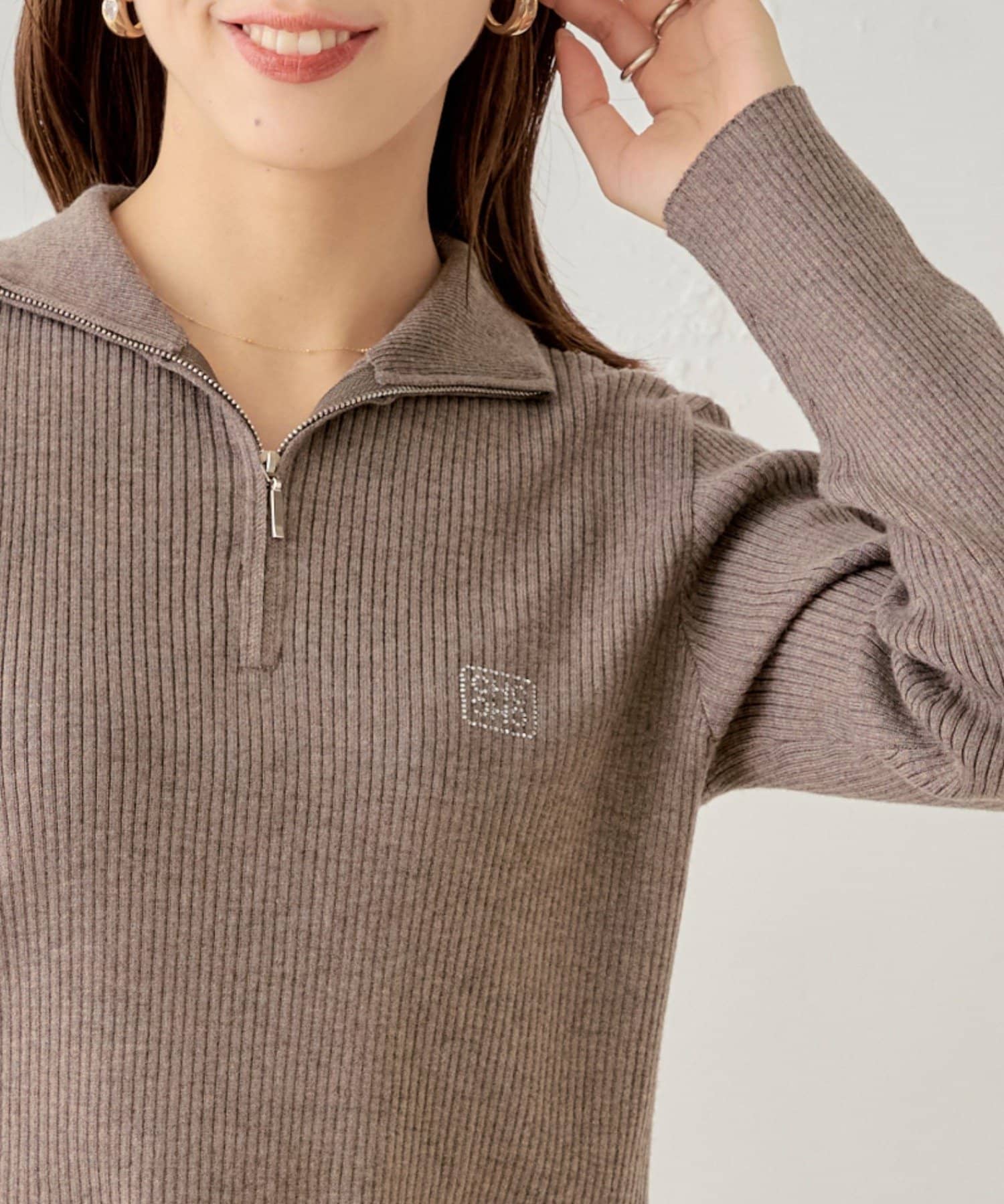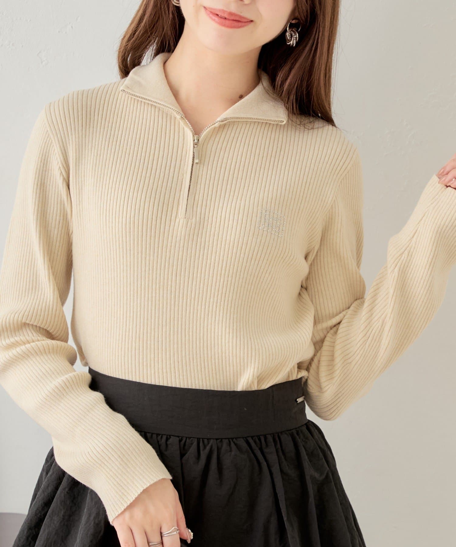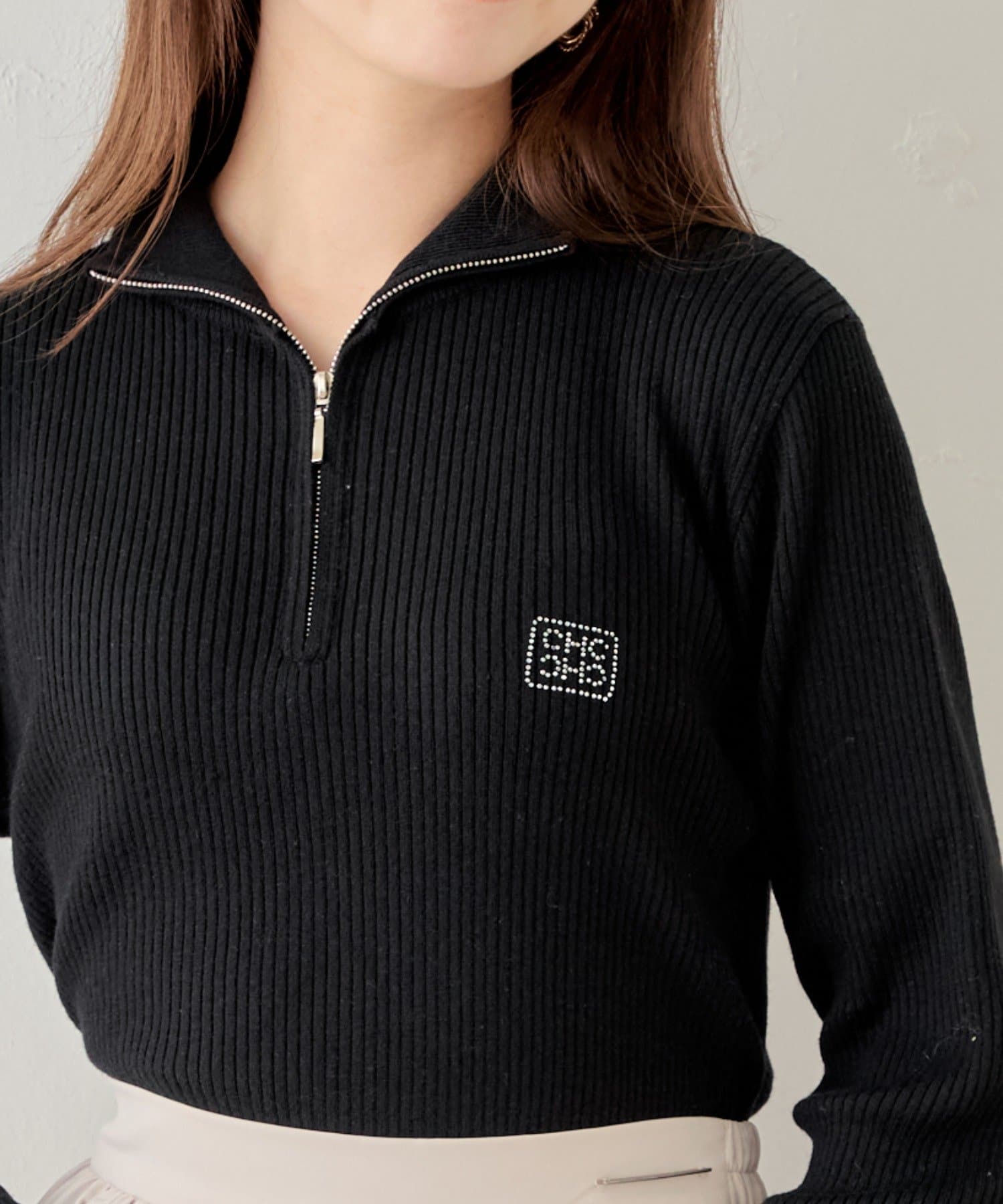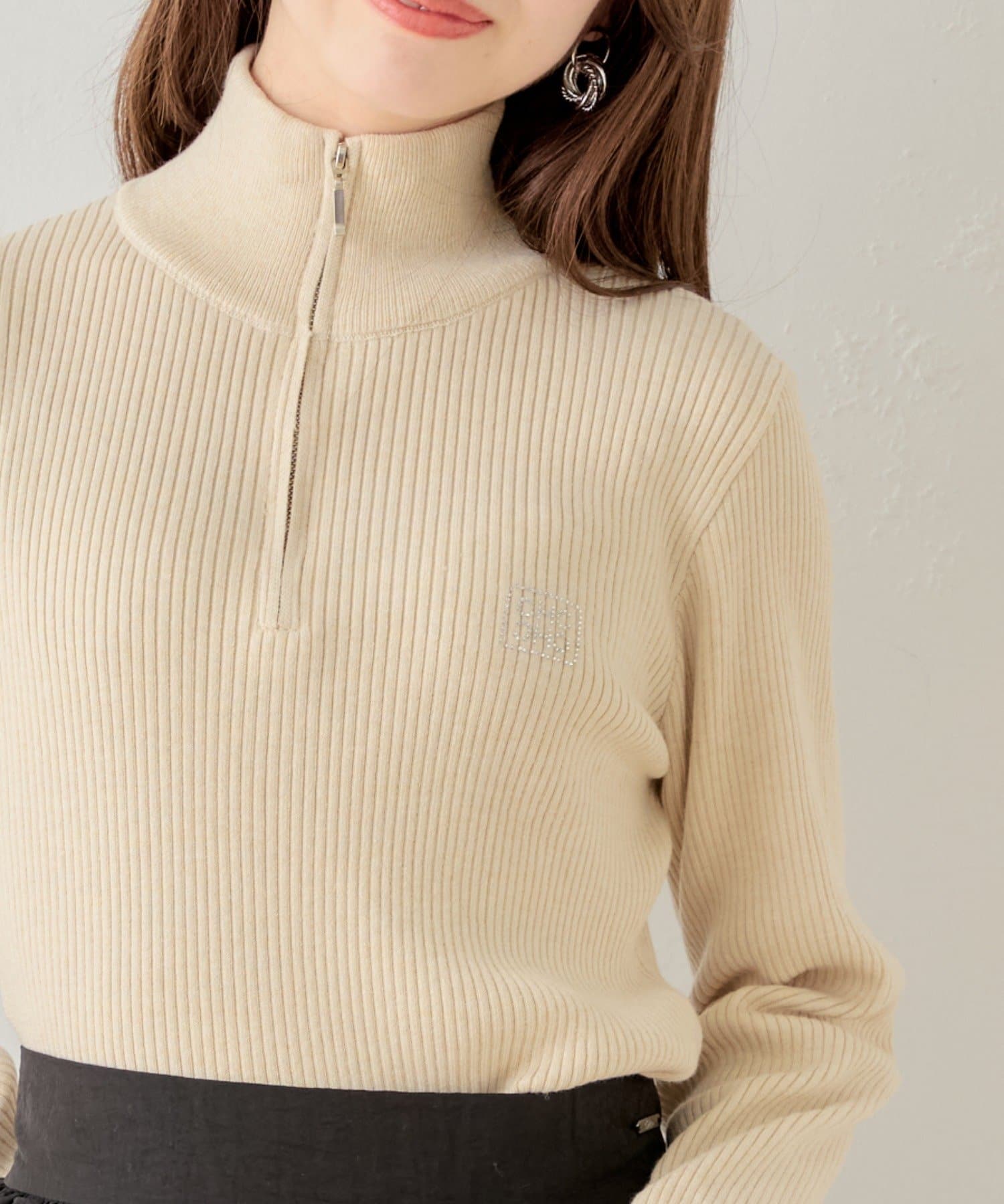 【Chico】メランジハーフジップネームニット