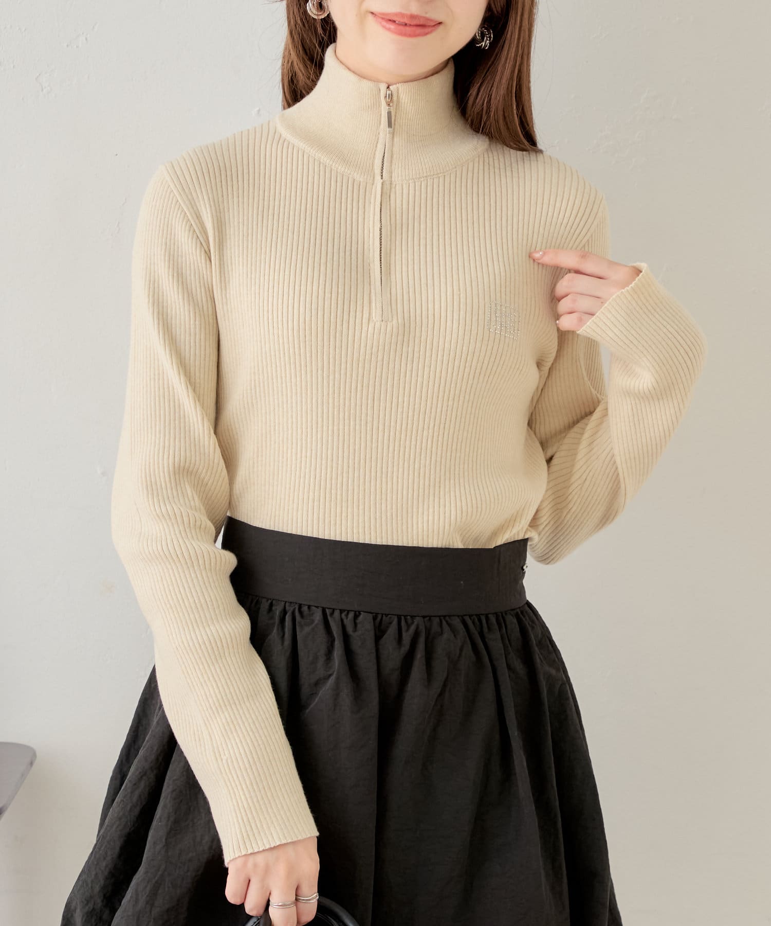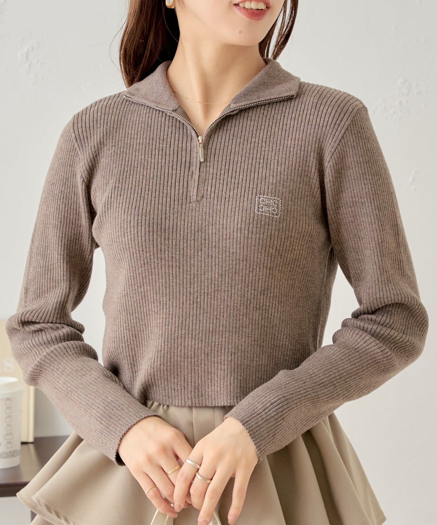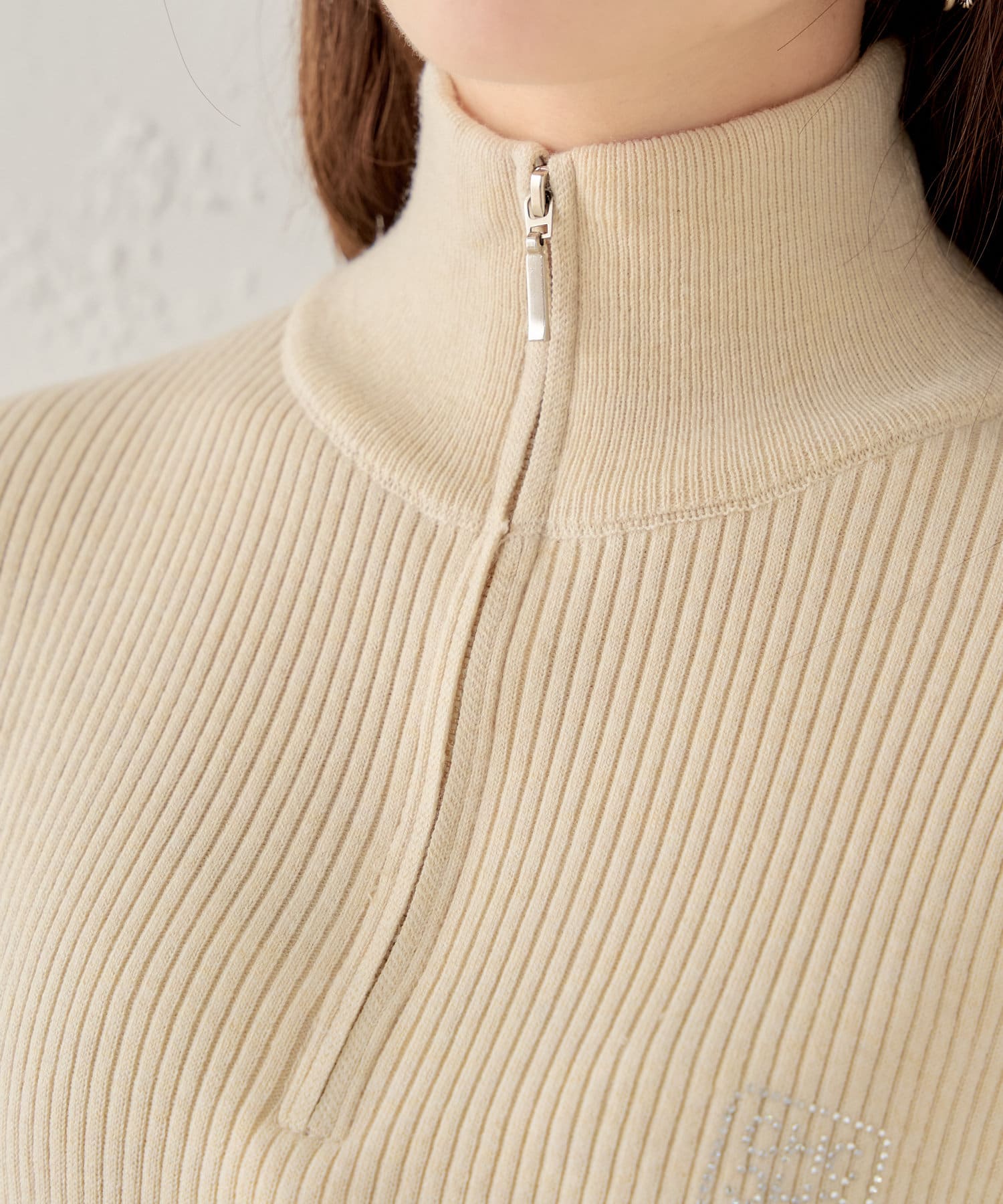 【Chico】メランジハーフジップネームニット