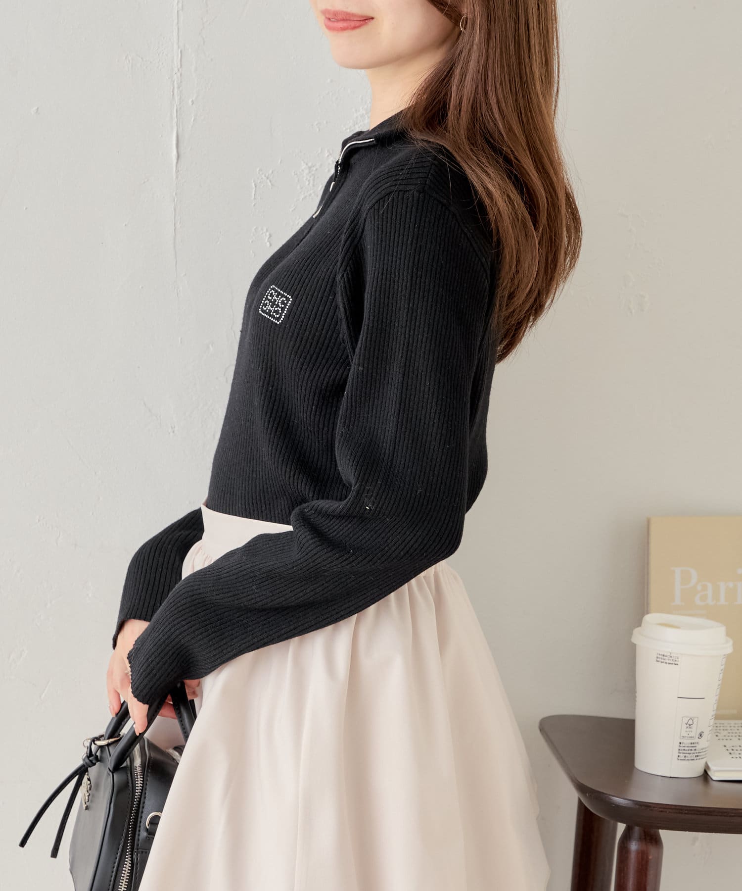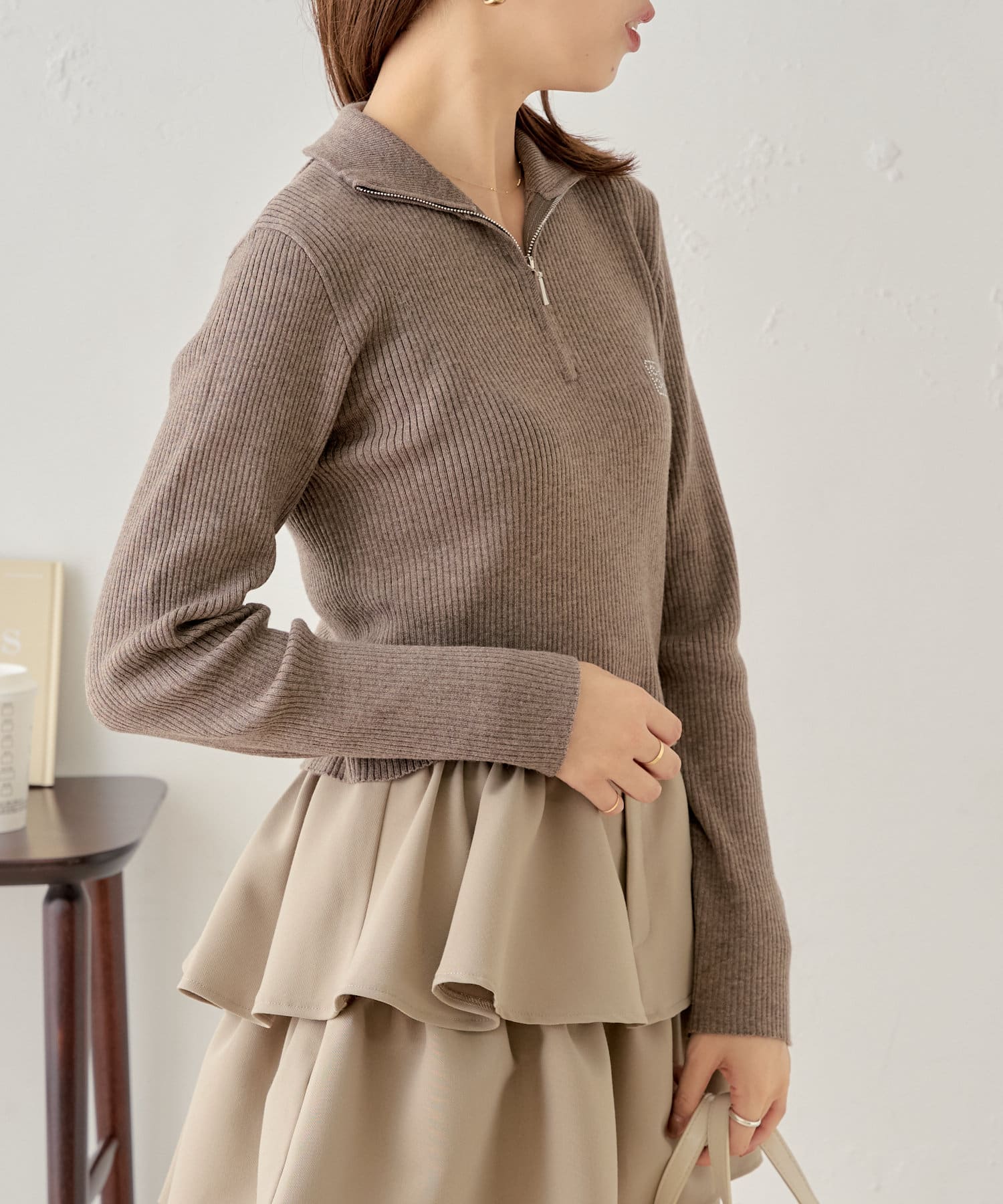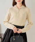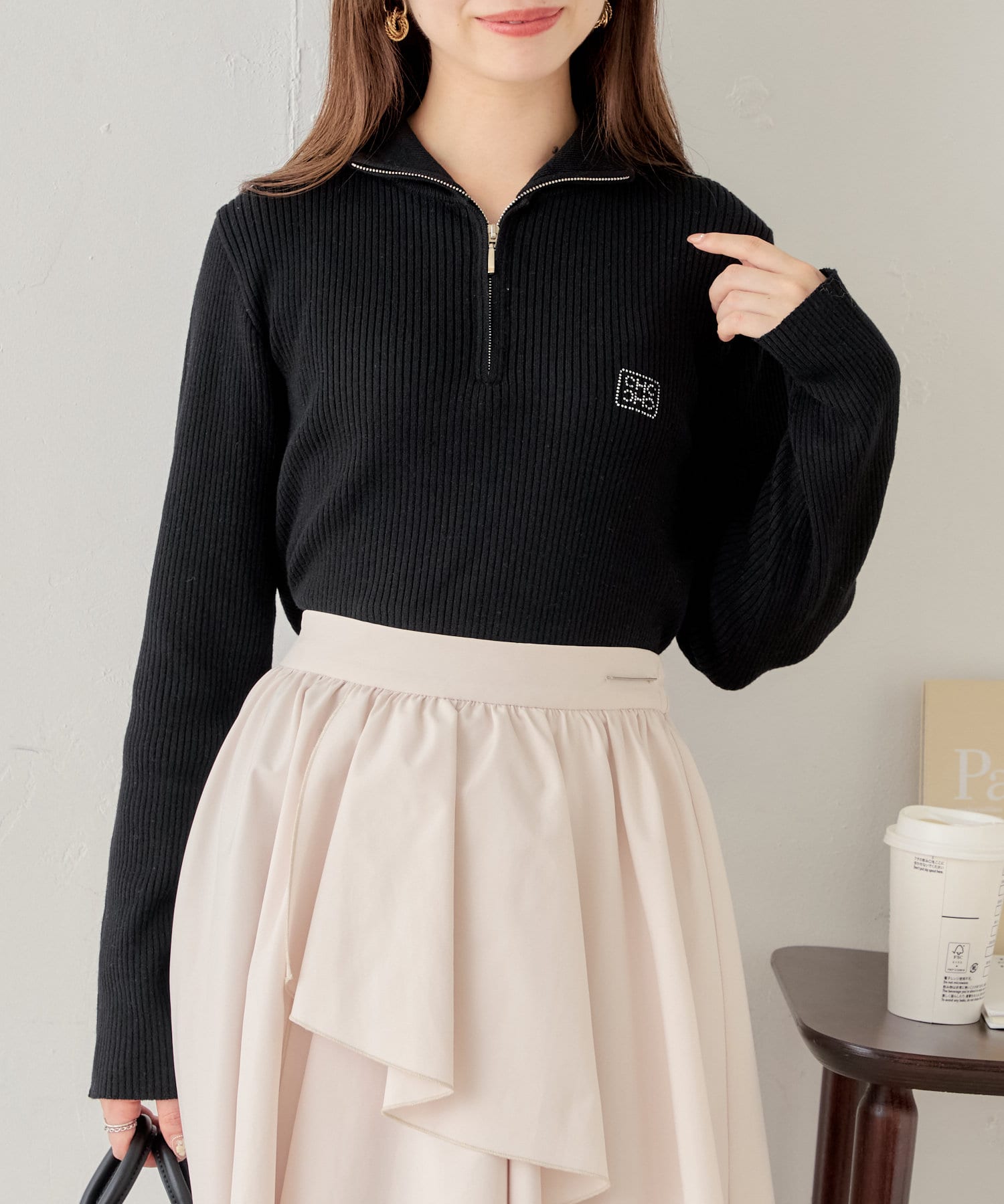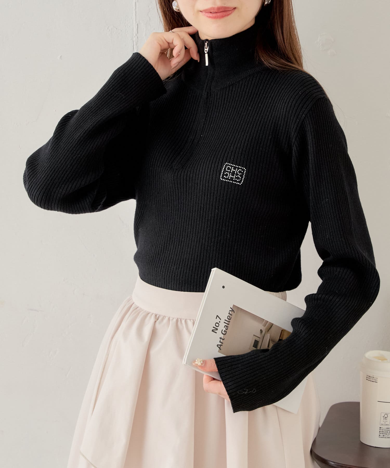 【Chico】メランジハーフジップネームニット