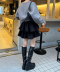 ・ミニスカート合わせが女性らしく人気なスタイリングです。