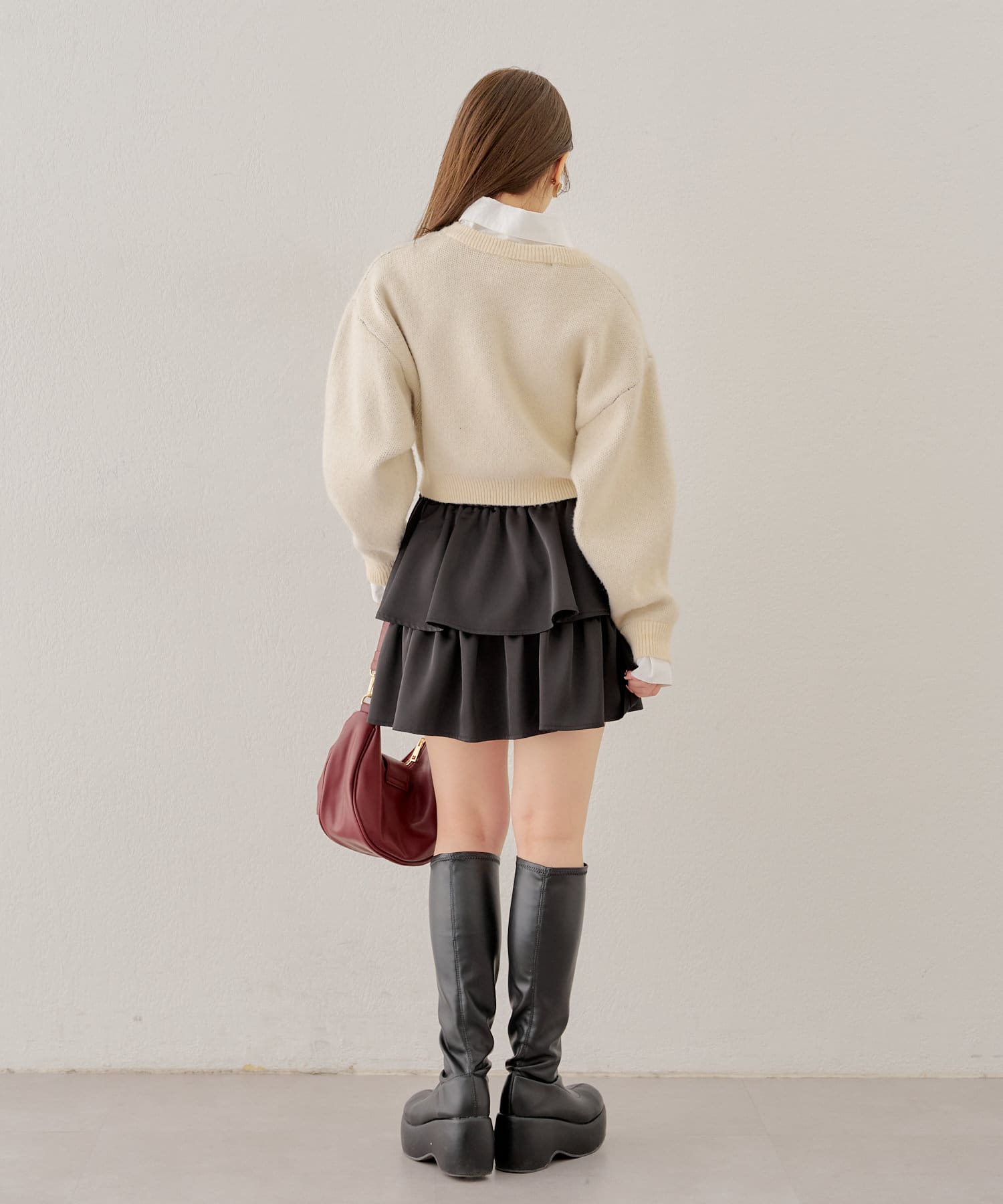 ・襟と袖付きなのでニットでも簡単にレイヤードが可能です◎