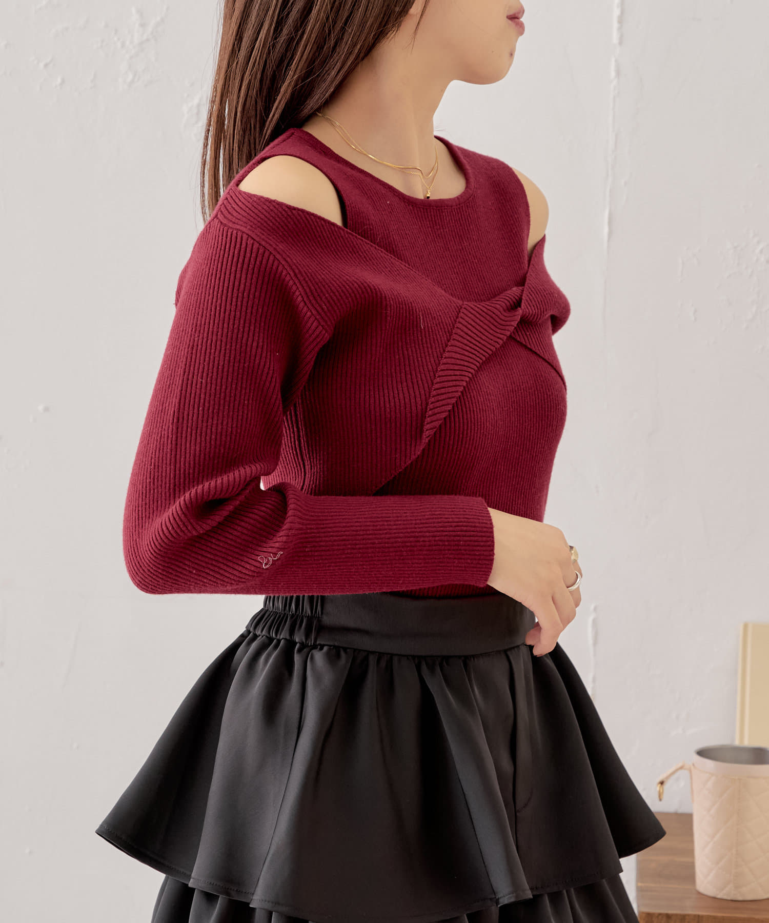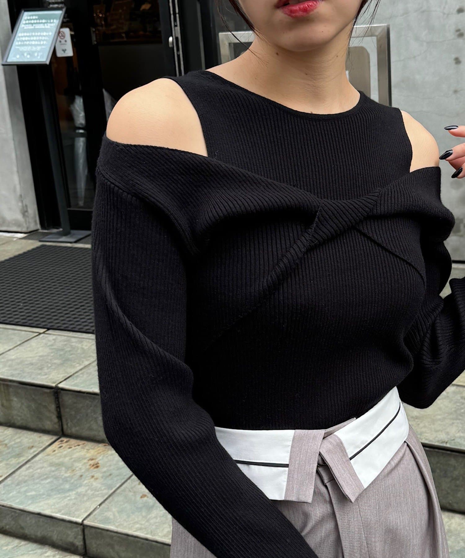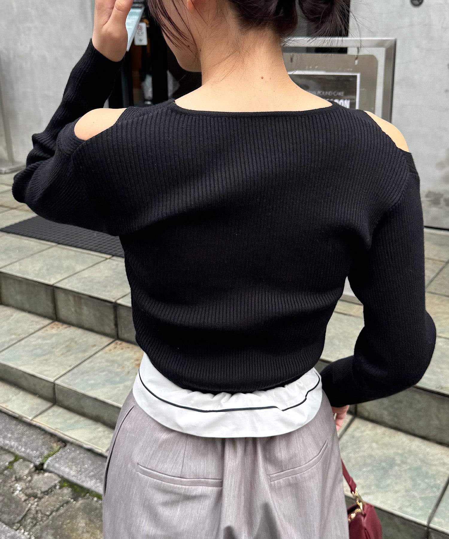 レイヤード風で一着でオシャレに見えるリブニット♡
