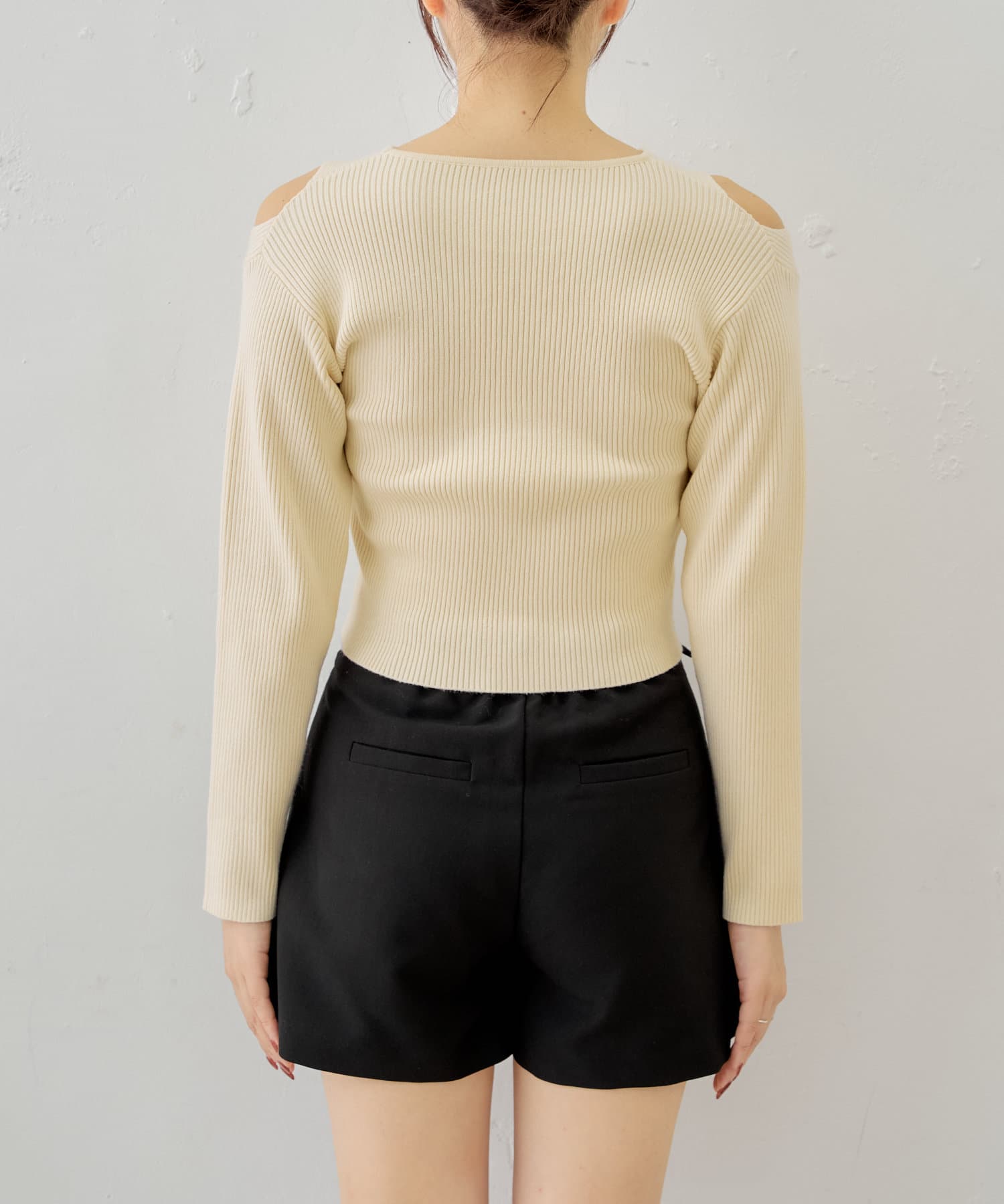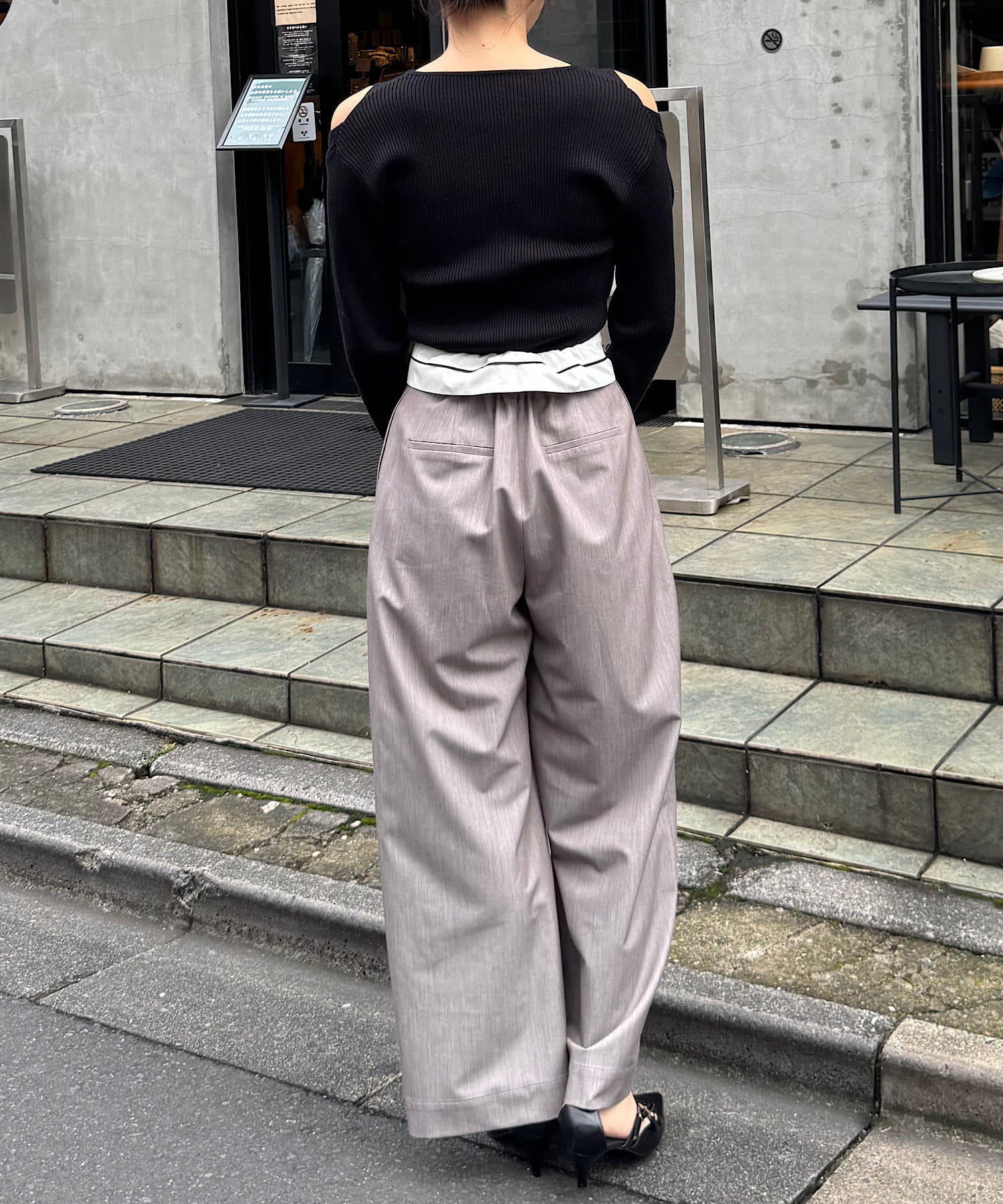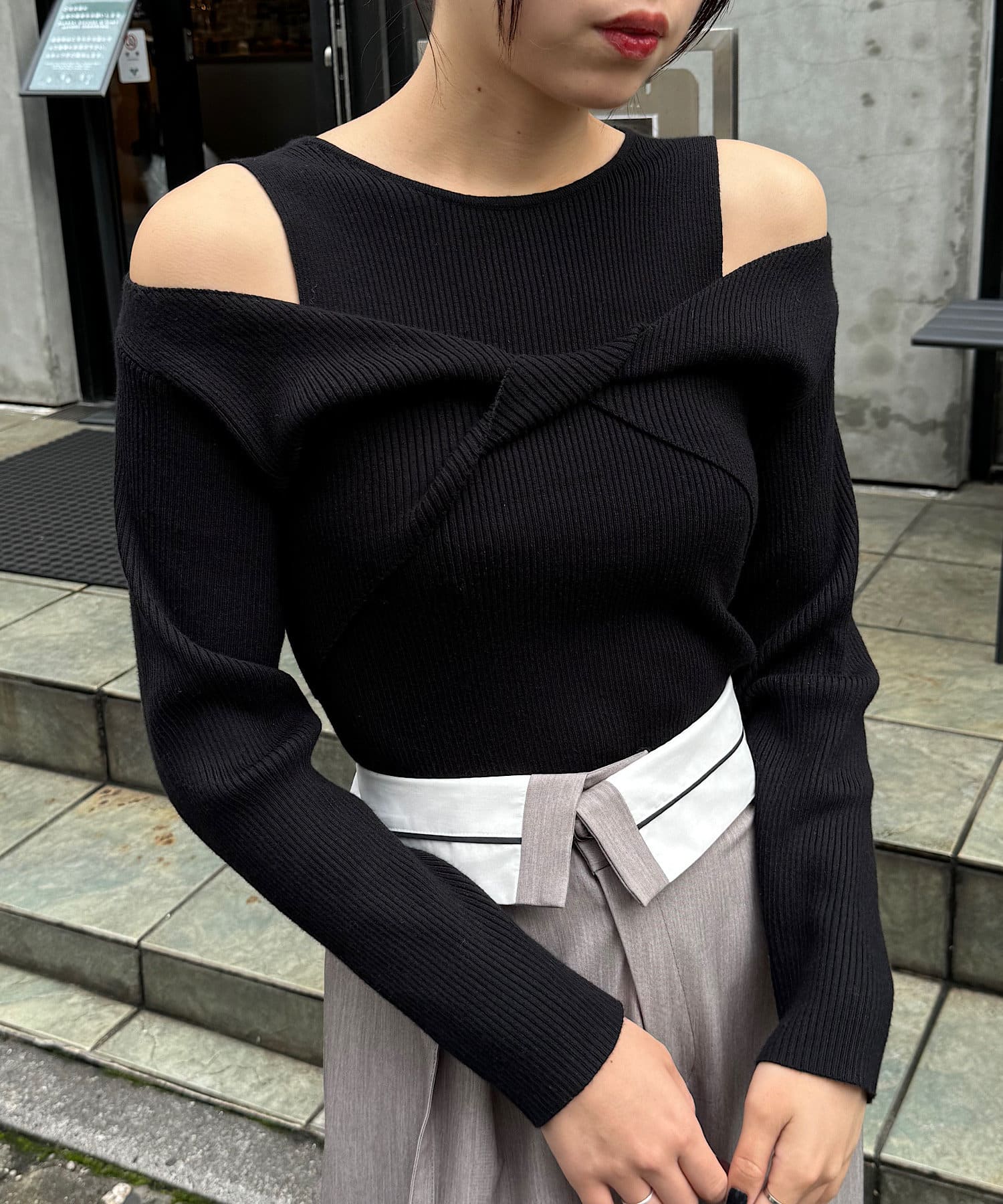 レイヤード風で一着でオシャレに見えるリブニット♡