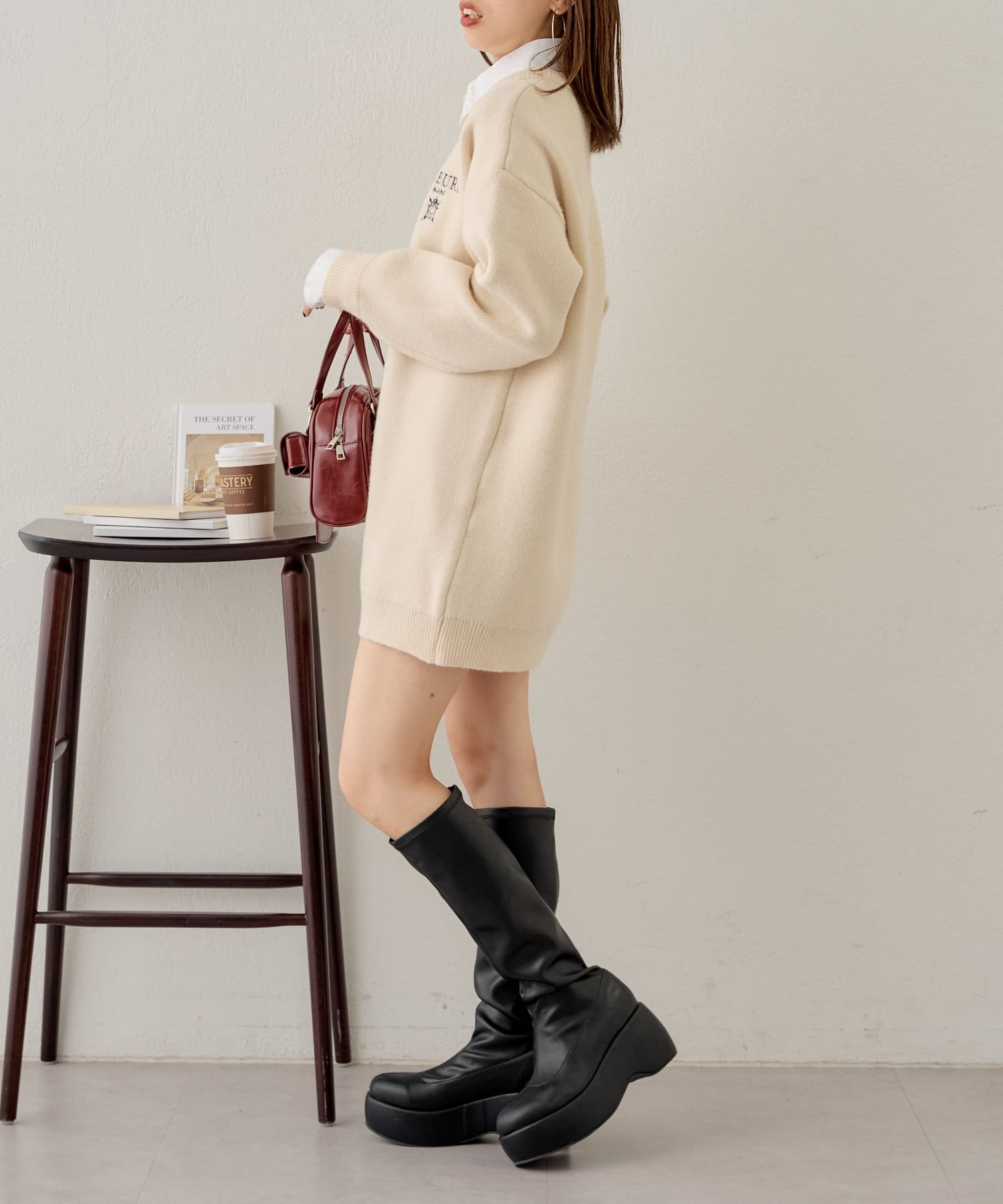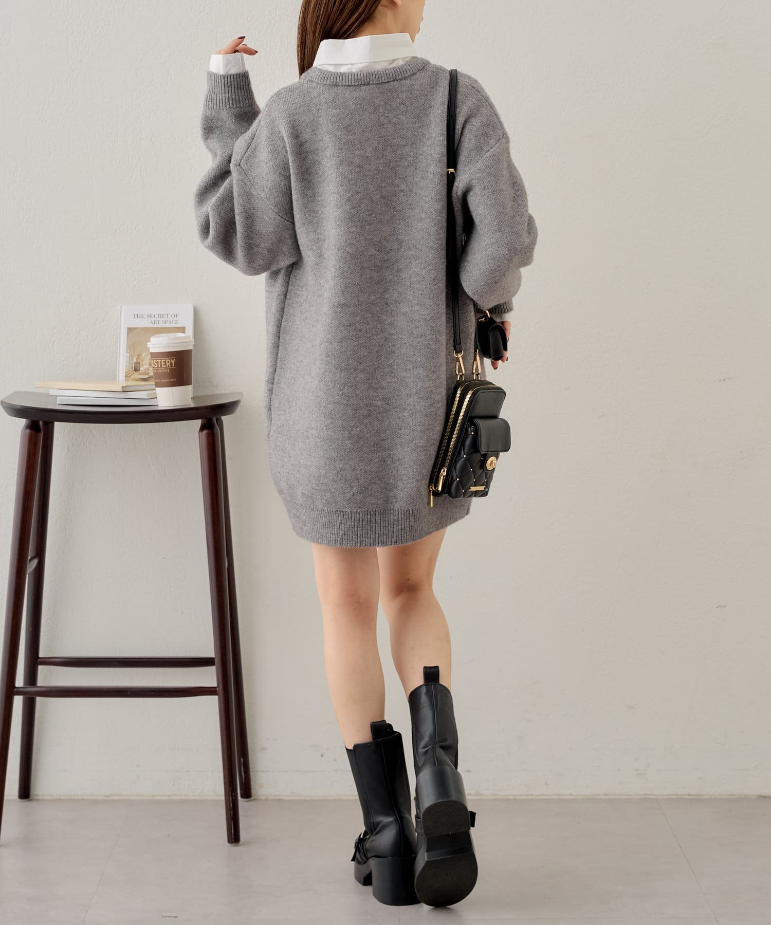 ・襟を取り外し薄手のタートルネック合わせも可愛いです。