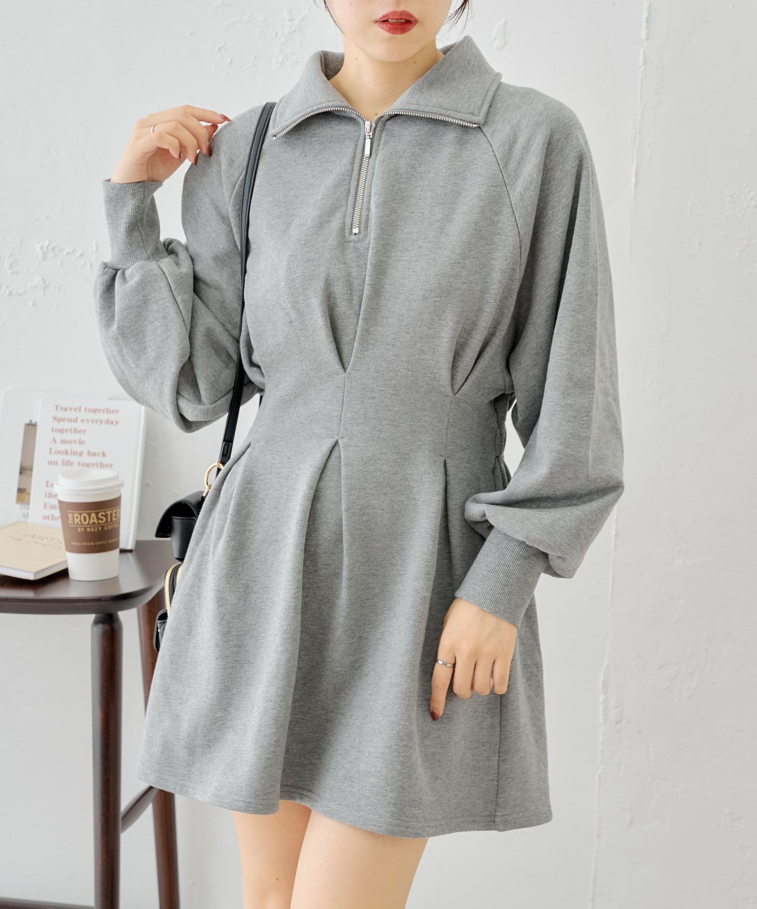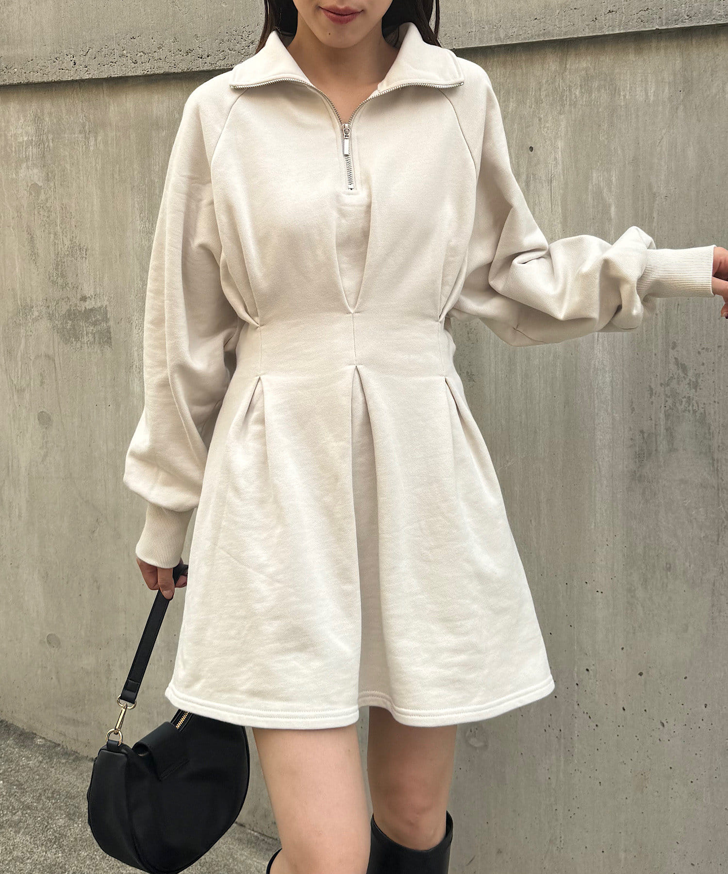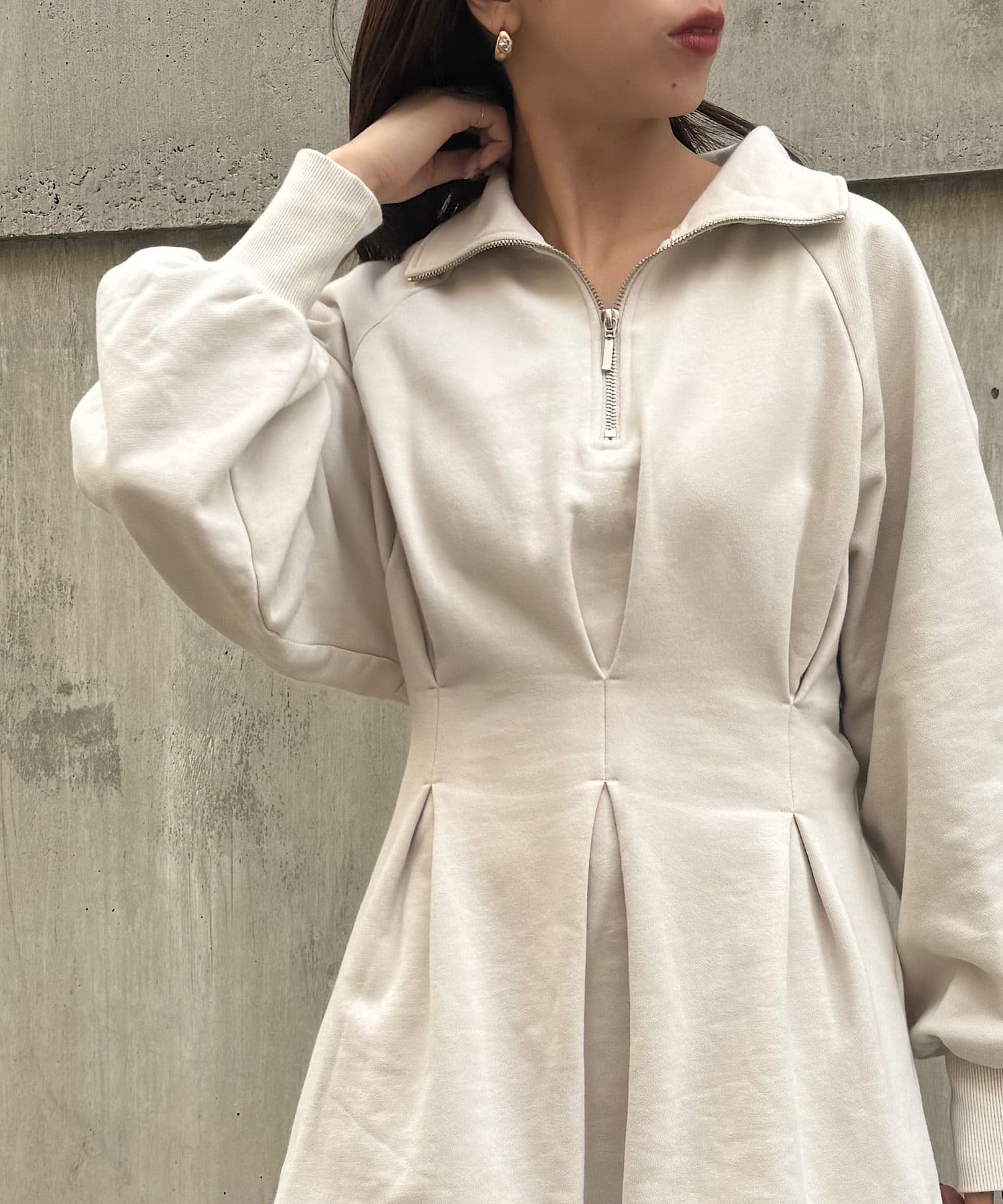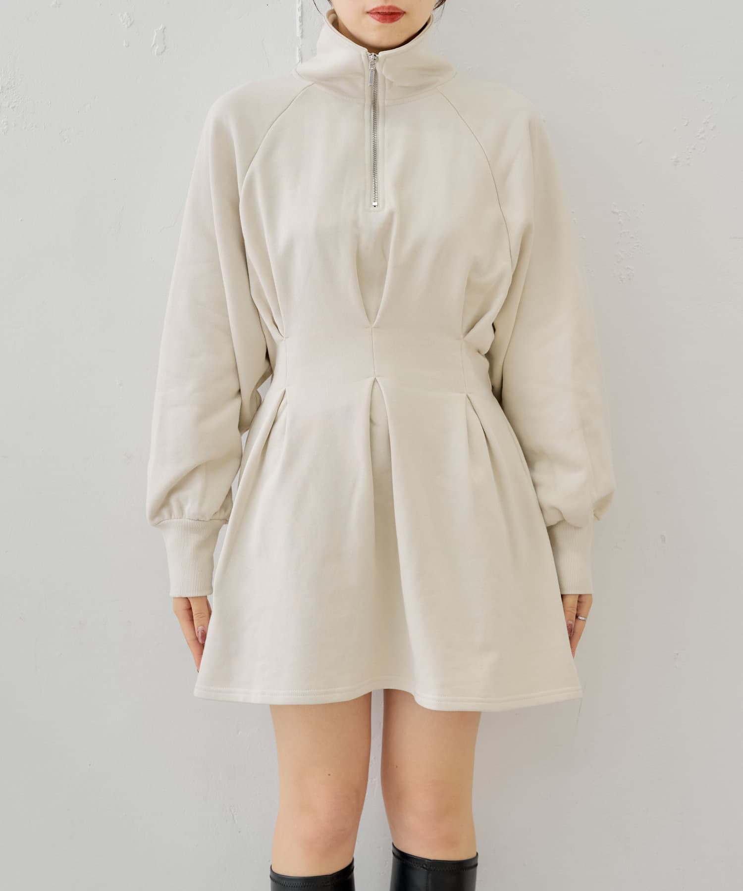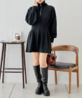 【Chico】ハーフジップフレアスウェットミニワンピース
