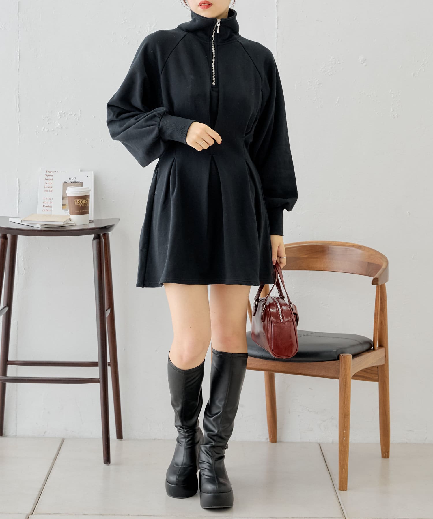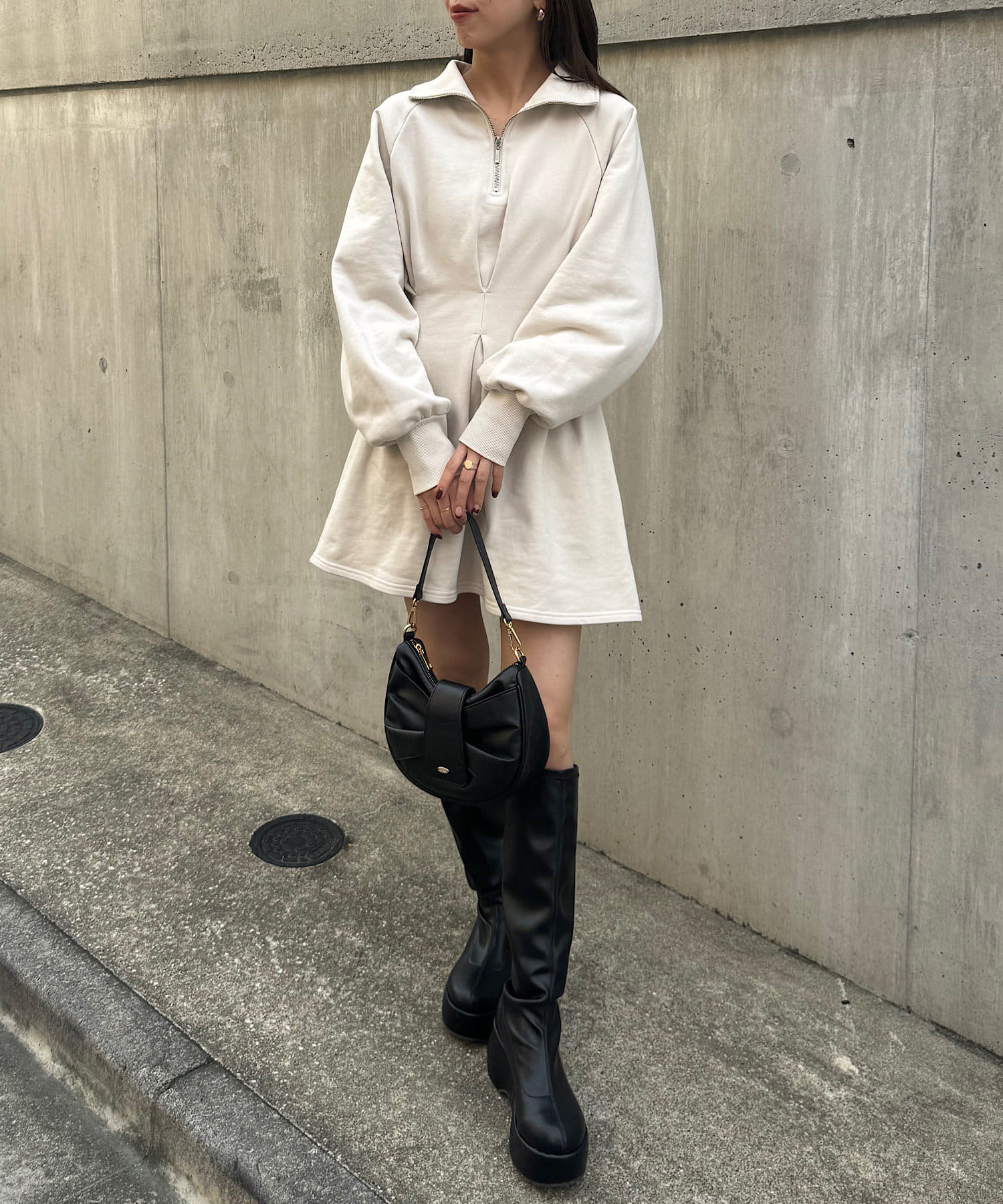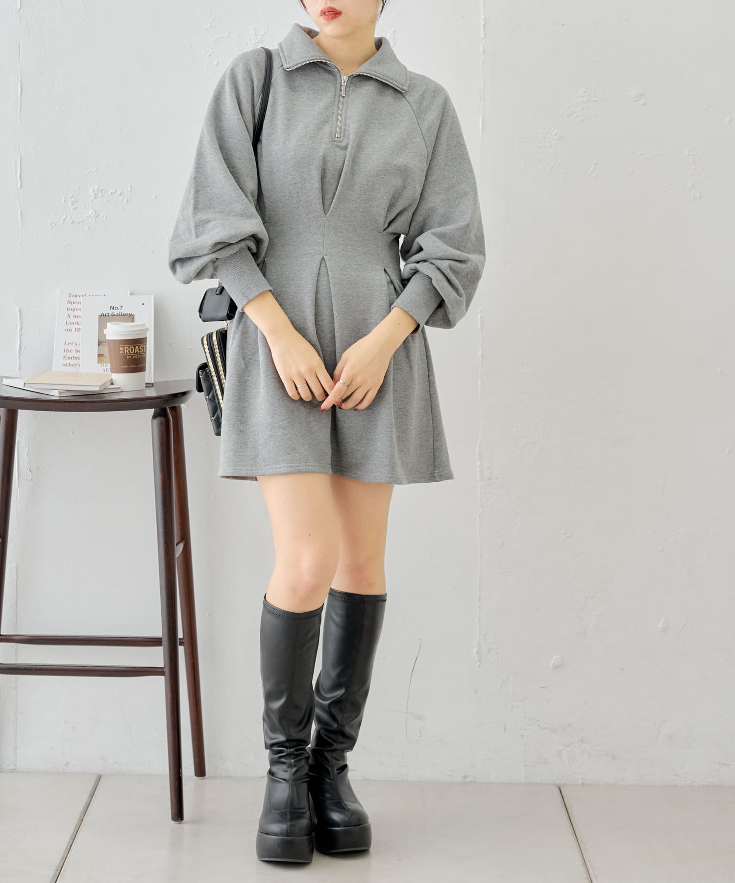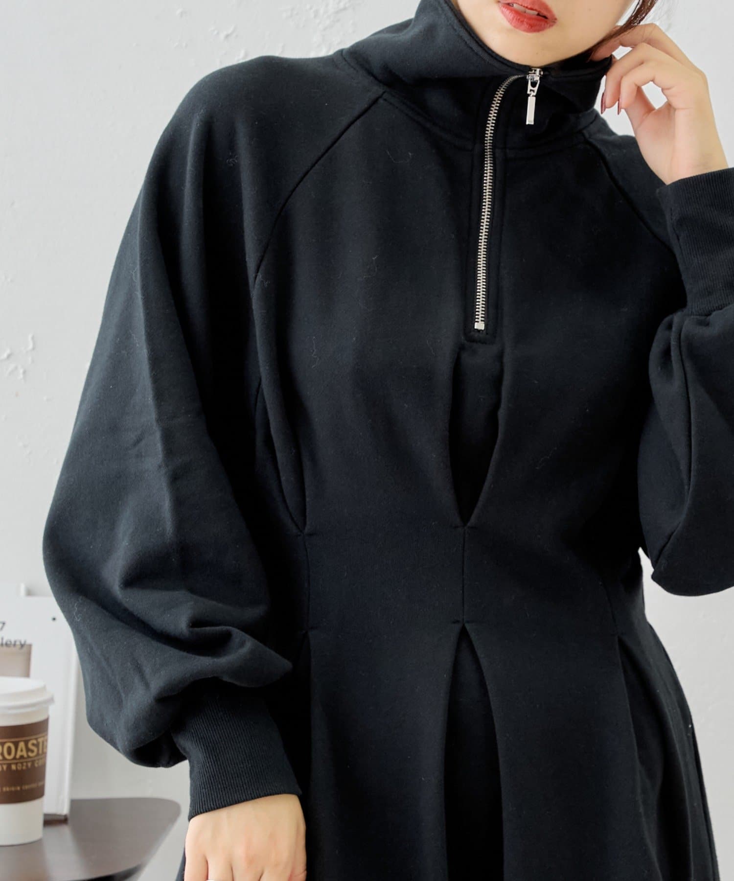 【Chico】ハーフジップフレアスウェットミニワンピース