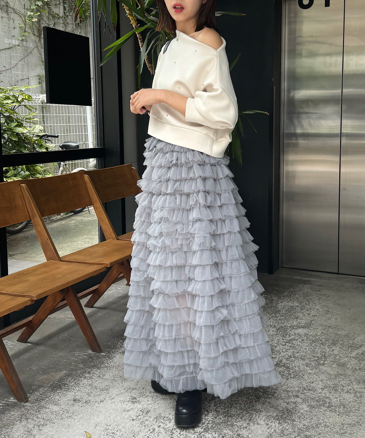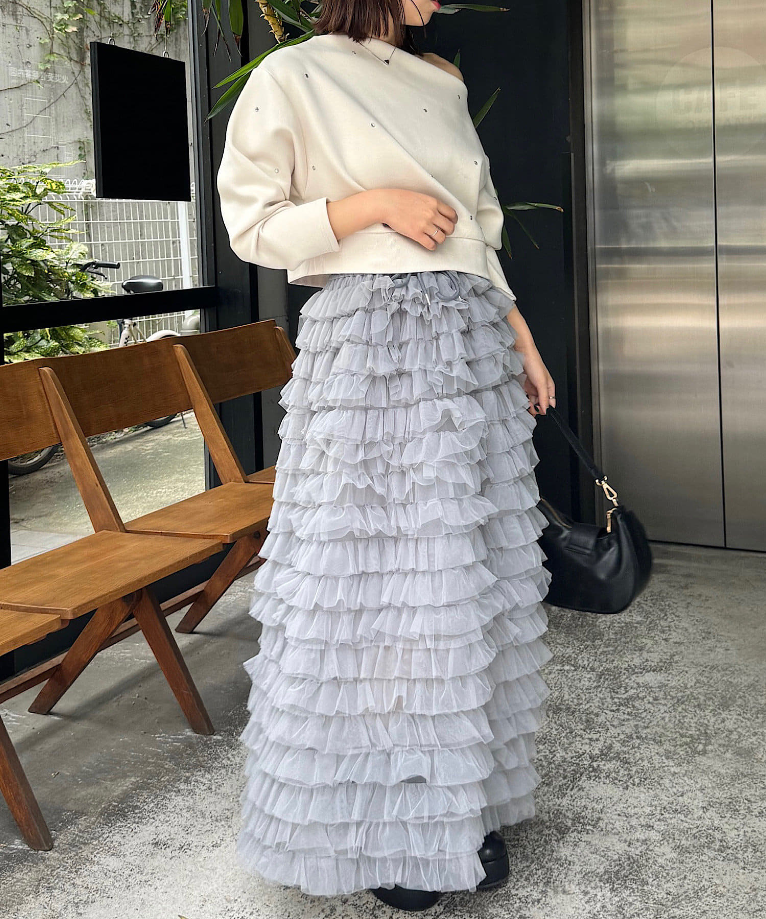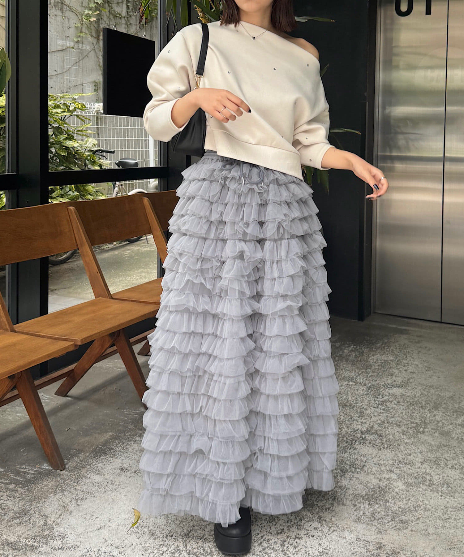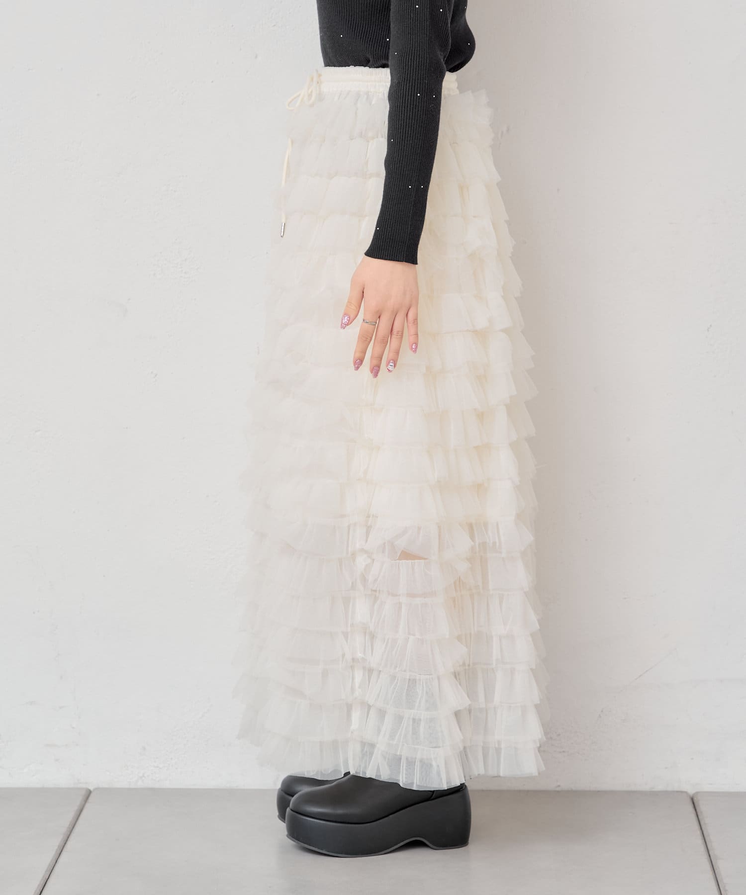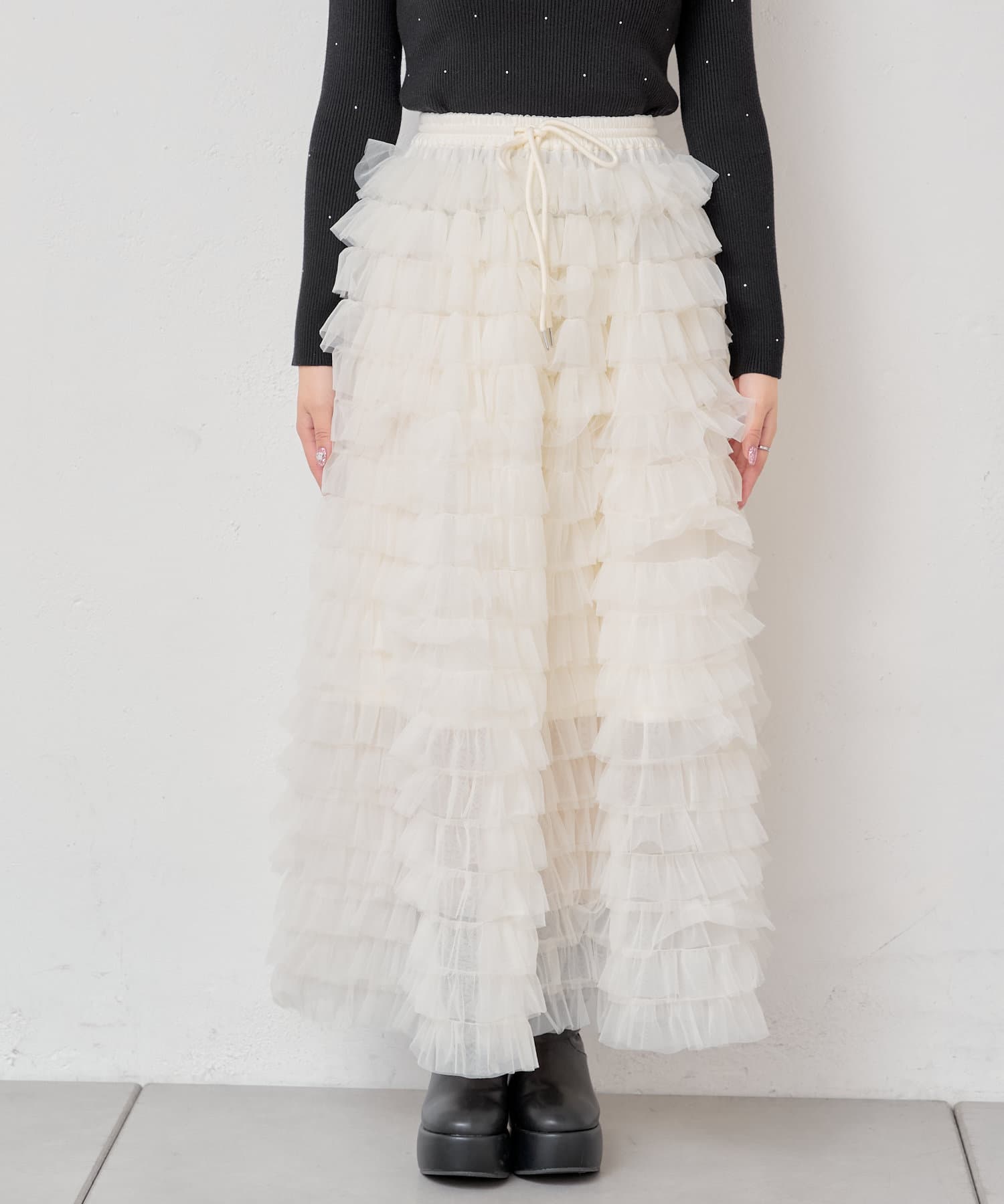 ボリュームのあるチュールフリルが可愛いロングスカート登場♡