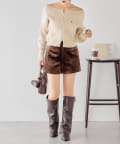・薄手のニットをインしても、ルーズなニットで合わせてショートパンツの裾のみを見せてもキュートです。