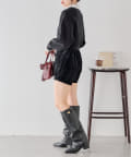 ・ロングブーツを合わせるとよりスタイルが綺麗に見えるスタイリングに。