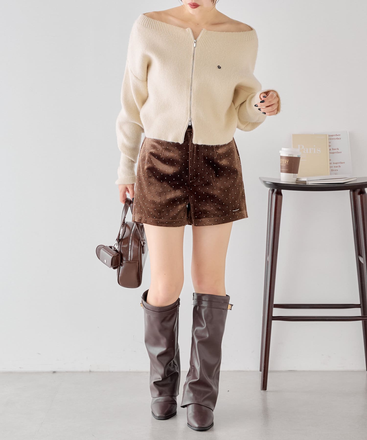 冬のコーデにぴったりなショートパンツで、ストーンもキラキラしていて可愛いです♡