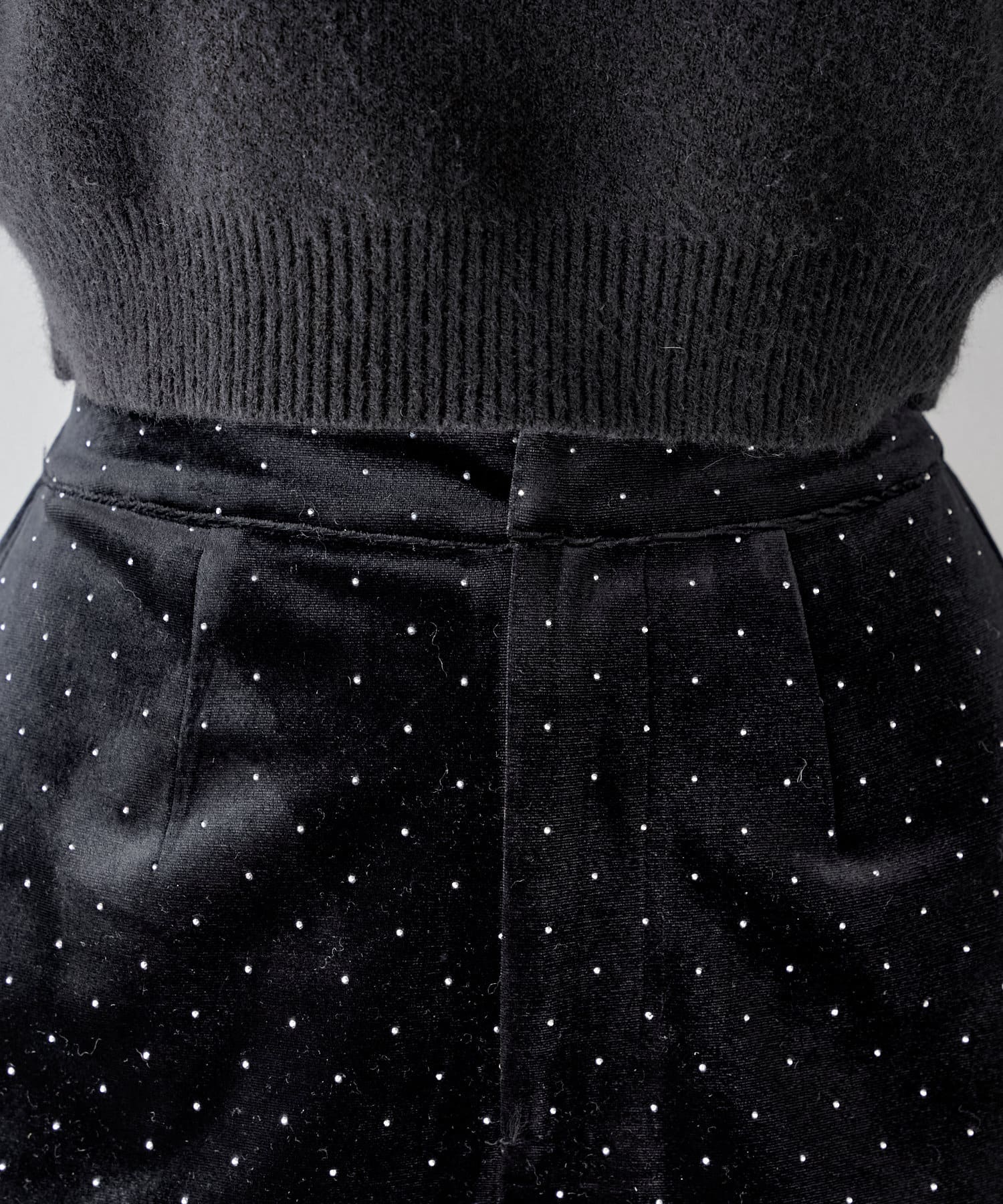 店舗で一目惚れして試着、購入しました!フリーサイズですが大きすぎないので低身長でも大丈夫です◎シンプルなトップスを合わせても完成するし、ストーンのキラキラもベロアの素材も本当にかわいいです😭
