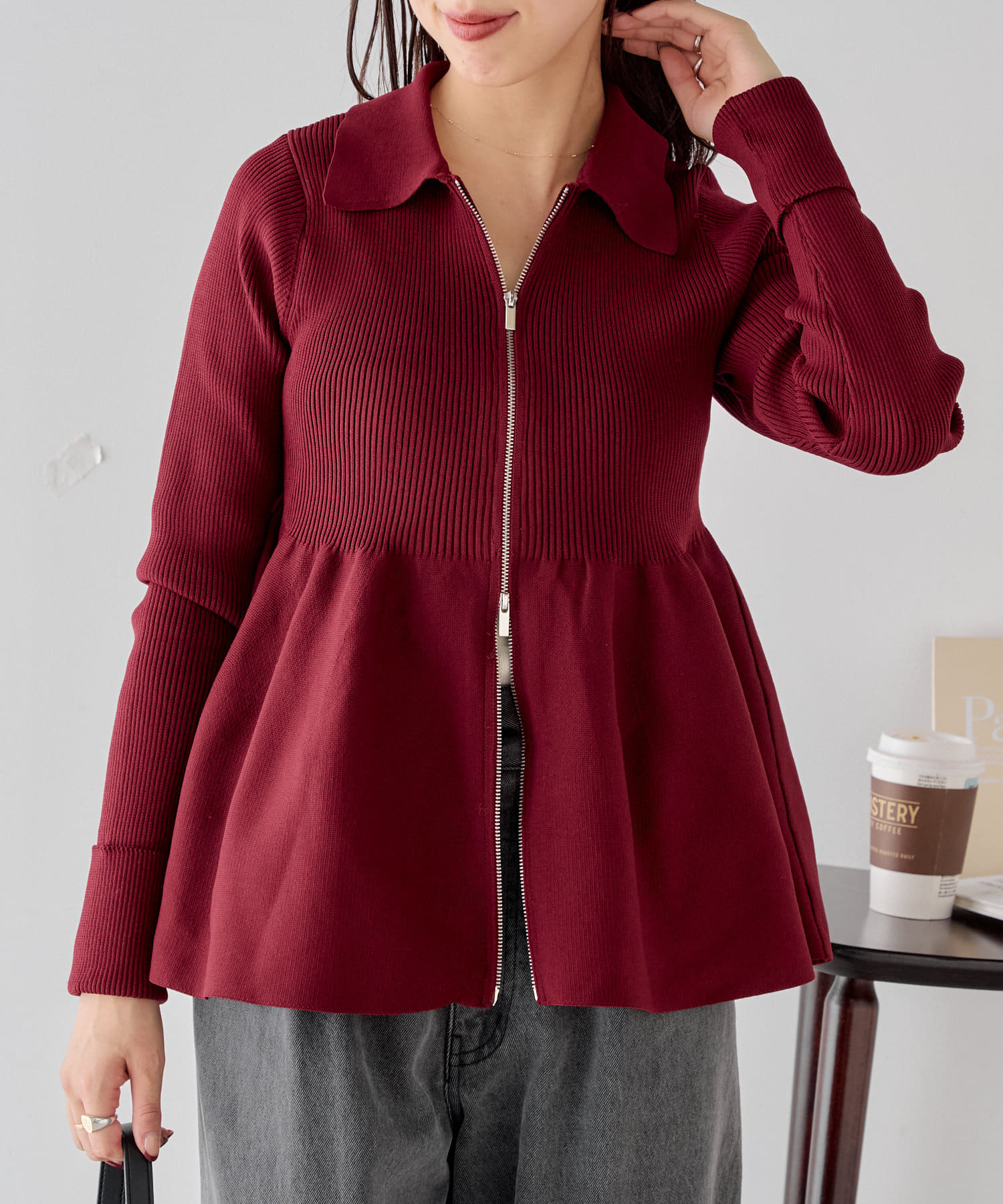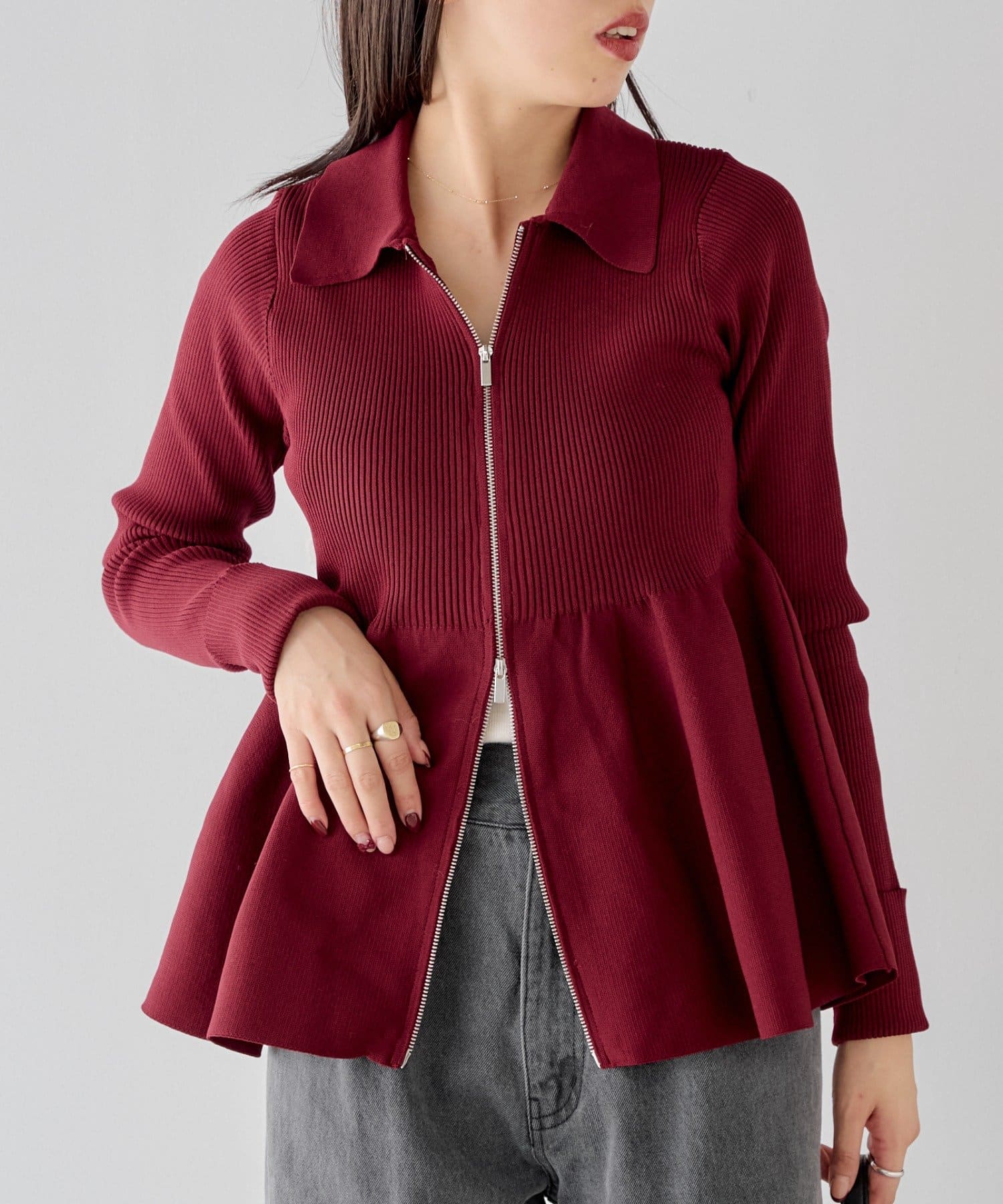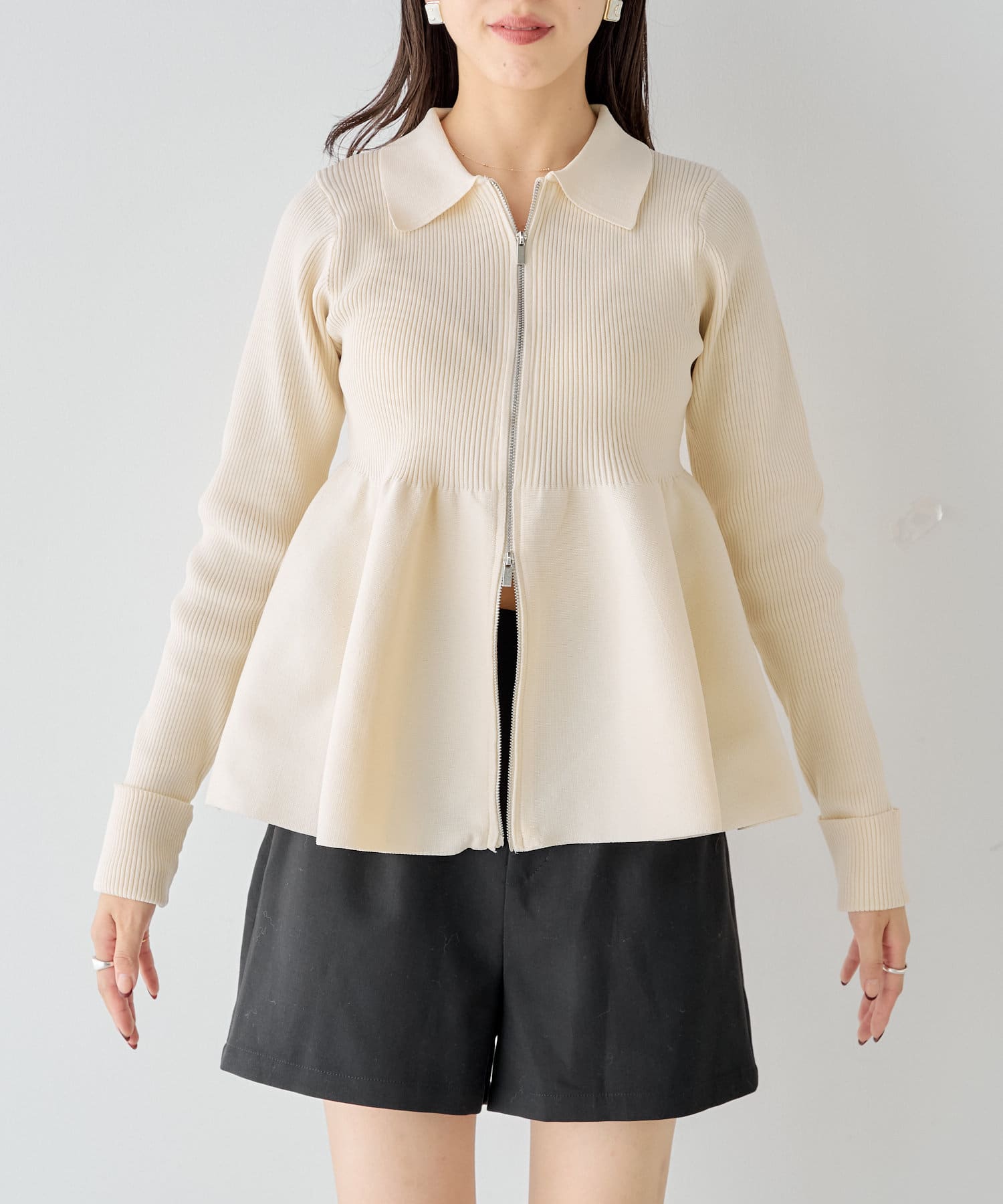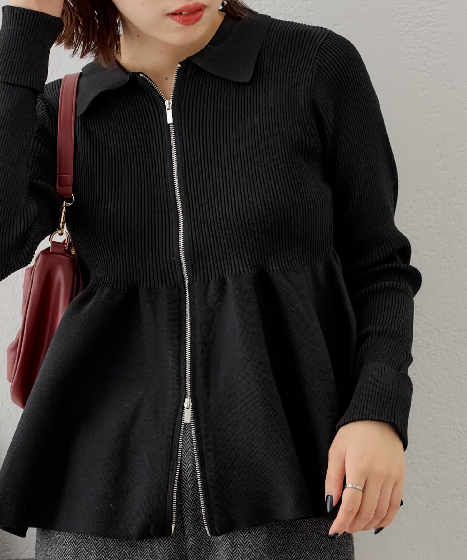 【Chico】ペプラムジップニット
