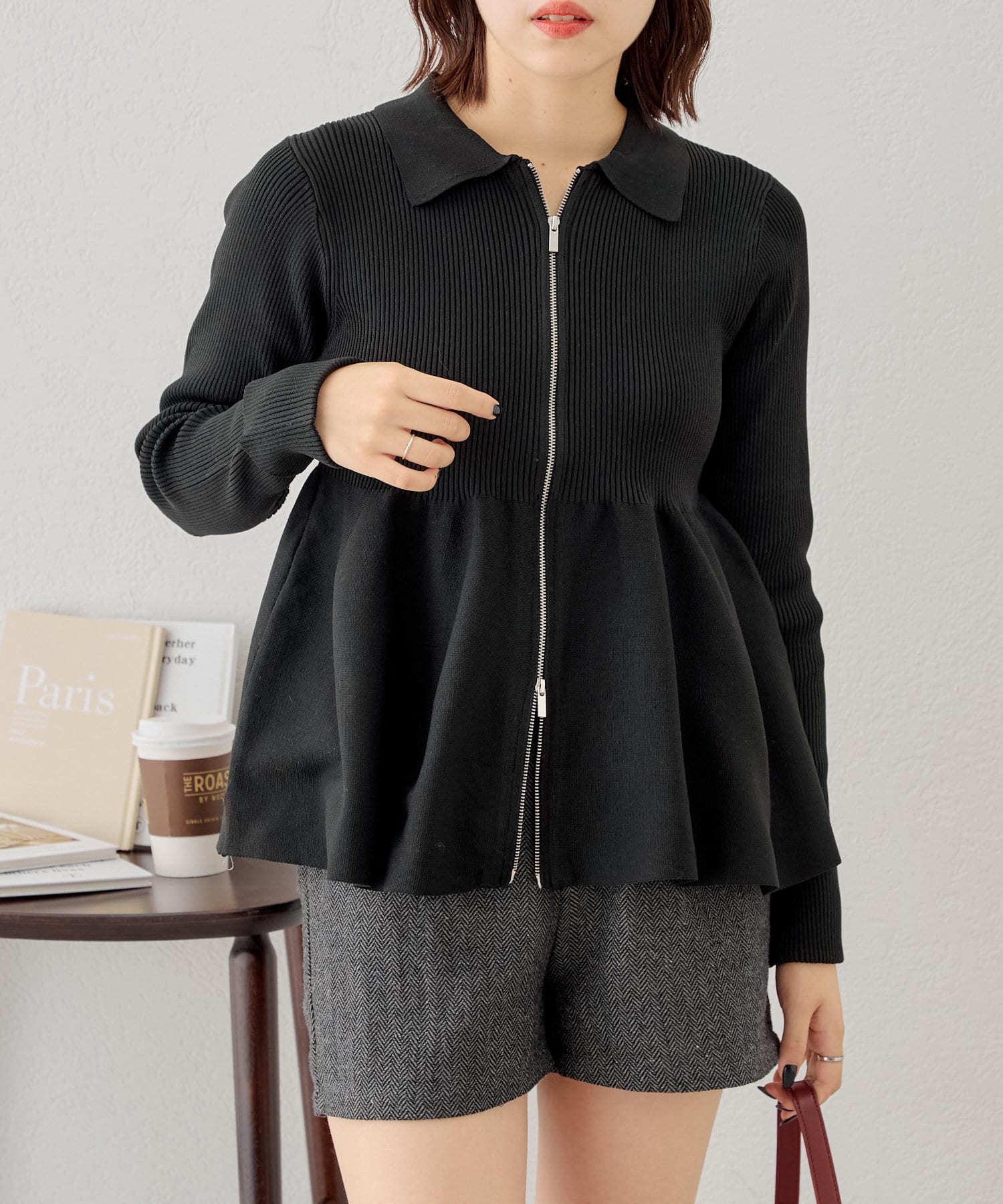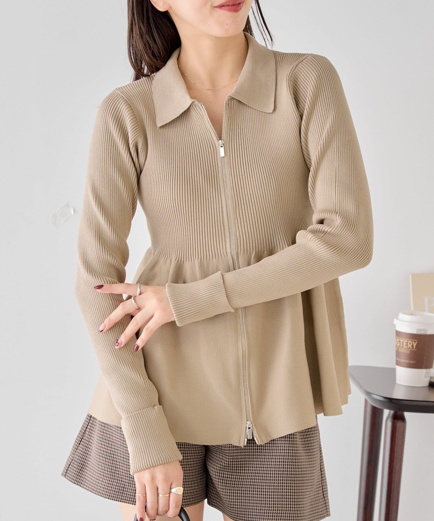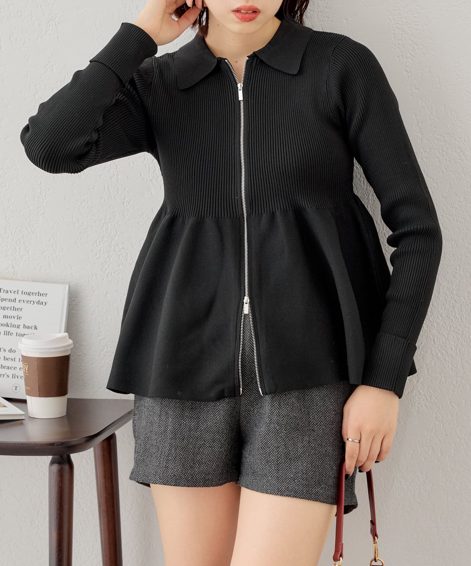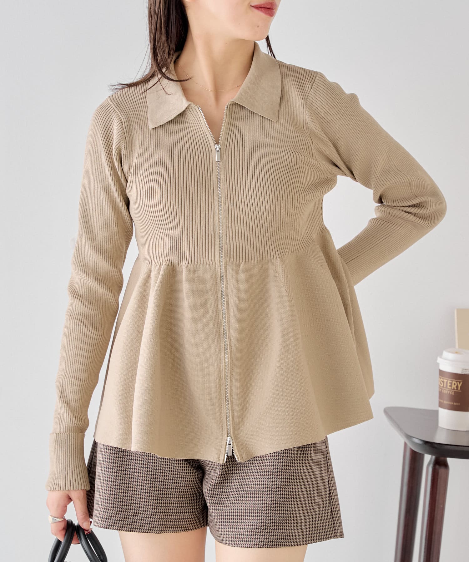【Chico】ペプラムジップニット