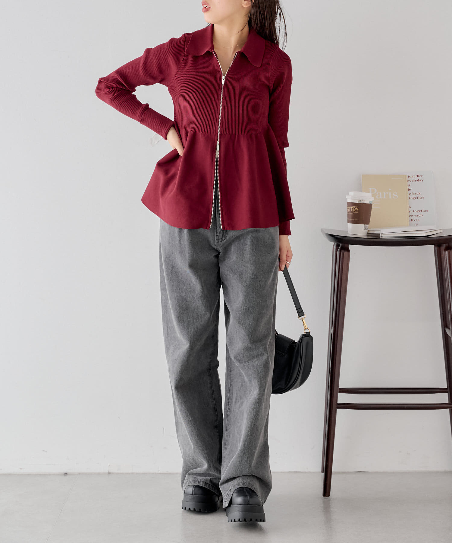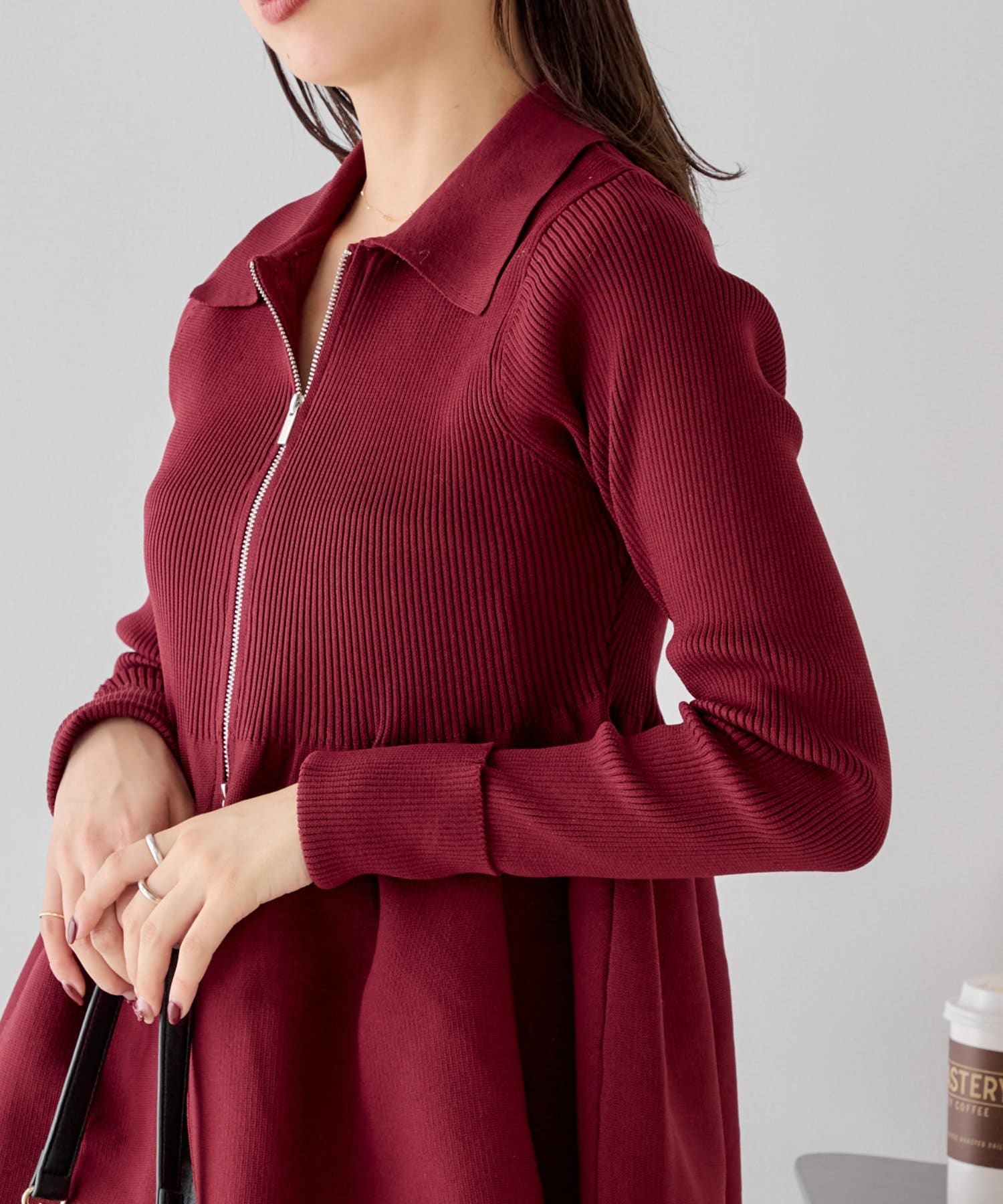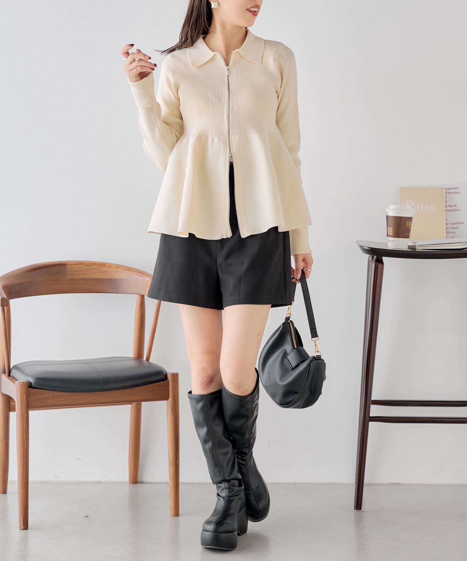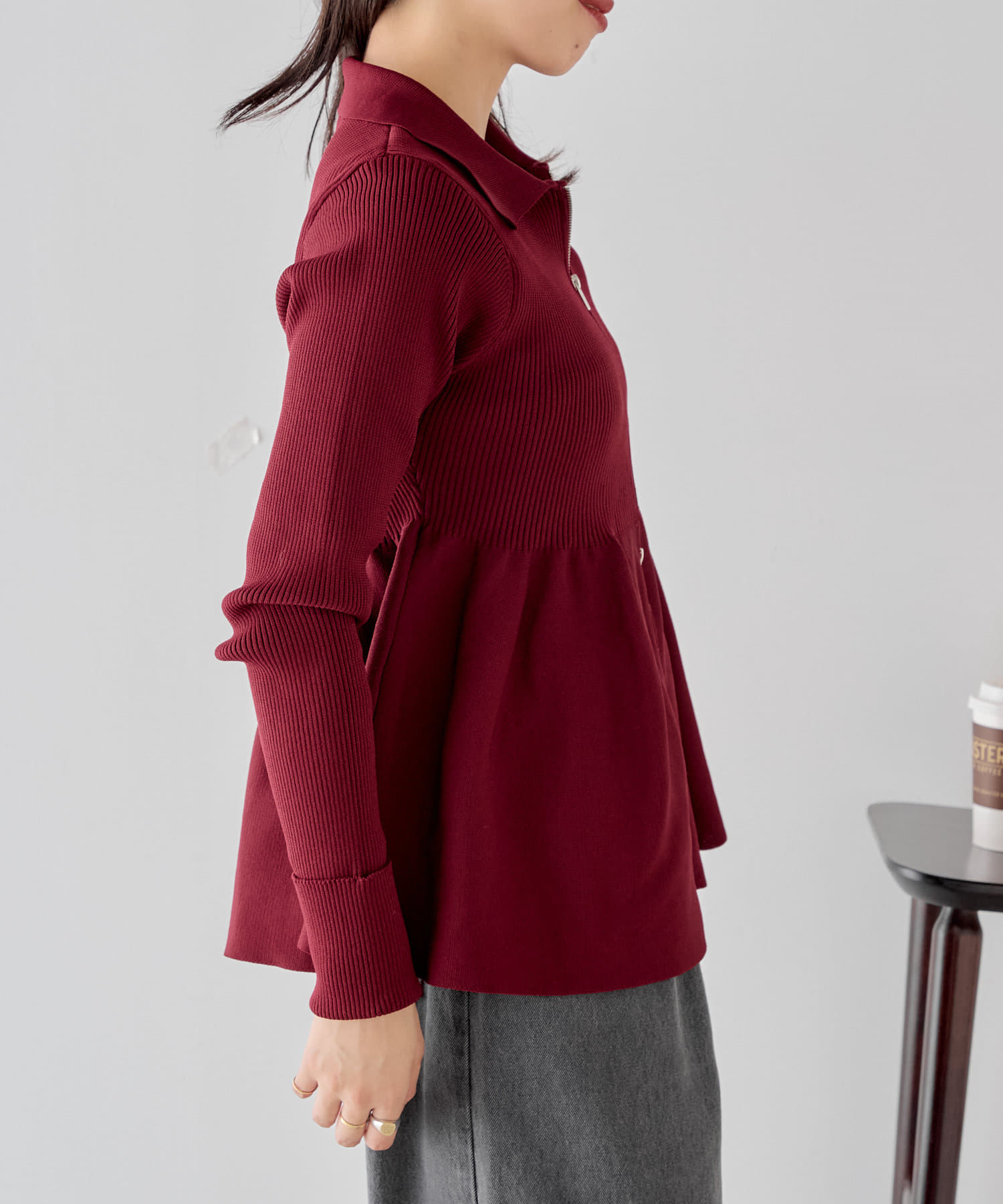 【Chico】ペプラムジップニット
