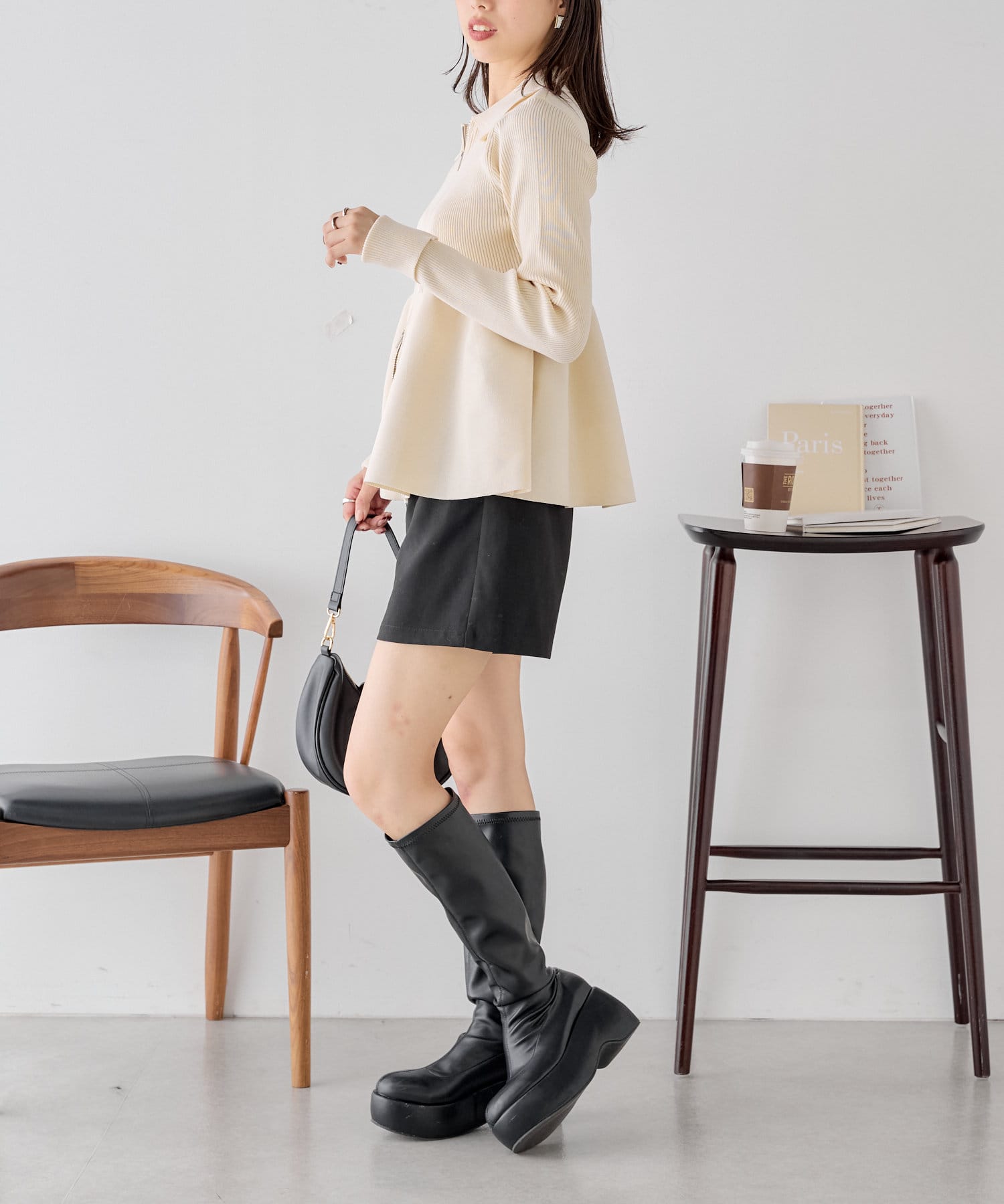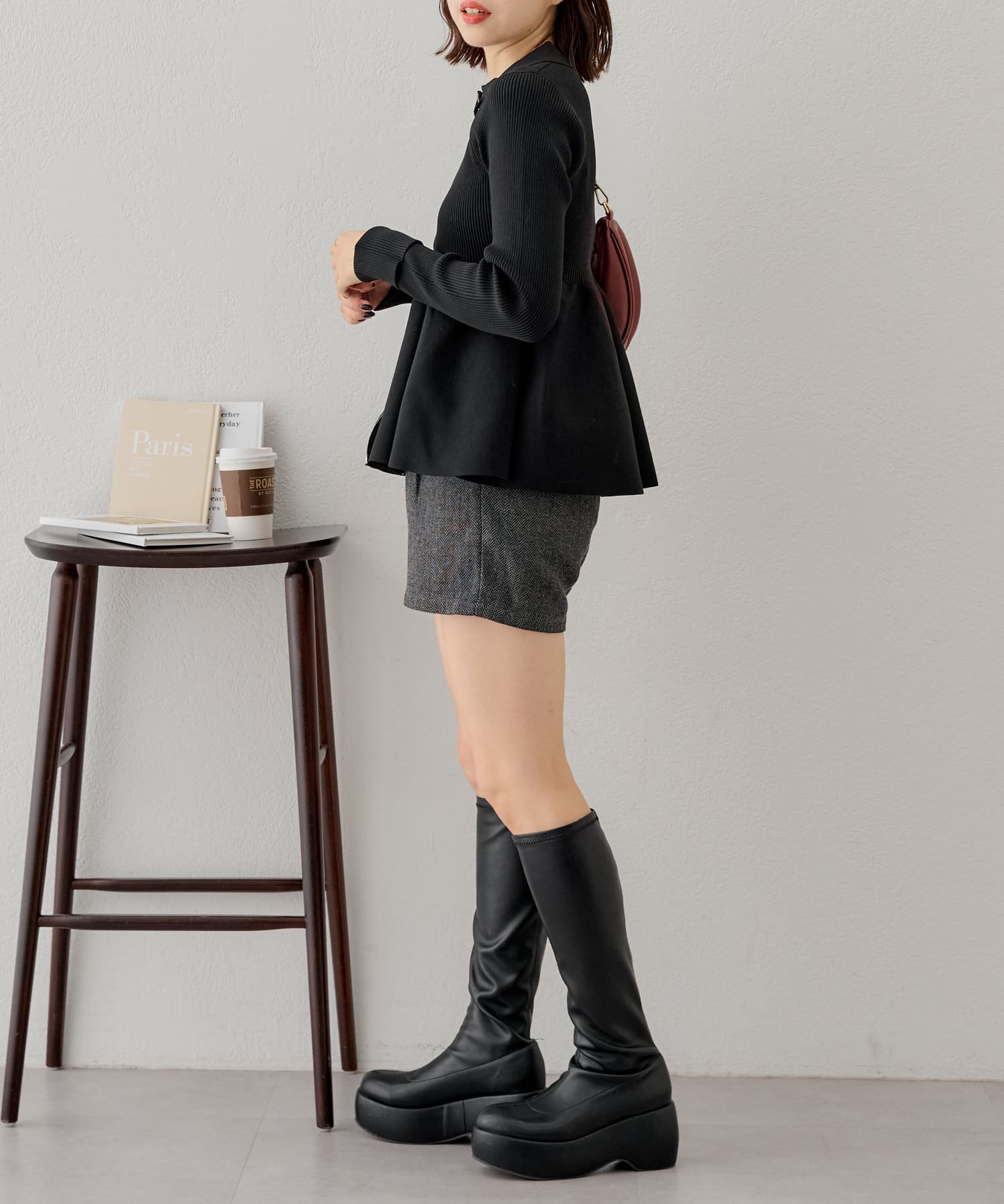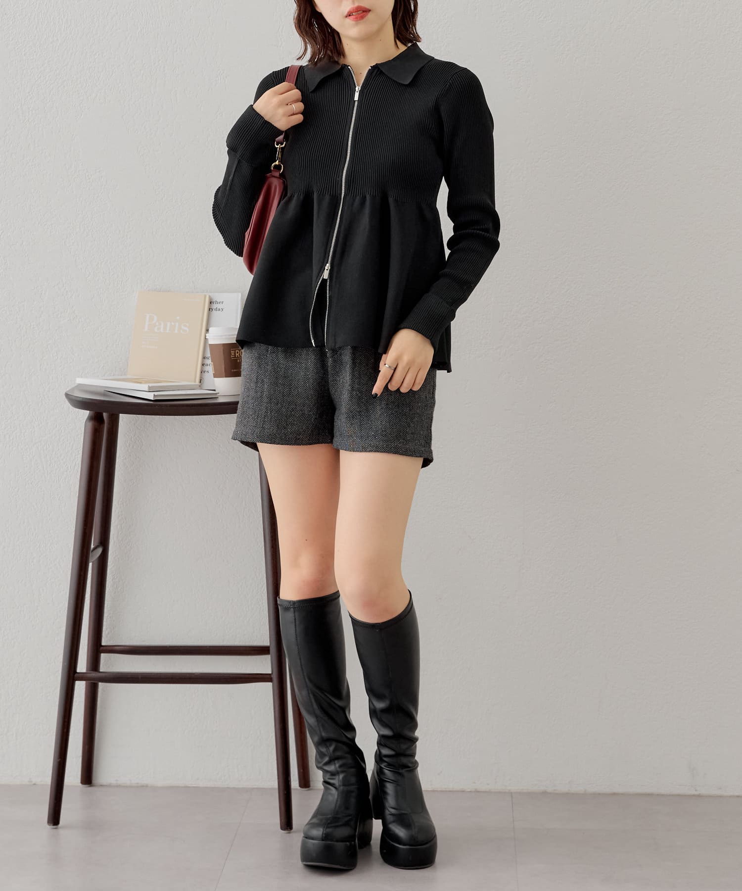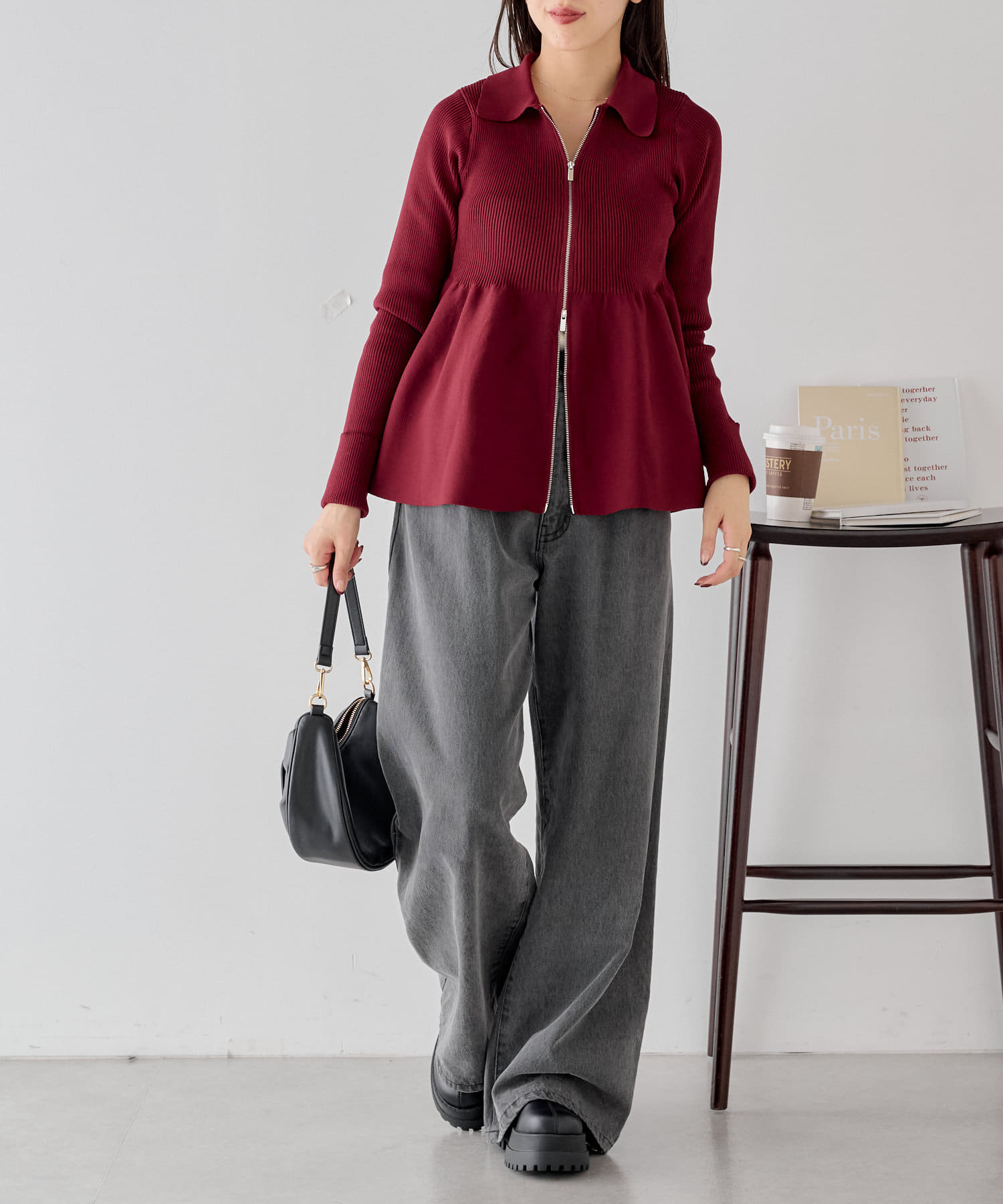 【Chico】ペプラムジップニット